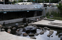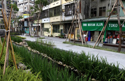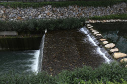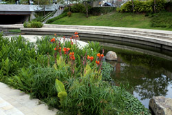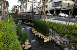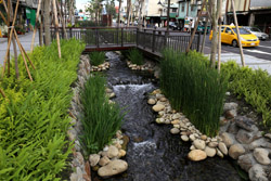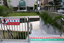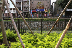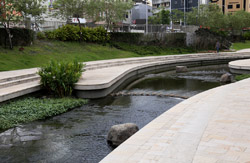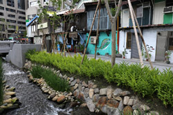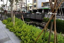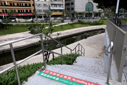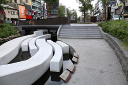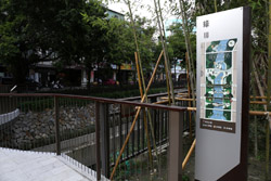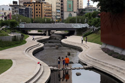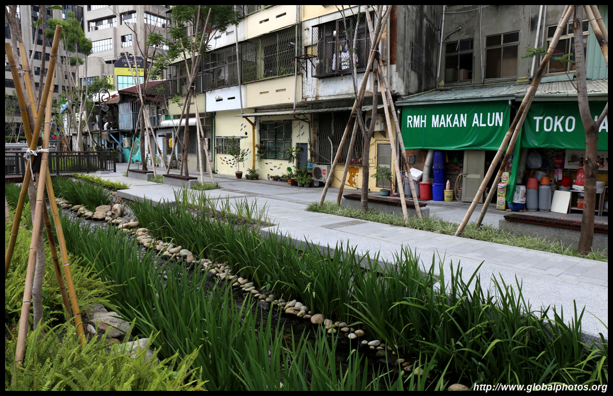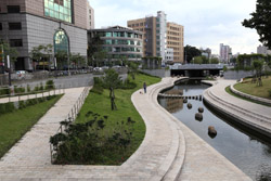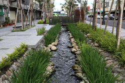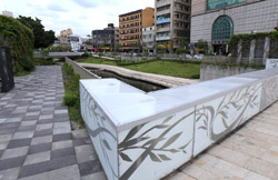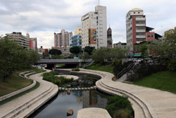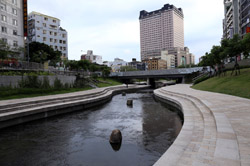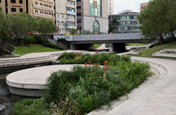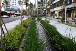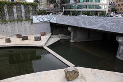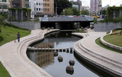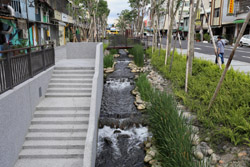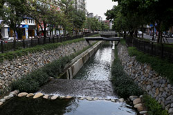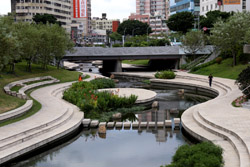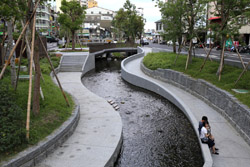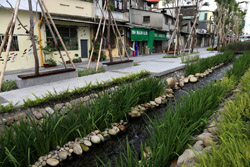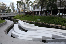 There is also another river revitalization project nearby. Liuchuan used to be badly polluted when industrialization came in the 1980s and the problem was forgotten as residents moved out of the central city in the 1990s as urban development moved westwards. In 2014, the government decided to take action by water treatment upstream and bringing in fresh water. A 610m stretch now includes pedestrian paths shown here.