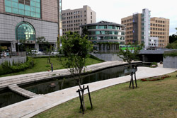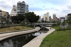 Just a short walk from the main railway station, the Shin Sei Green Waterway is now a nice public space worth a stroll with plenty of vegetation and water features along the way. Find your way to the Miyahara first, a red-brick building used by a Japanese opthalmology doctor as his clinic during the colonial era. After the war, it was used by the Taichung Health Bureau and subsequently by a pastry company.