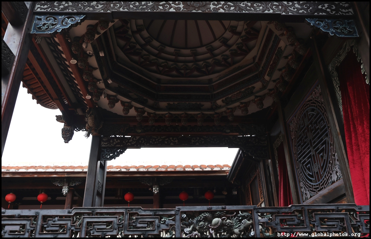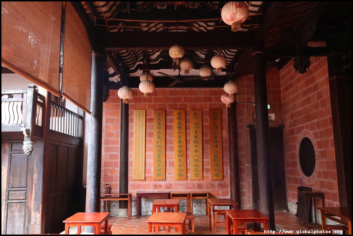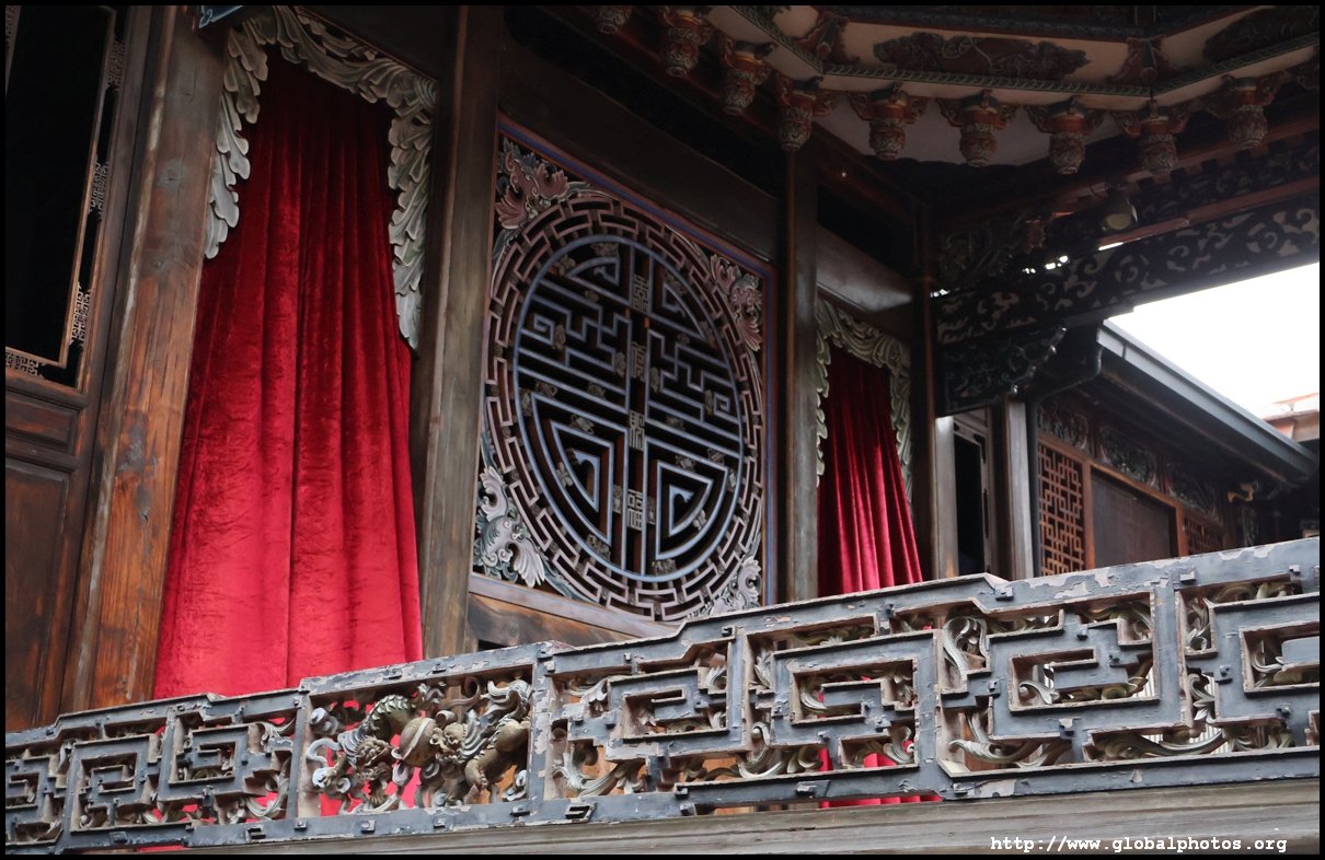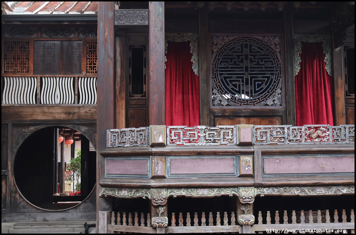 The Lin family came to Taiwan in 1746 and became one of the 5 major families on the island. One descendant helped the Qing military and received a posthumous title by imperial decree. This residence is the only remaining Qing era official residence in Taiwan, with construction starting in 1858 with further additions completed by 1895. Today, it comprises the upper and lower houses as well as the Lai Garden.In 1999, a magnitude 7.3 earthquake caused significant damage to the complex, with repairs continuing until 2014. The residence is now open to the public by tour only. The final stop on the tour is the family's own private theatre. The Grand Flower Hall has a huge stage with peonies carved, a symbol of wealth. Construction finished in 1894 and was used for military meetings, public banquets, and for the family to entertain guests. What we see here is not the original, which was severely damaged during the 1999 earthquake, but lovingly reconstructed afterwards.