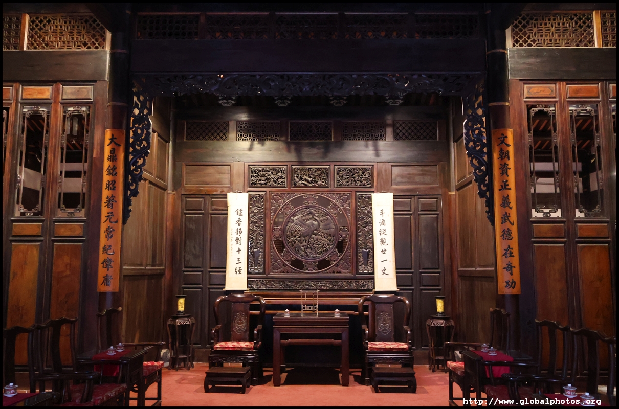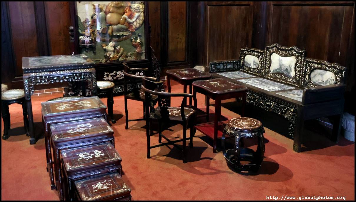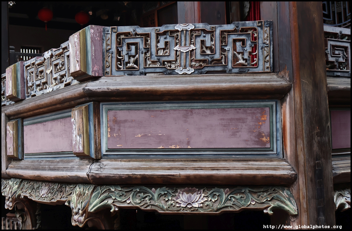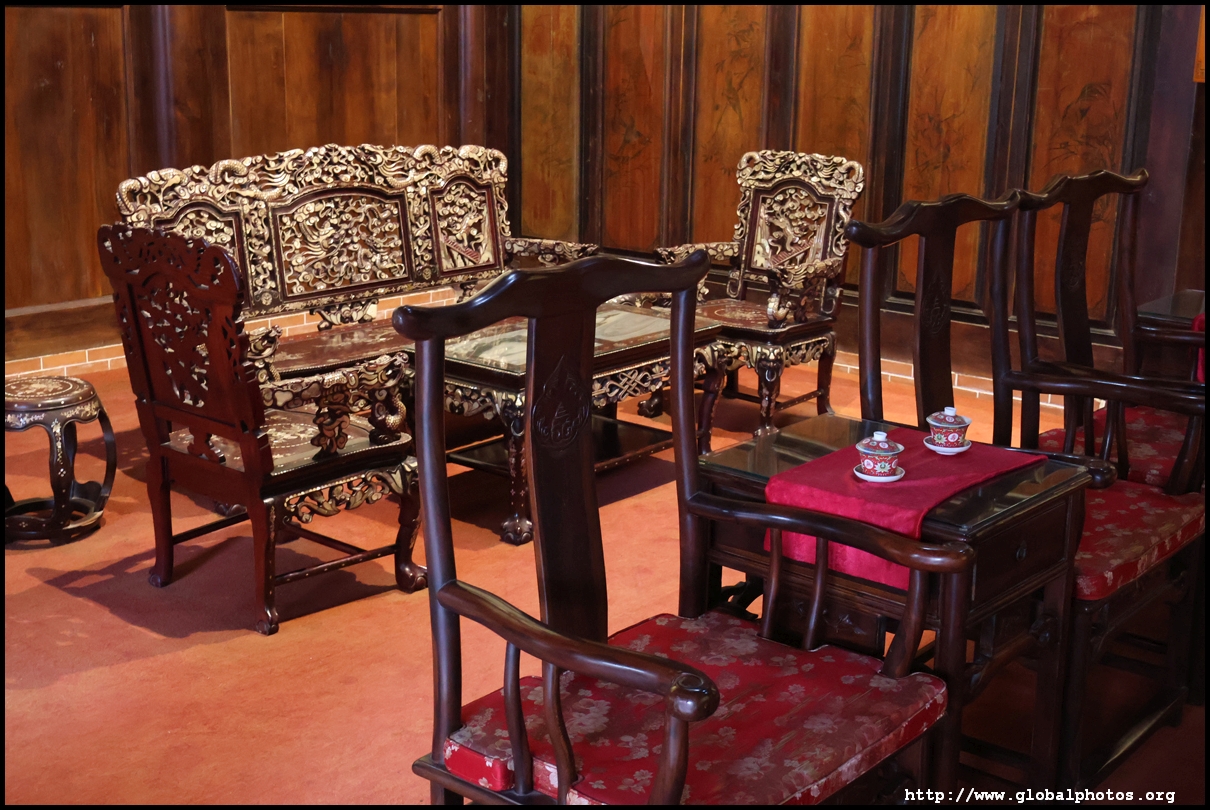 The Lin family came to Taiwan in 1746 and became one of the 5 major families on the island. One descendant helped the Qing military and received a posthumous title by imperial decree. This residence is the only remaining Qing era official residence in Taiwan, with construction starting in 1858 with further additions completed by 1895. Today, it comprises the upper and lower houses as well as the Lai Garden.In 1999, a magnitude 7.3 earthquake caused significant damage to the complex, with repairs continuing until 2014. The residence is now open to the public by tour only. The final stop on the tour is the family's own private theatre. The Grand Flower Hall has a huge stage with peonies carved, a symbol of wealth. Construction finished in 1894 and was used for military meetings, public banquets, and for the family to entertain guests. What we see here is not the original, which was severely damaged during the 1999 earthquake, but lovingly reconstructed afterwards.