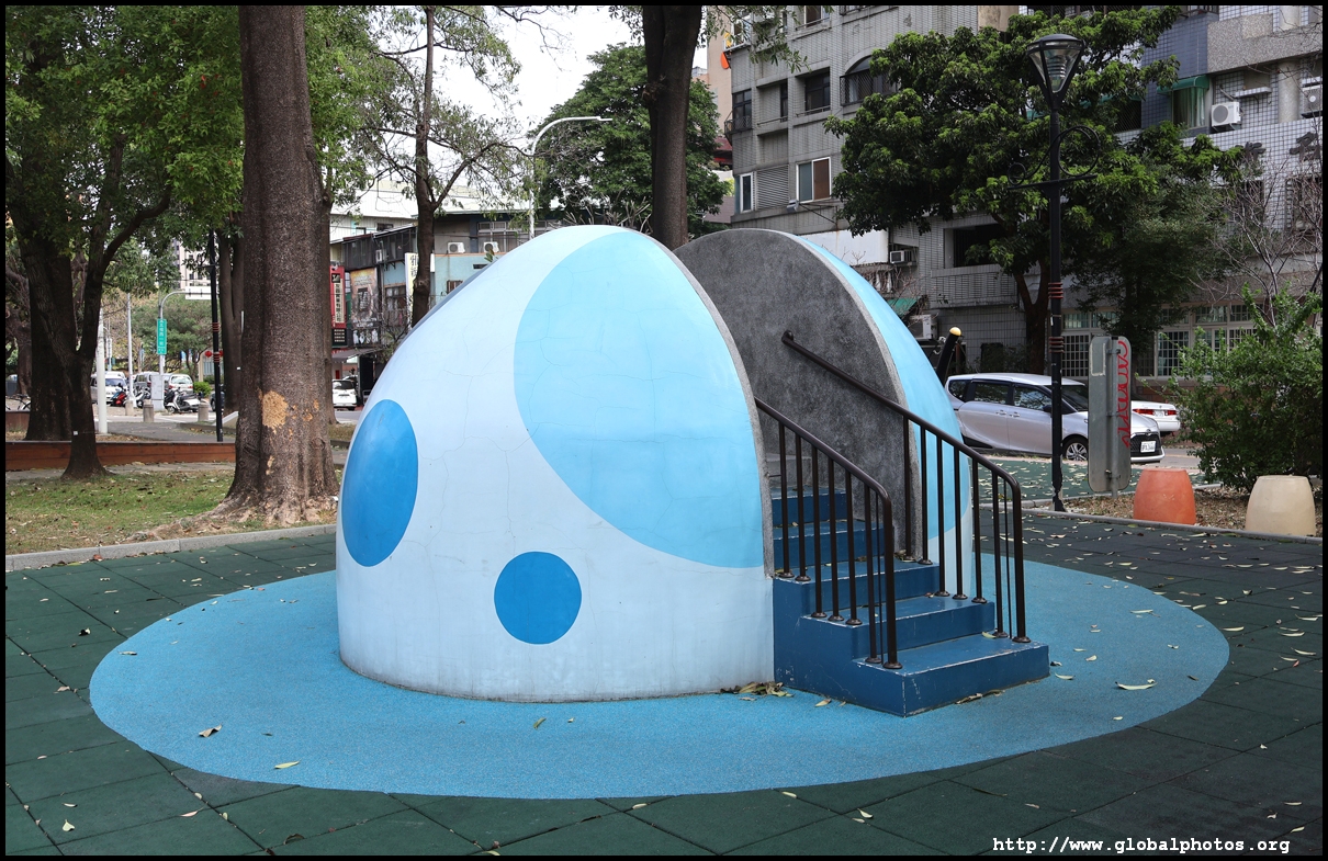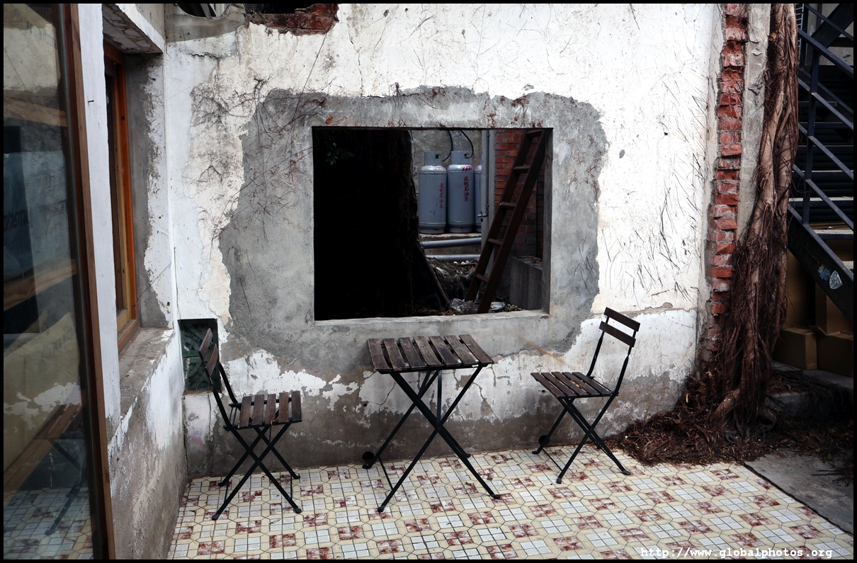 To the north of the Shen Ji New Village just off from Zhongxing Street is a seemingly repurposed old building that now houses shops and restaurants.