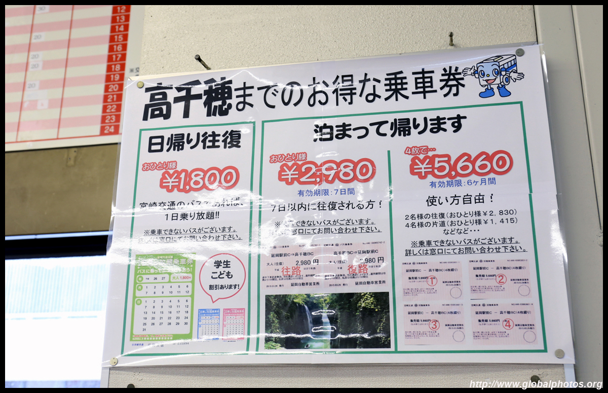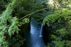 Takachiho is a long day trip from Miyazaki. Using the Southern Kyushu rail pass, it is a free ride on the Ltd Exp train to Nobeoka, an hour away.
