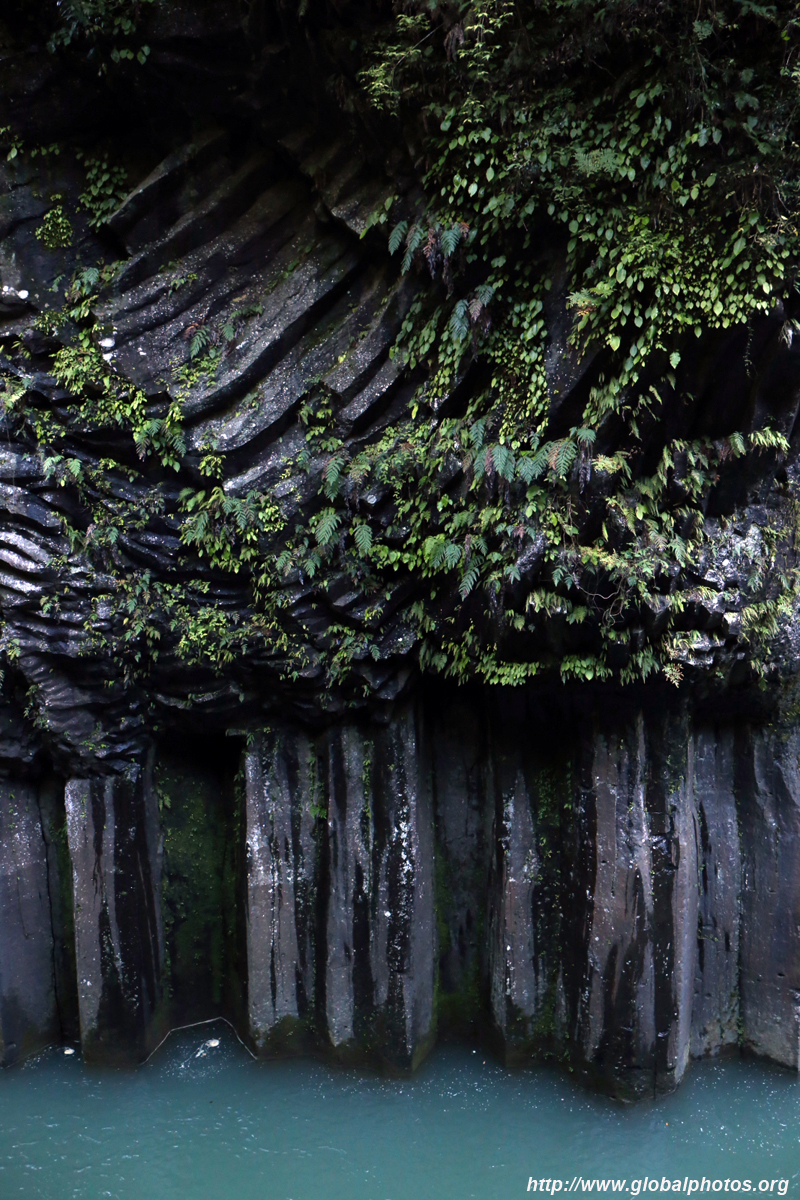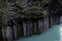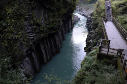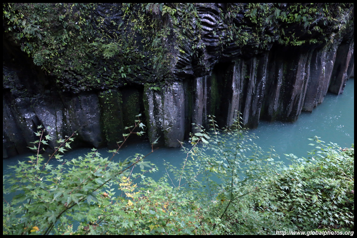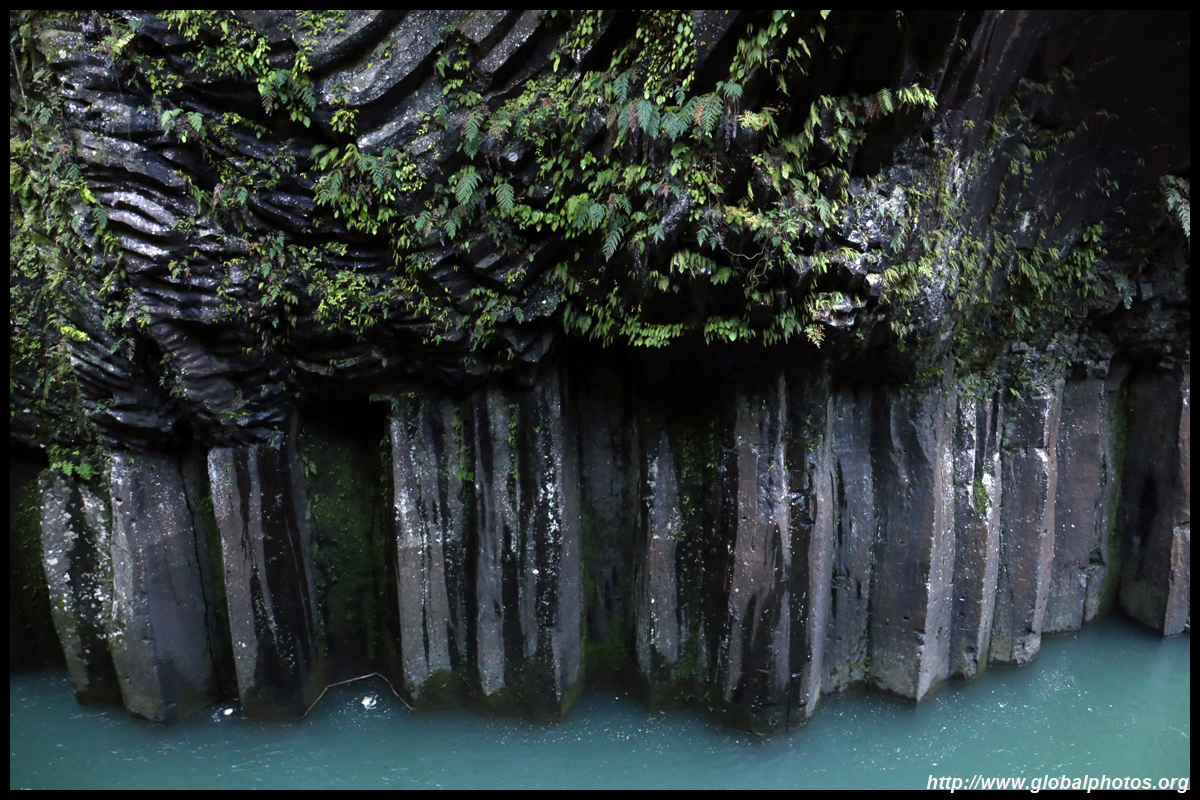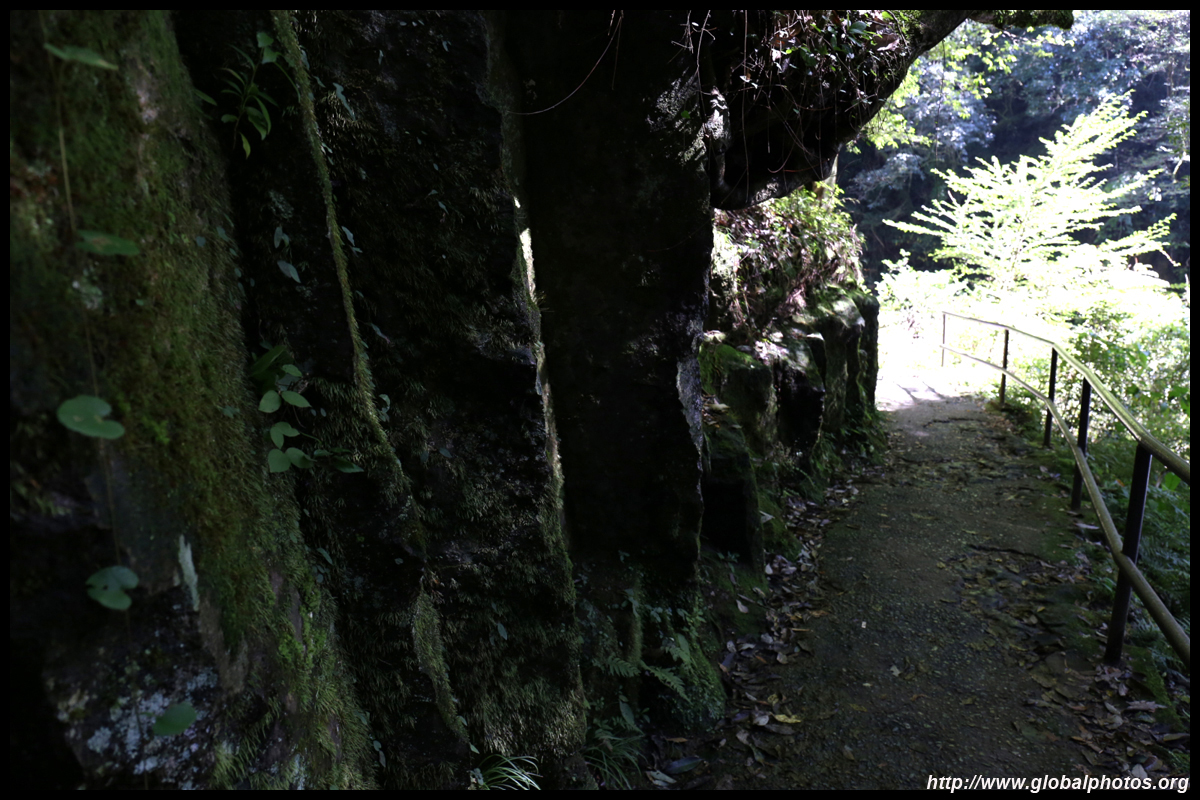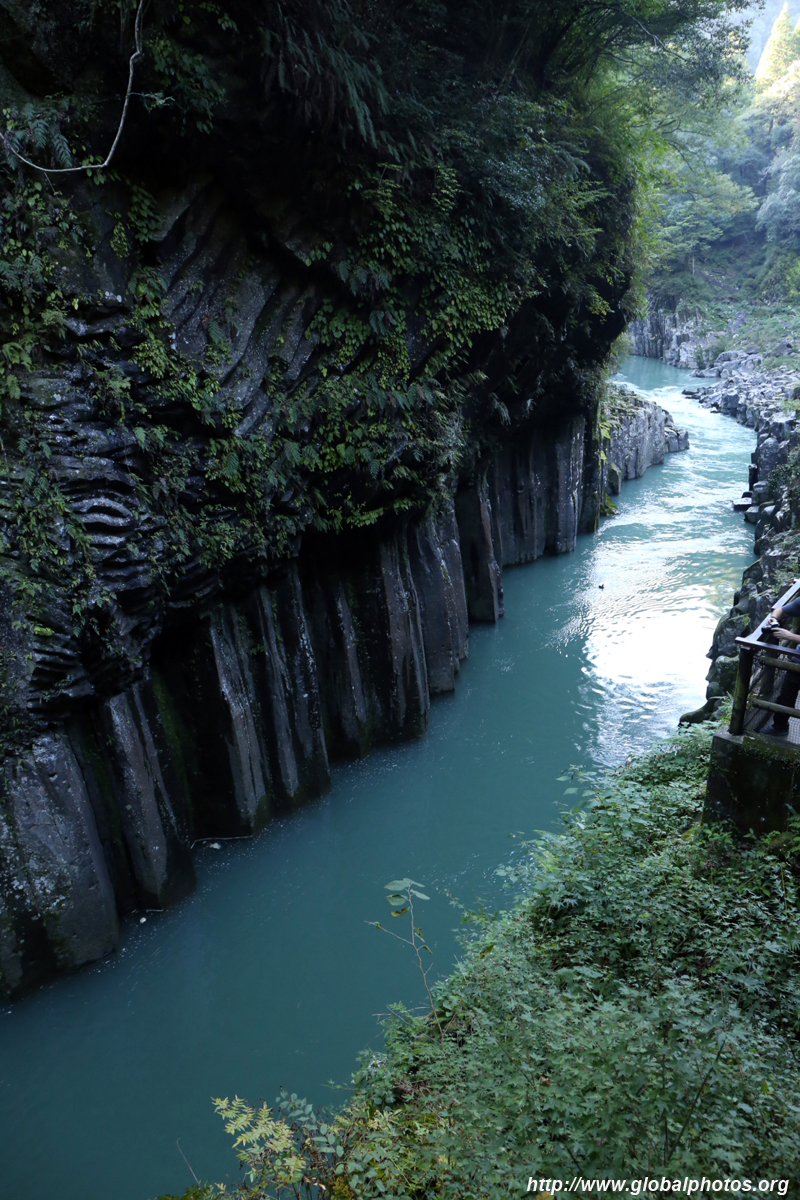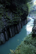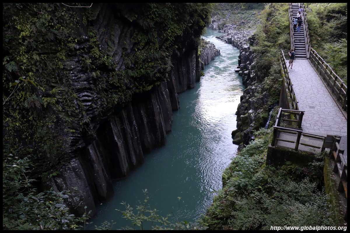 Takachiho Gorge was formed by rapid cooling of lava from Mt. Aso. A walkway is partially opened along the riverfront although there wasn't much water flow to appreciate the natural beauty fully.