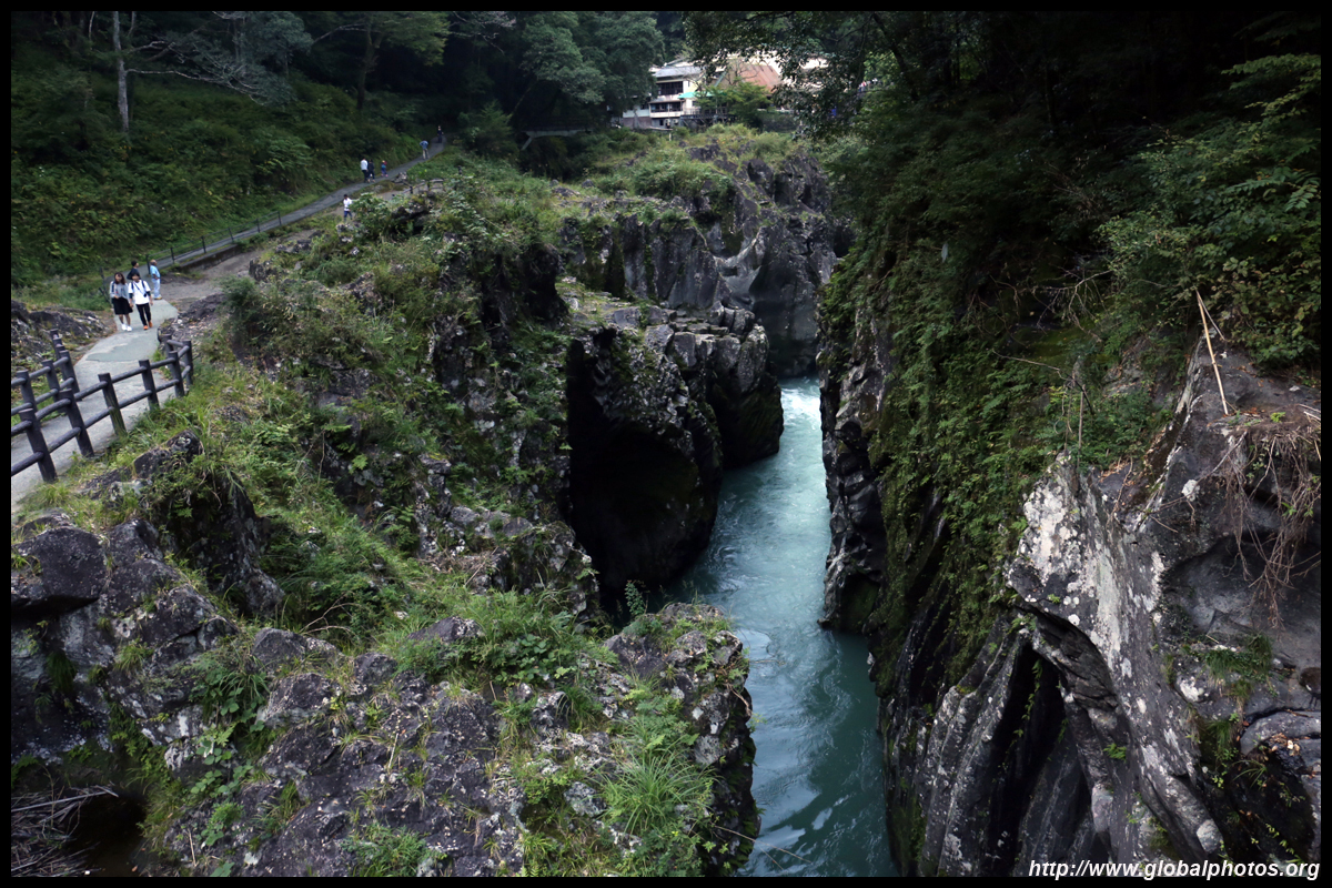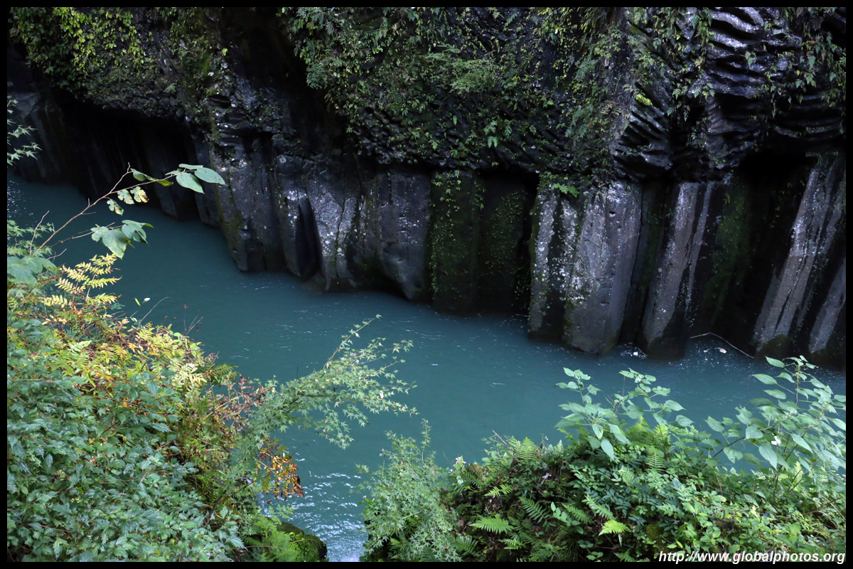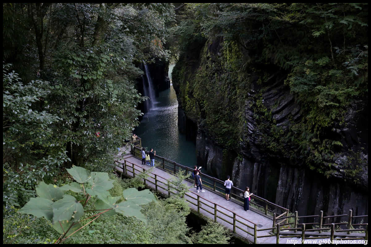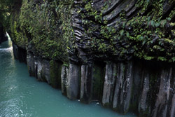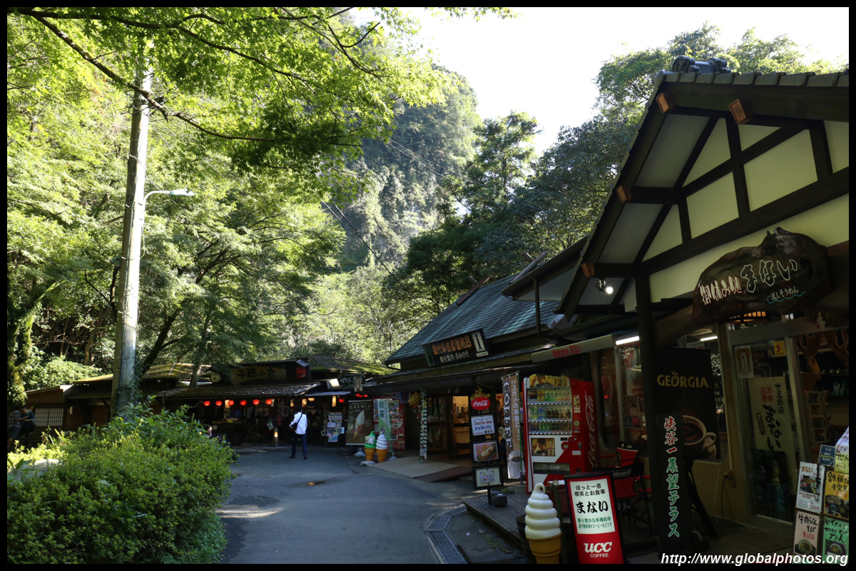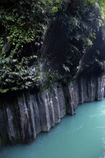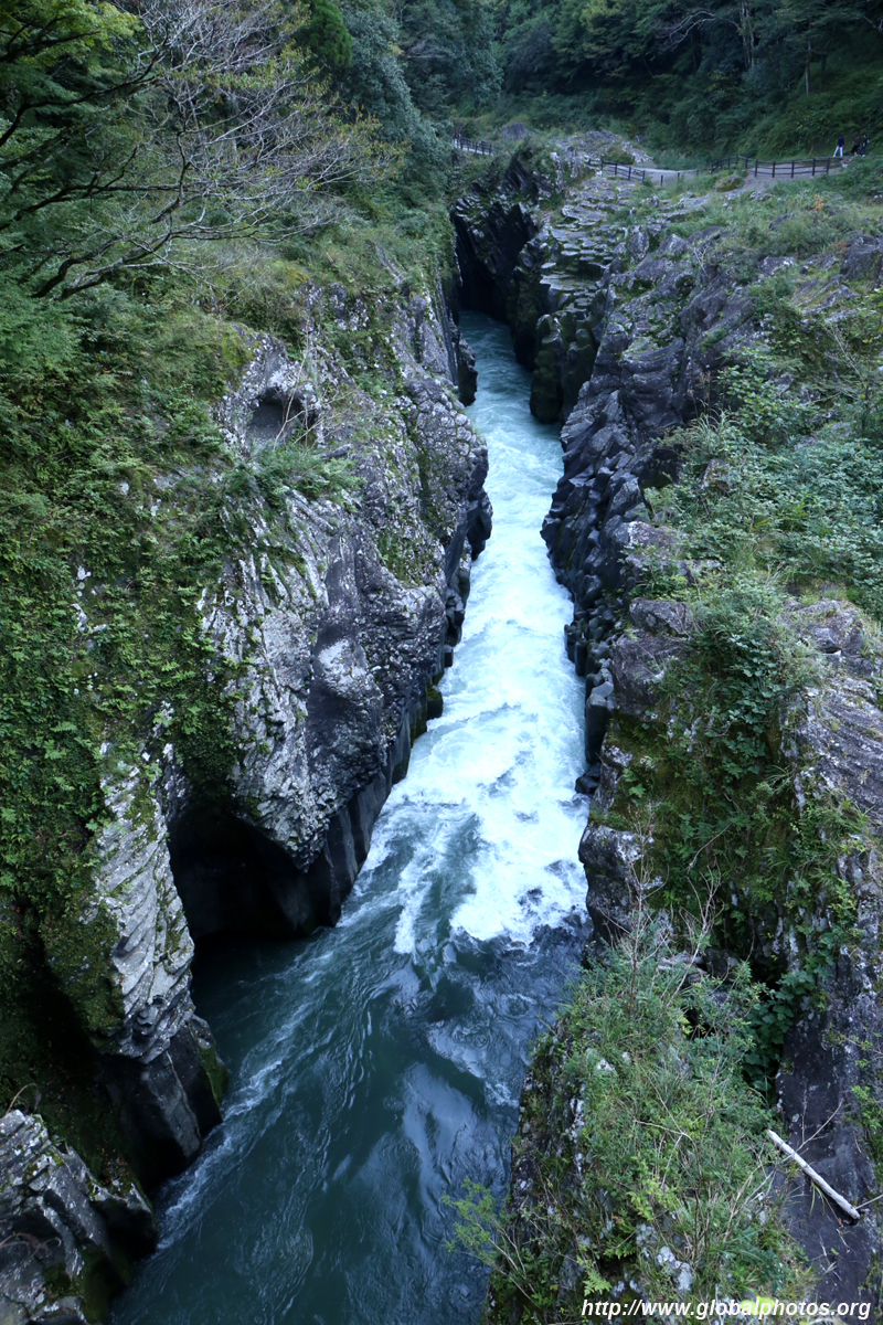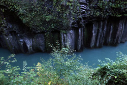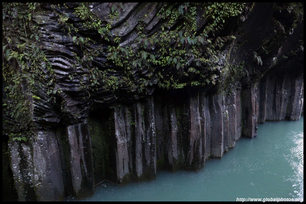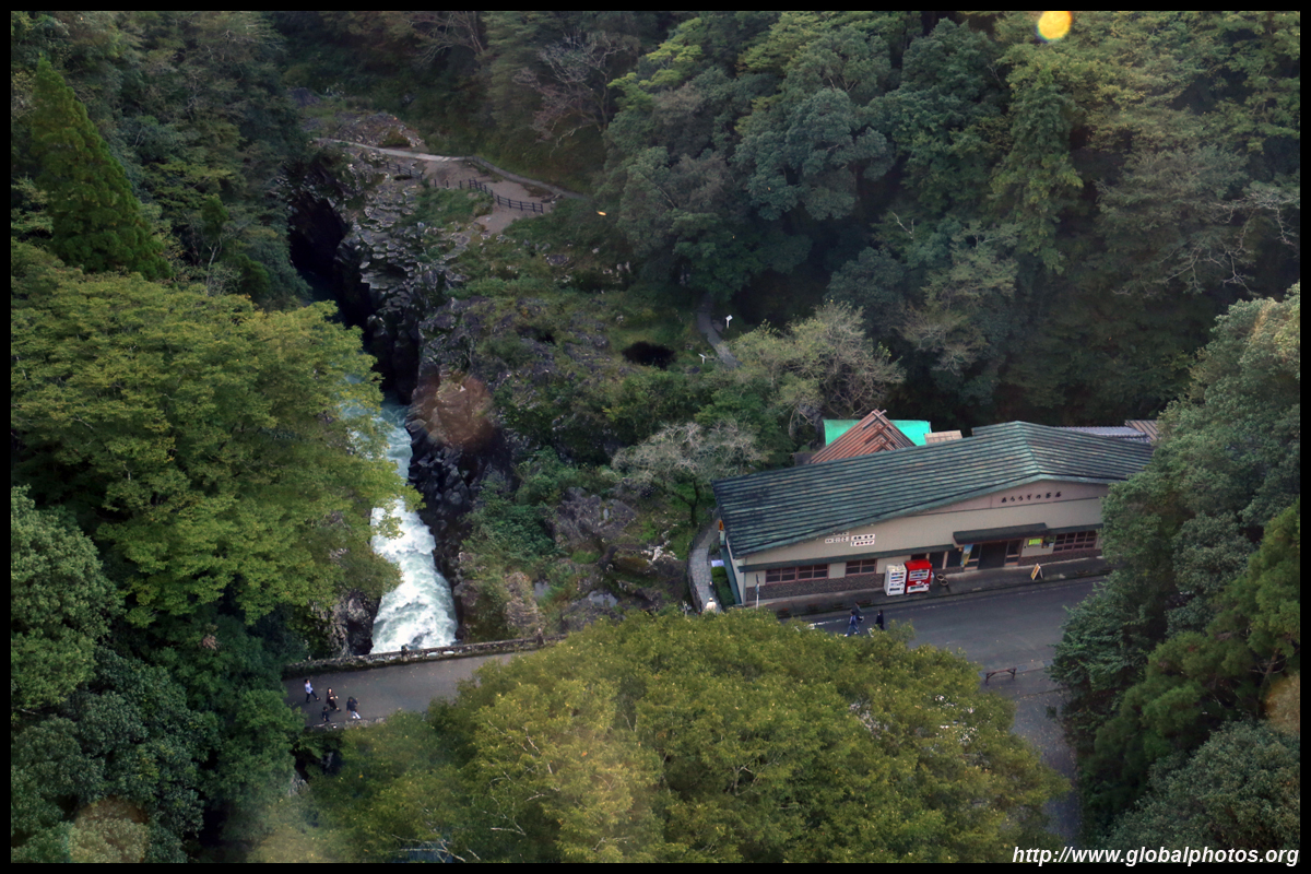 Takachiho Gorge was formed by rapid cooling of lava from Mt. Aso. A walkway is partially opened along the riverfront although there wasn't much water flow to appreciate the natural beauty fully.