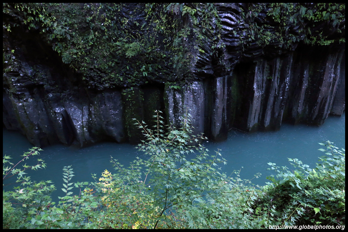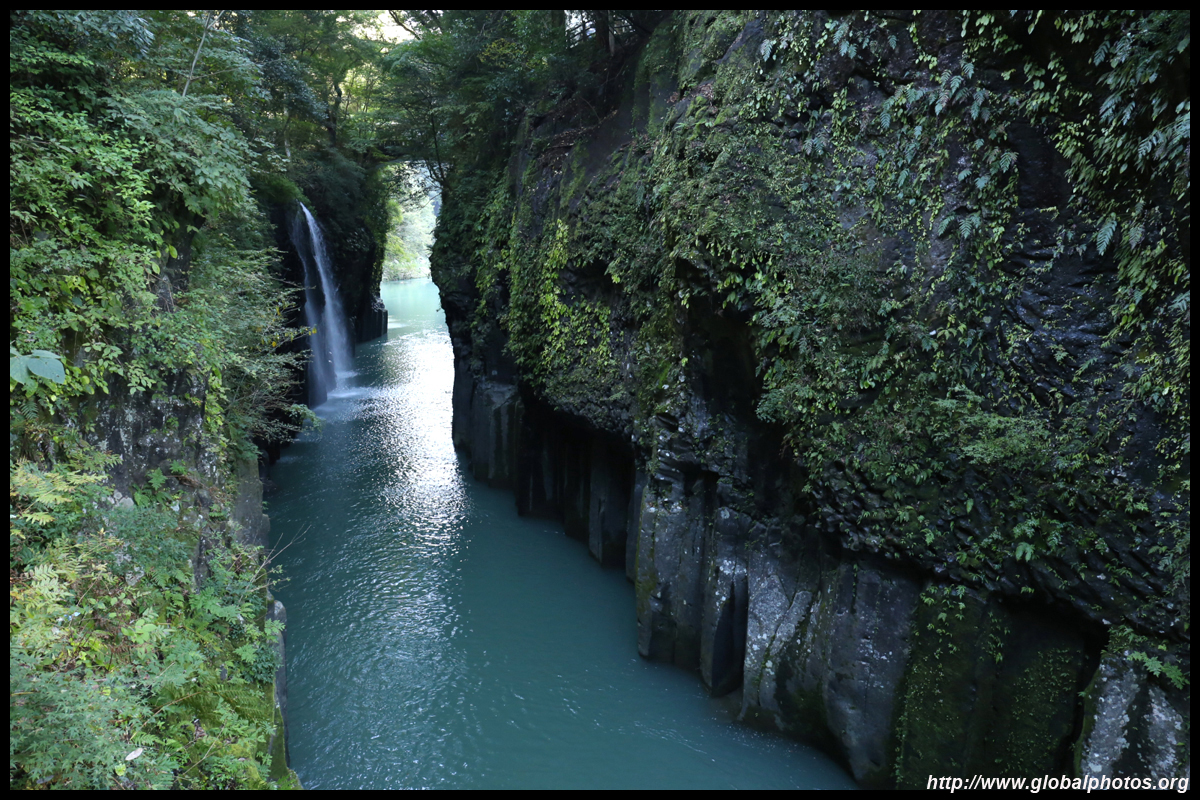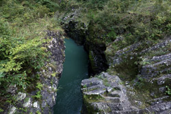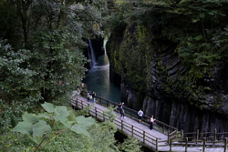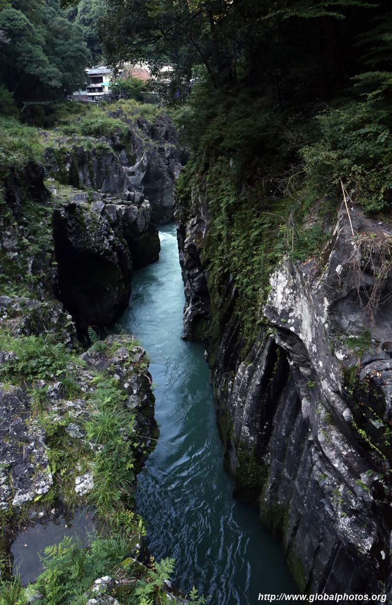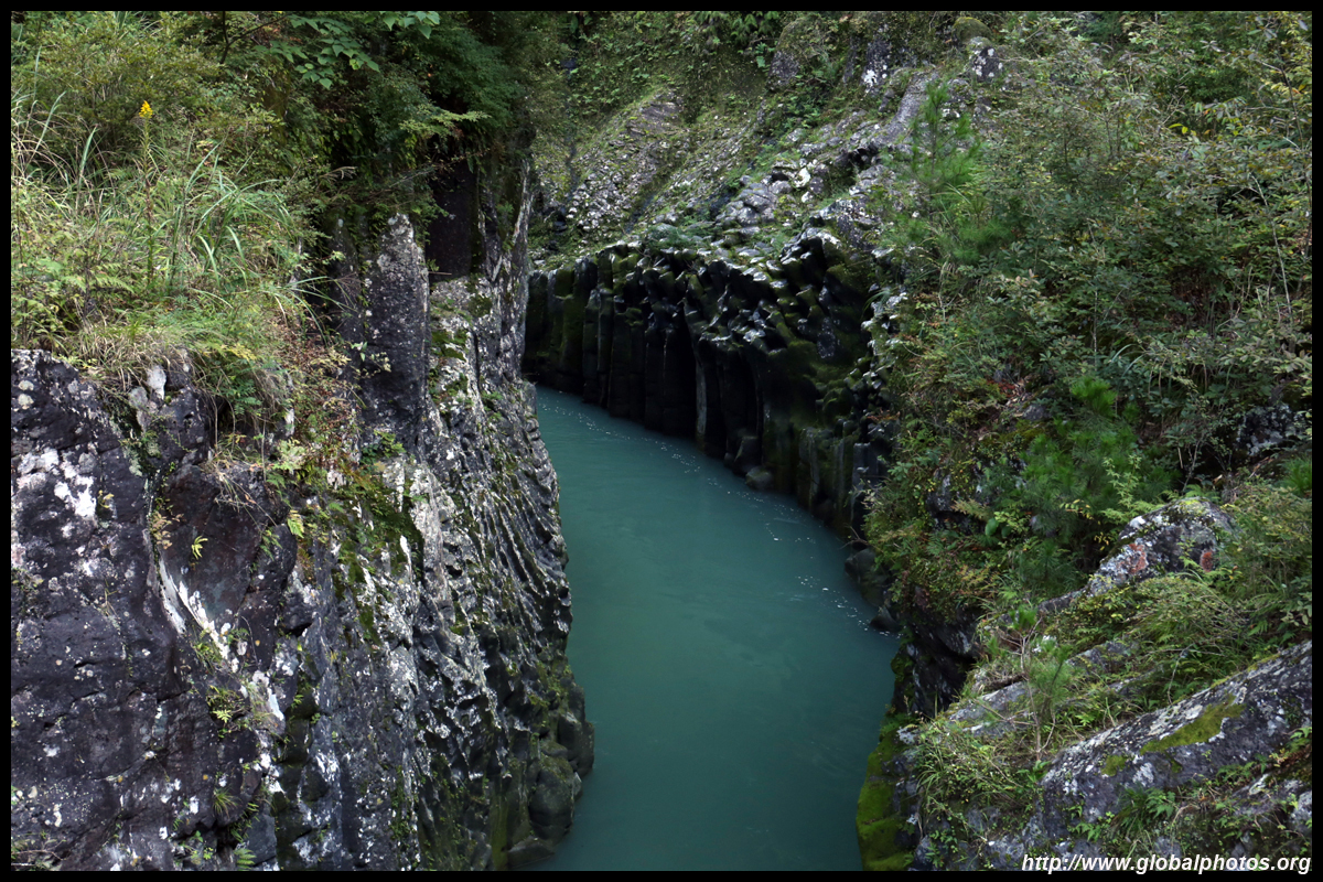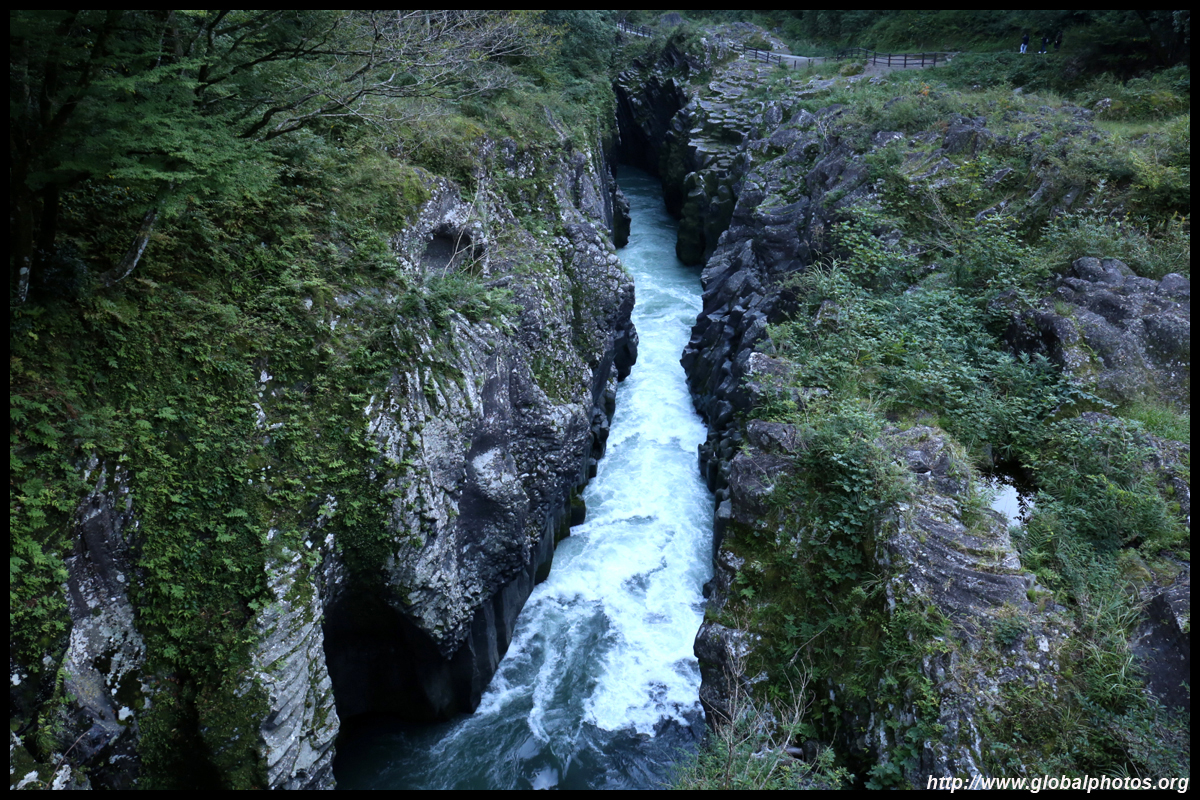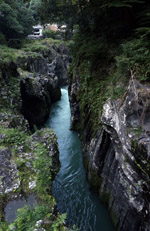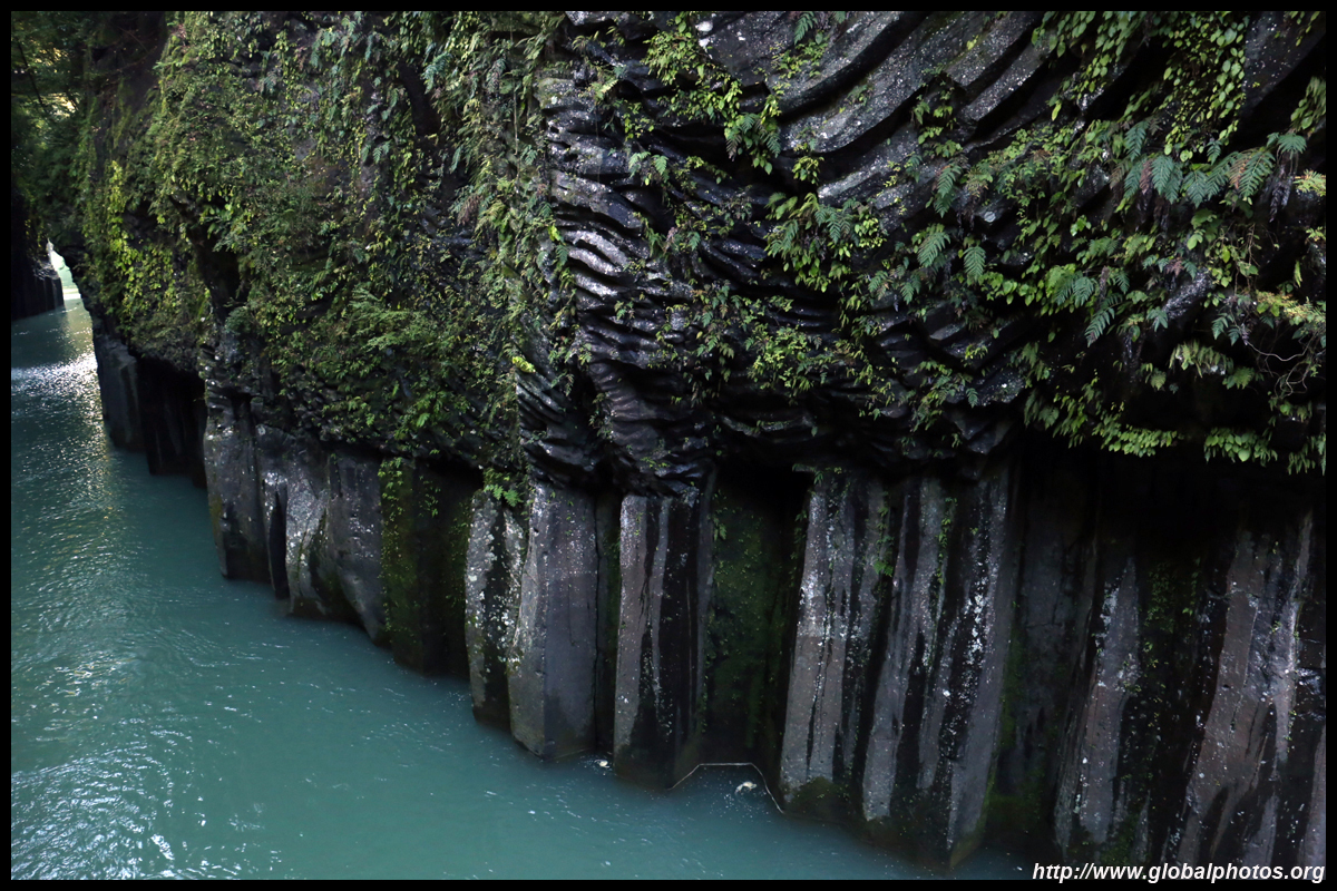 Takachiho Gorge was formed by rapid cooling of lava from Mt. Aso. A walkway is partially opened along the riverfront although there wasn't much water flow to appreciate the natural beauty fully.