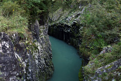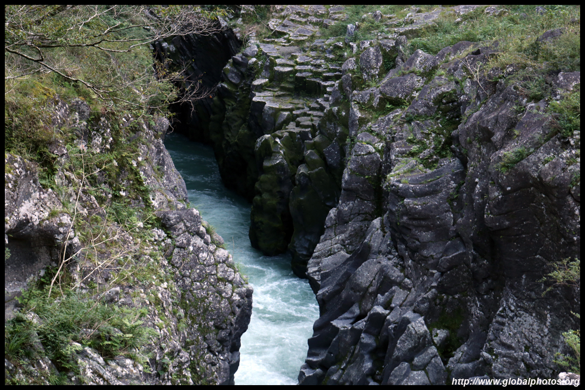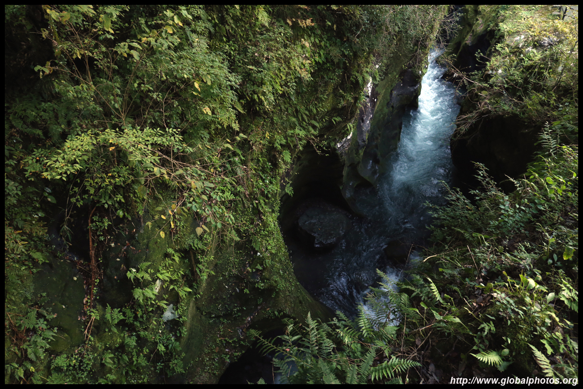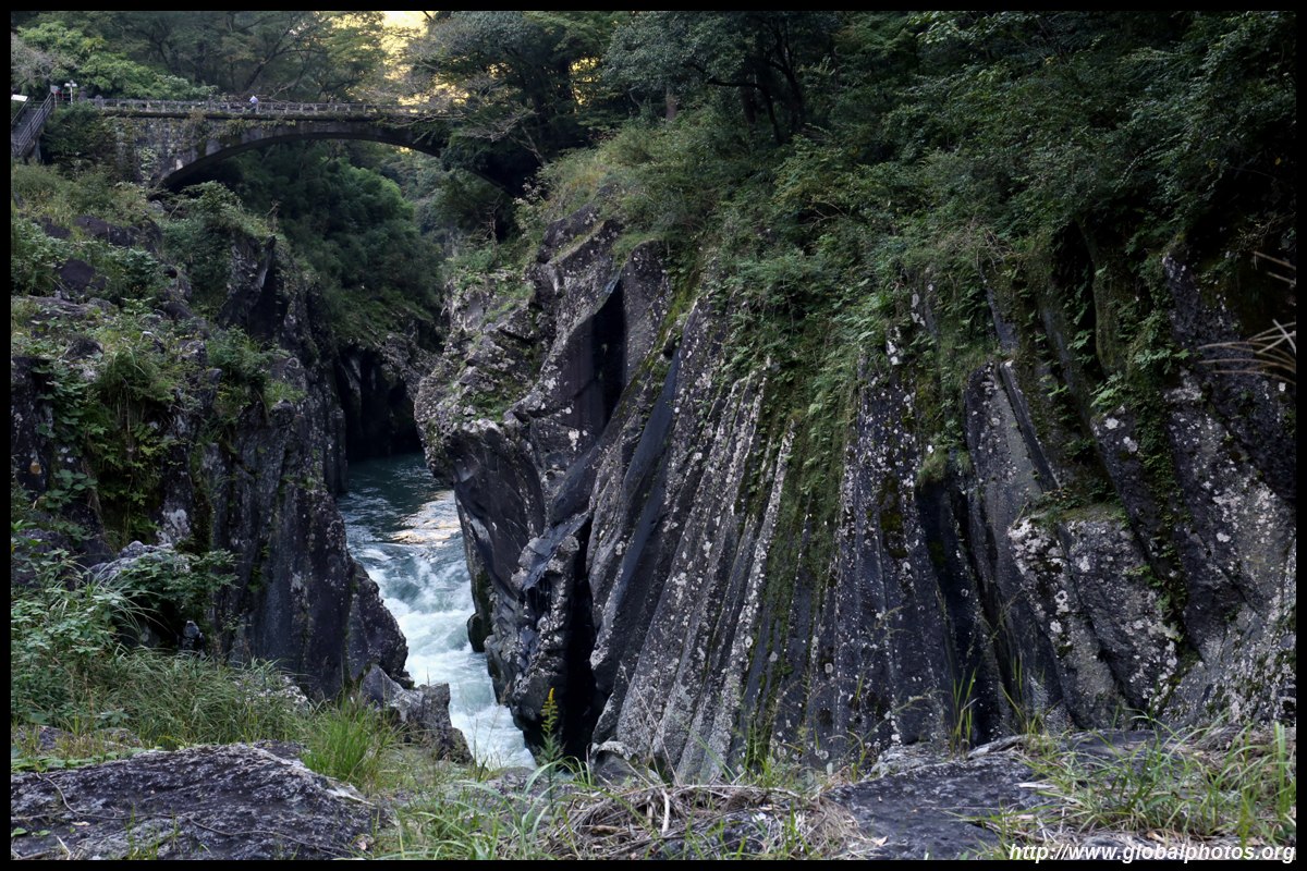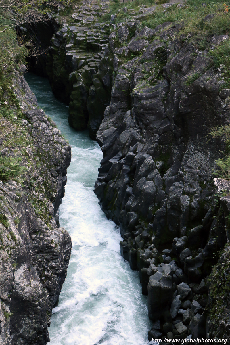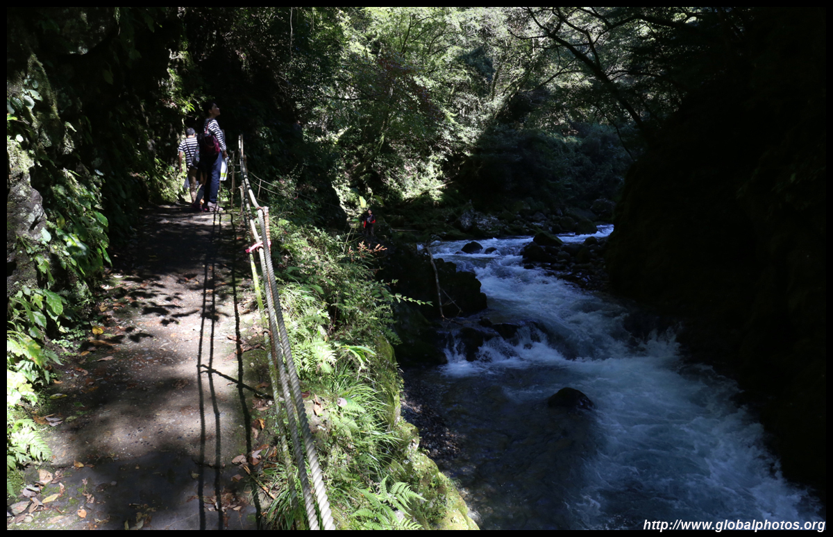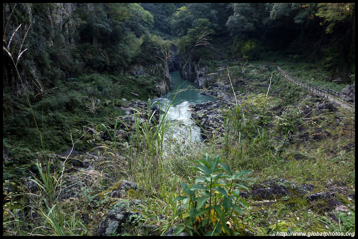 Takachiho Gorge was formed by rapid cooling of lava from Mt. Aso. A walkway is partially opened along the riverfront although there wasn't much water flow to appreciate the natural beauty fully.