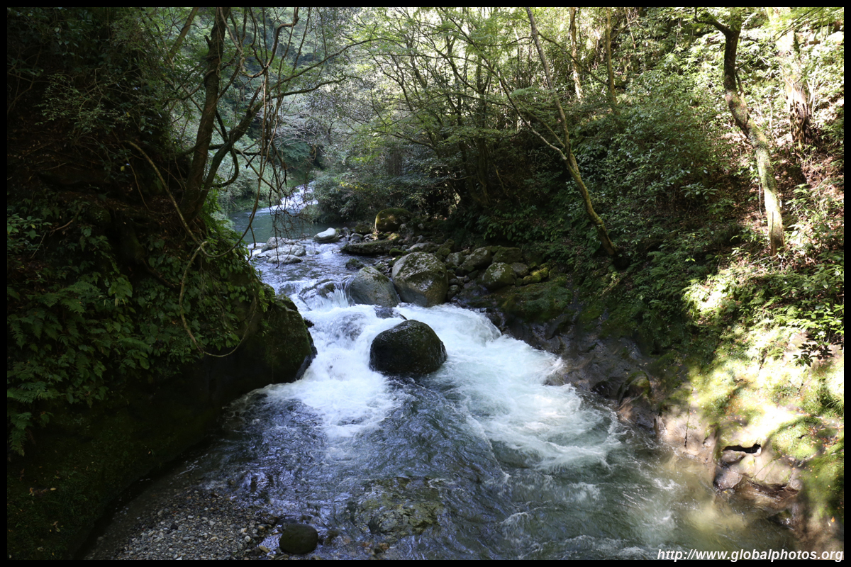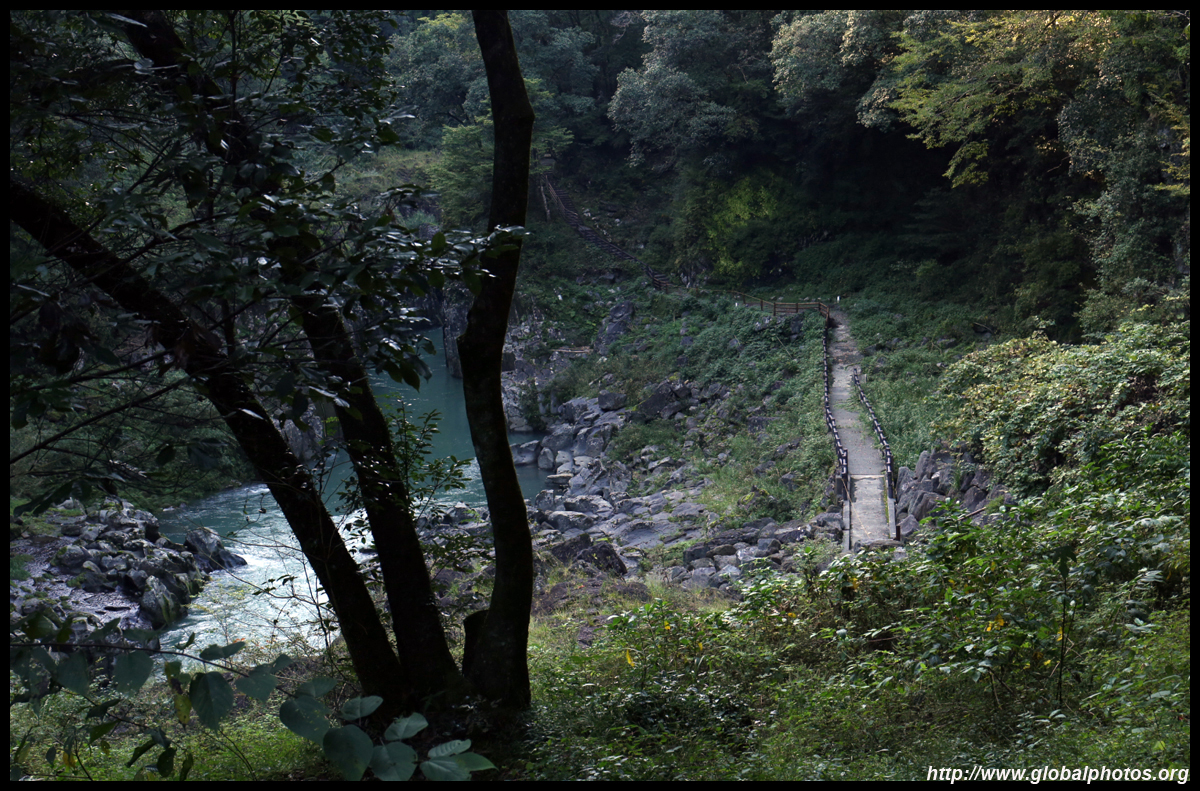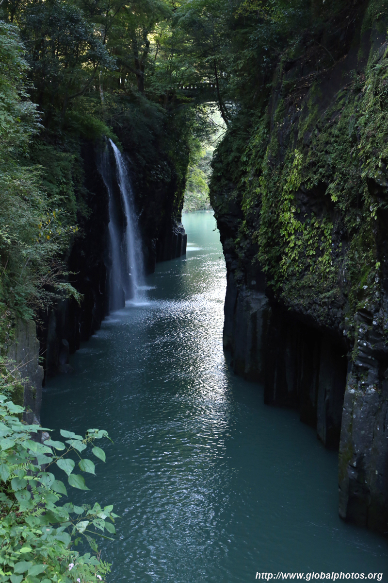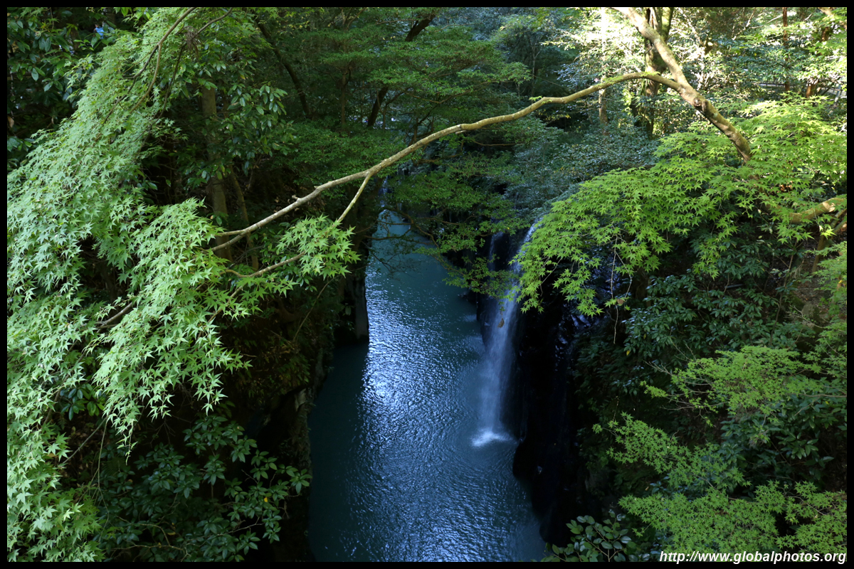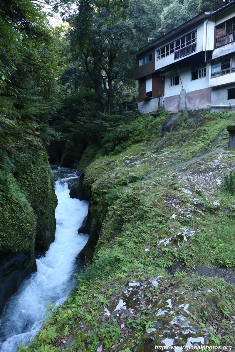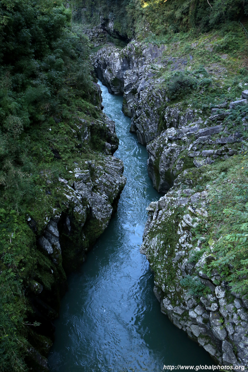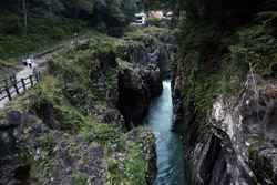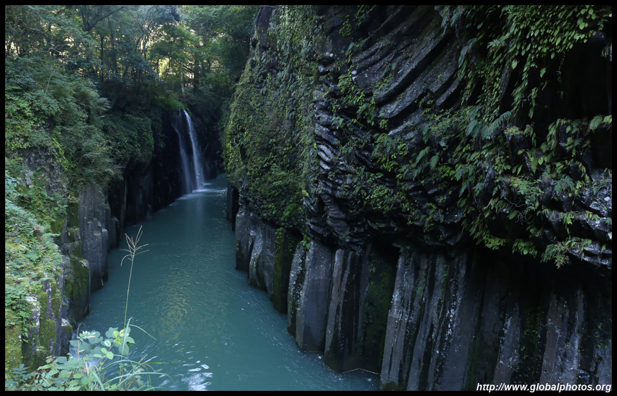 Takachiho Gorge was formed by rapid cooling of lava from Mt. Aso. A walkway is partially opened along the riverfront although there wasn't much water flow to appreciate the natural beauty fully.