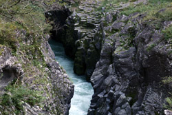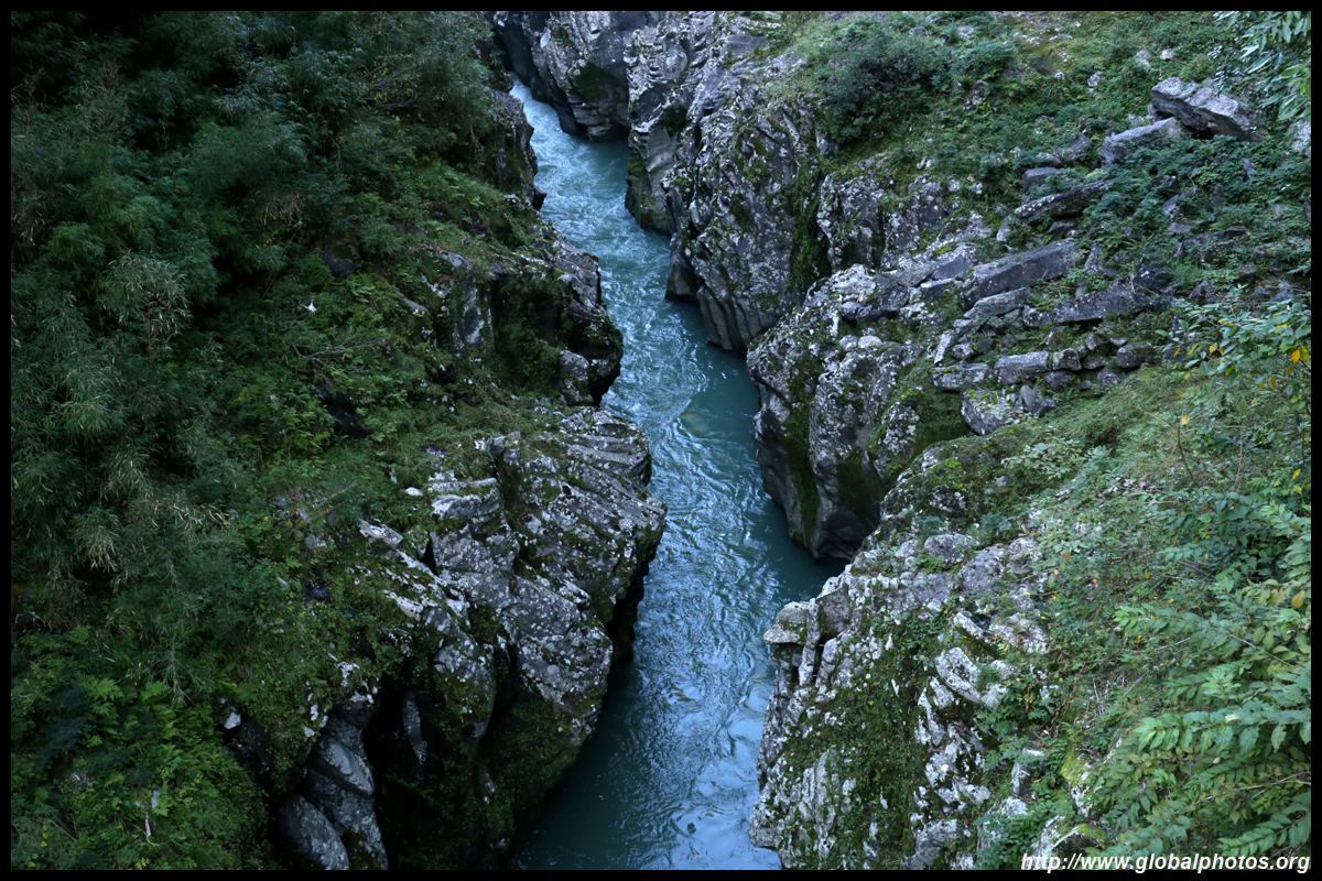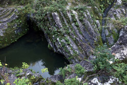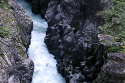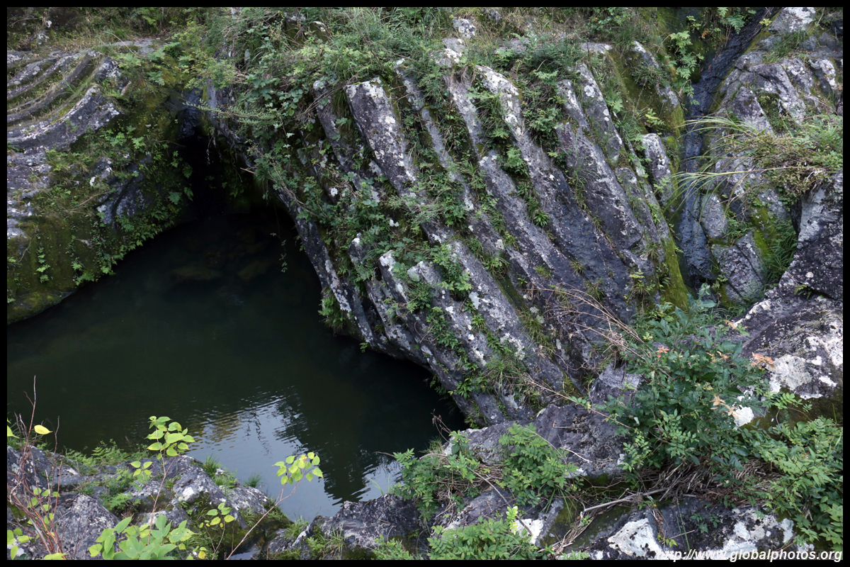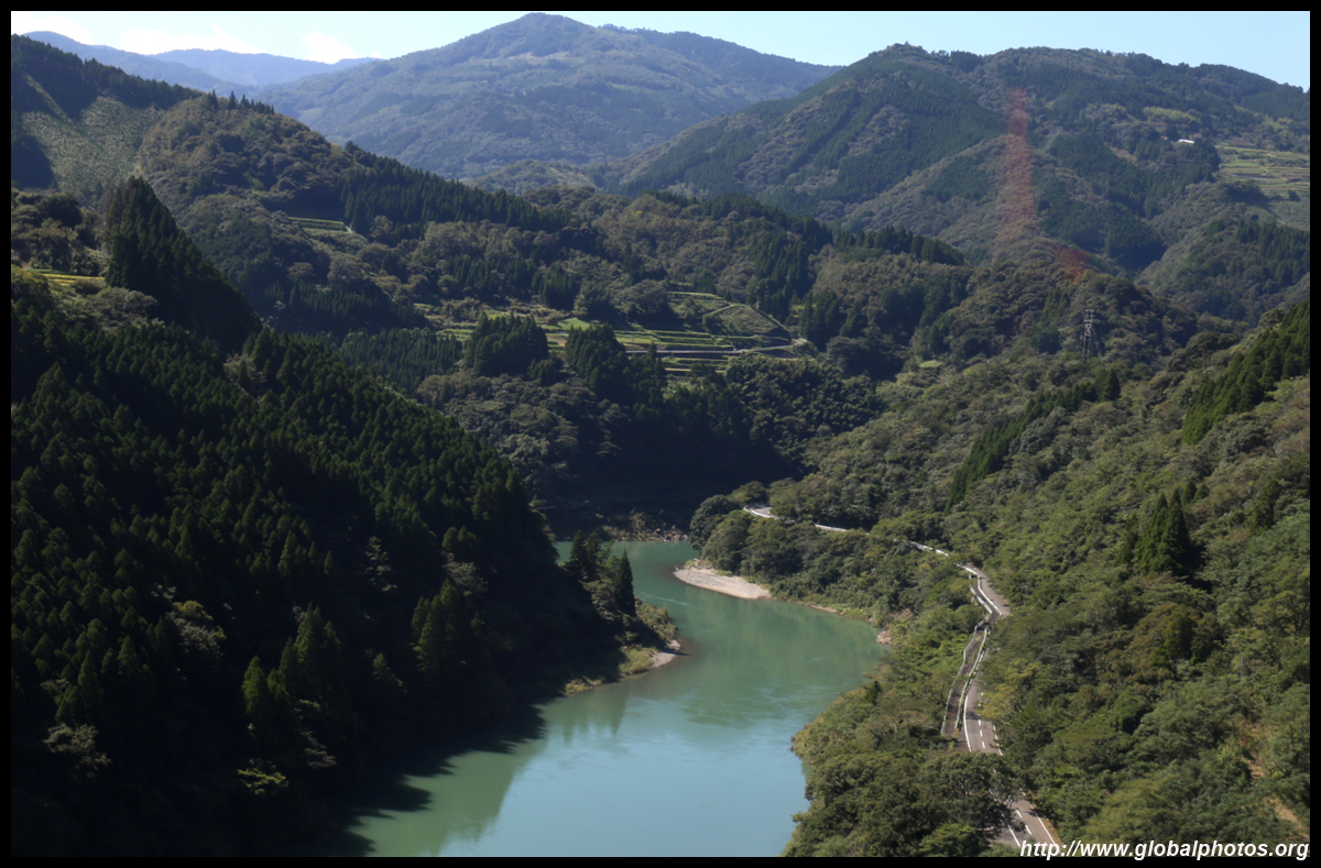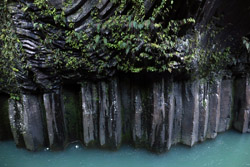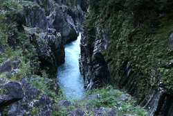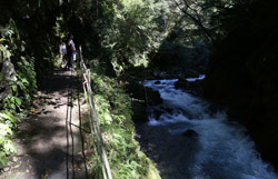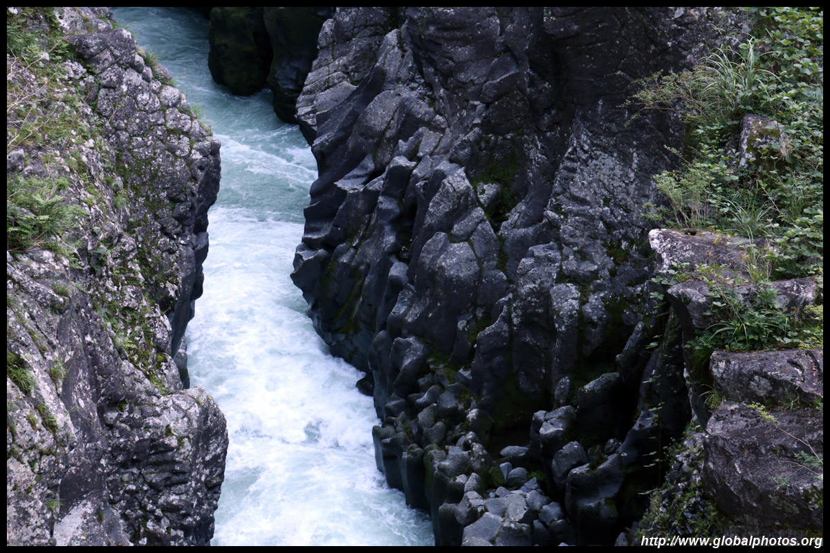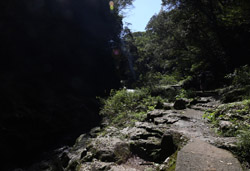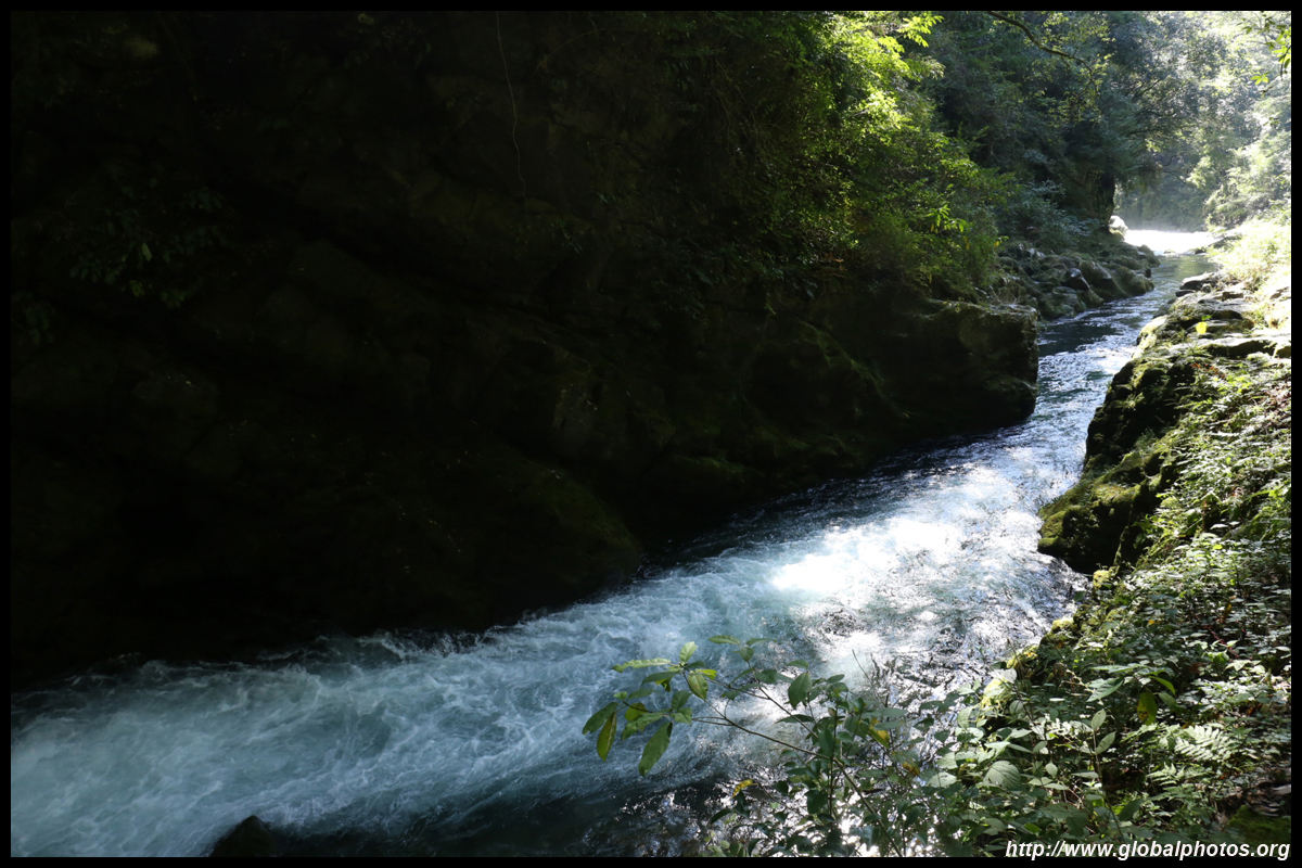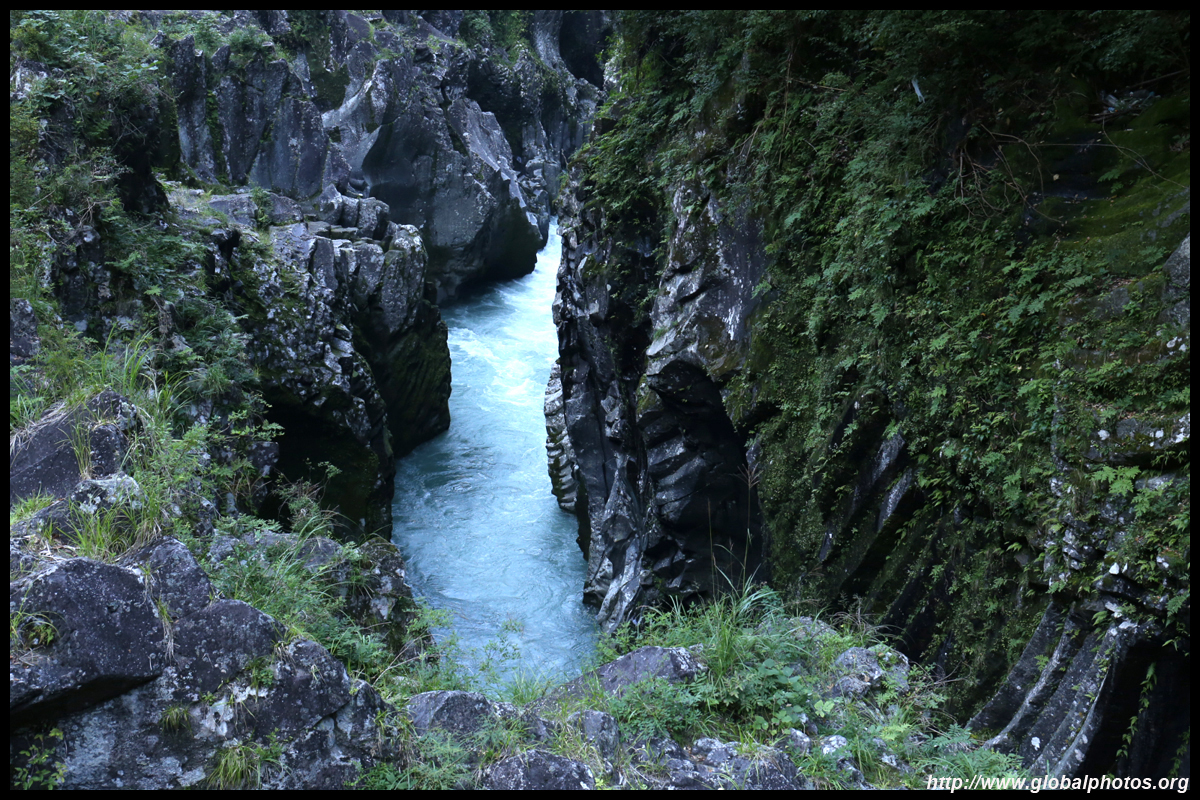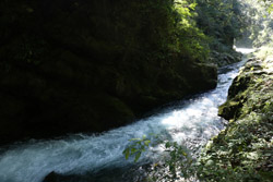 Takachiho Gorge was formed by rapid cooling of lava from Mt. Aso. A walkway is partially opened along the riverfront although there wasn't much water flow to appreciate the natural beauty fully.