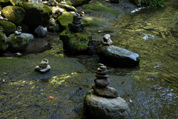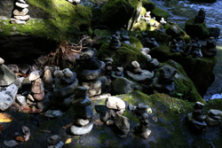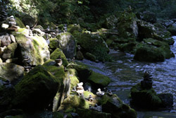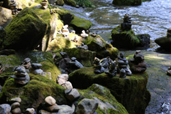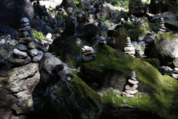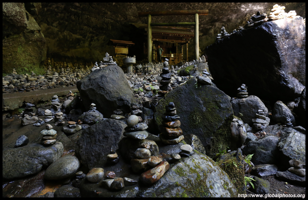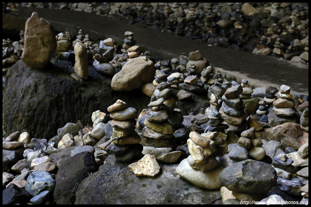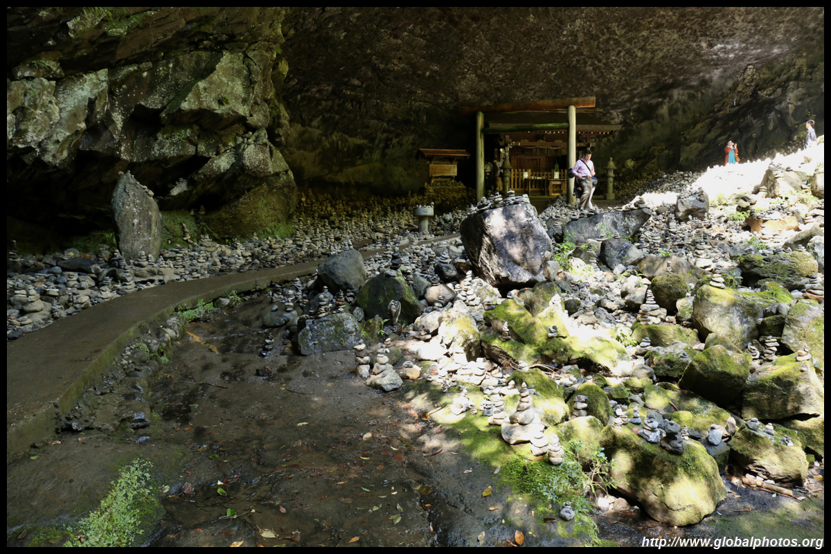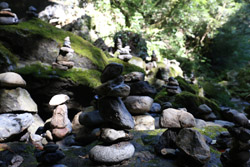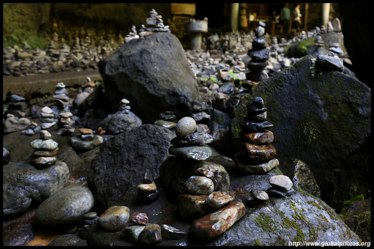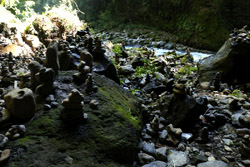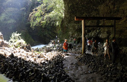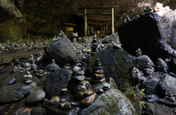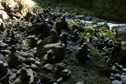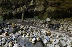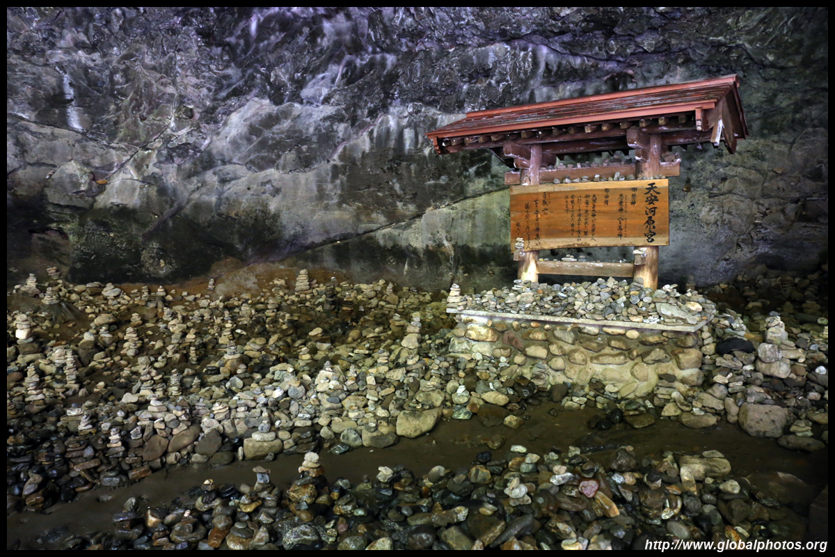 The star attraction is downhill towards the river. According to legend, Amano Yasugawara is the place where the gods and goddesses convened to discuss how to entice the sun goddess Amaterasu to come out of the rock cave and end the world's darkness. Pilgrims carried stones to this site over the years and arranged them into piles.