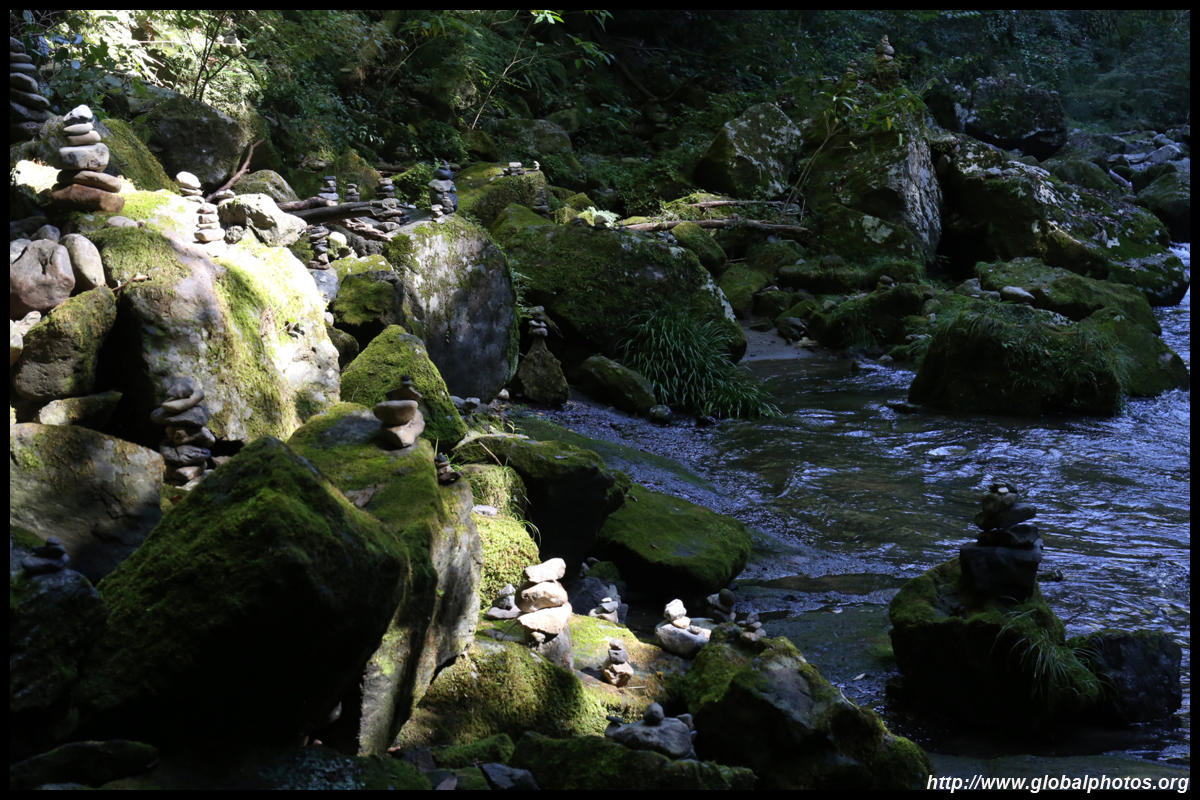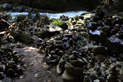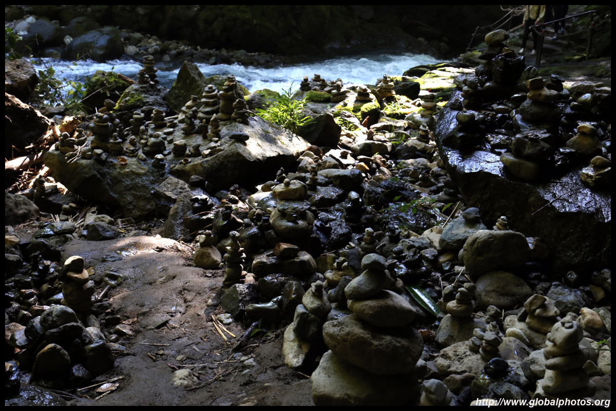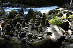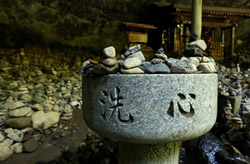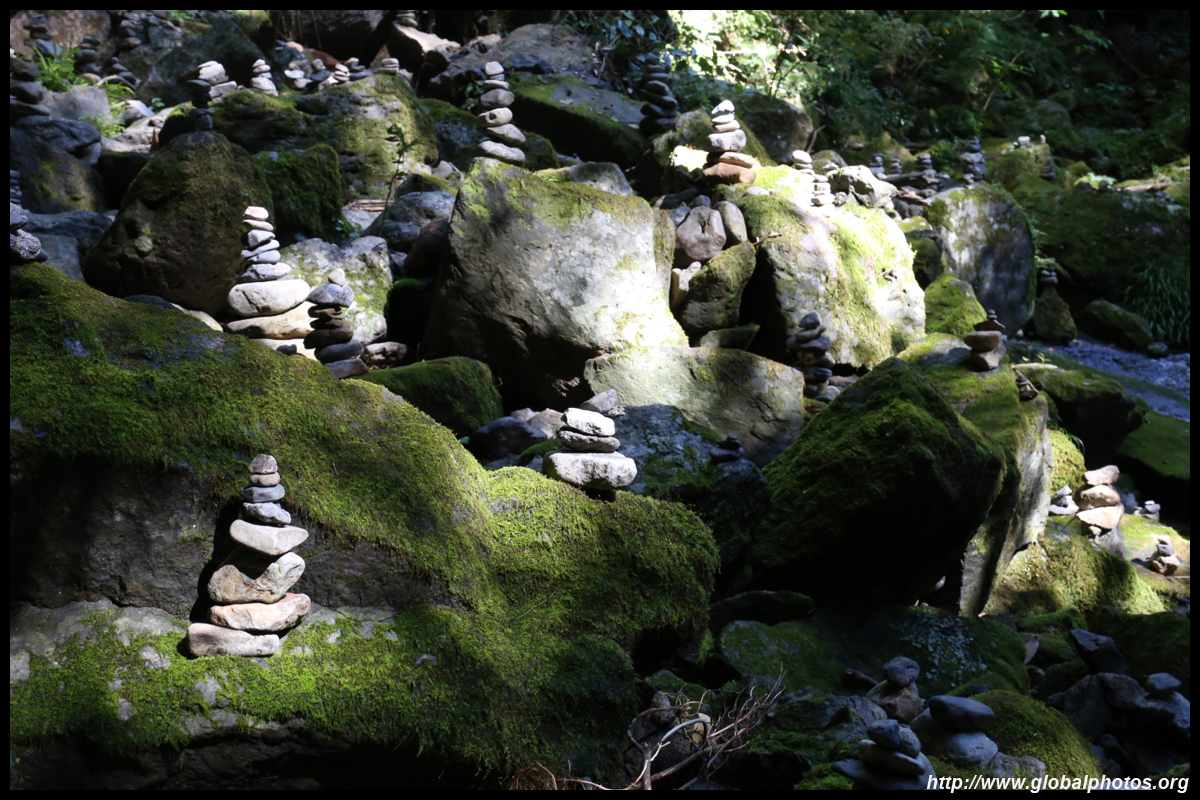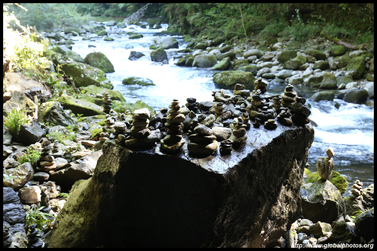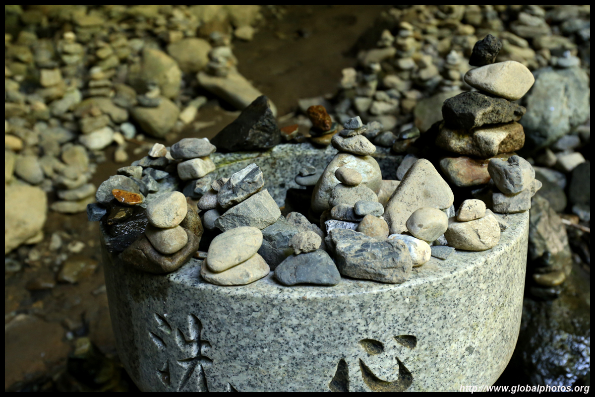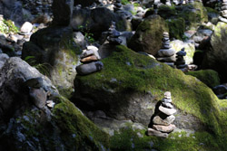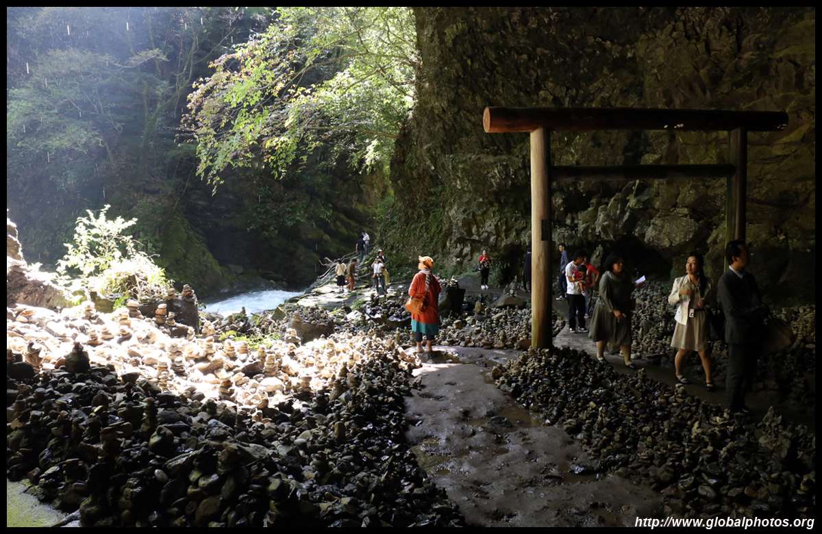 The star attraction is downhill towards the river. According to legend, Amano Yasugawara is the place where the gods and goddesses convened to discuss how to entice the sun goddess Amaterasu to come out of the rock cave and end the world's darkness. Pilgrims carried stones to this site over the years and arranged them into piles.