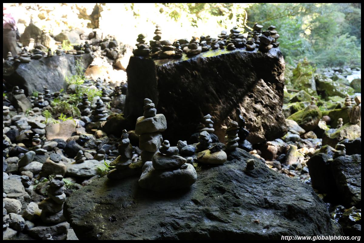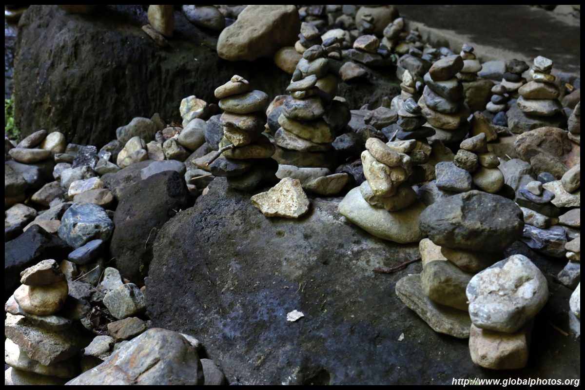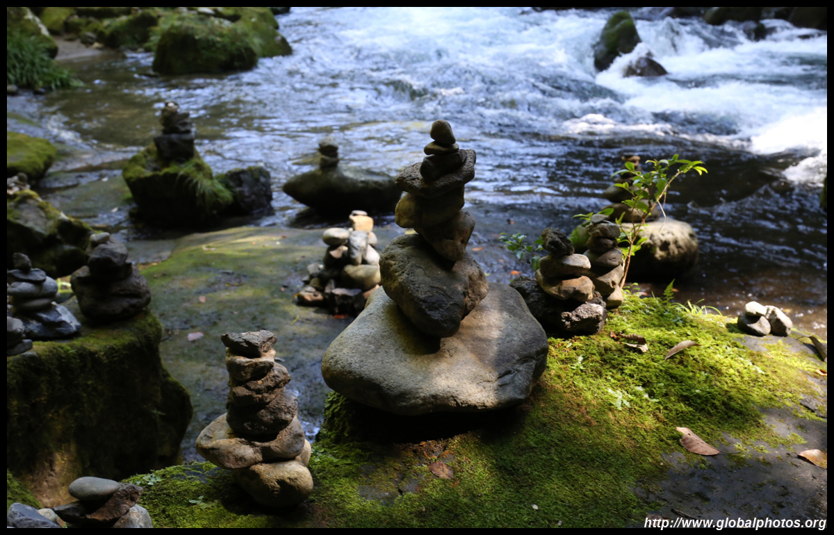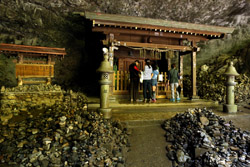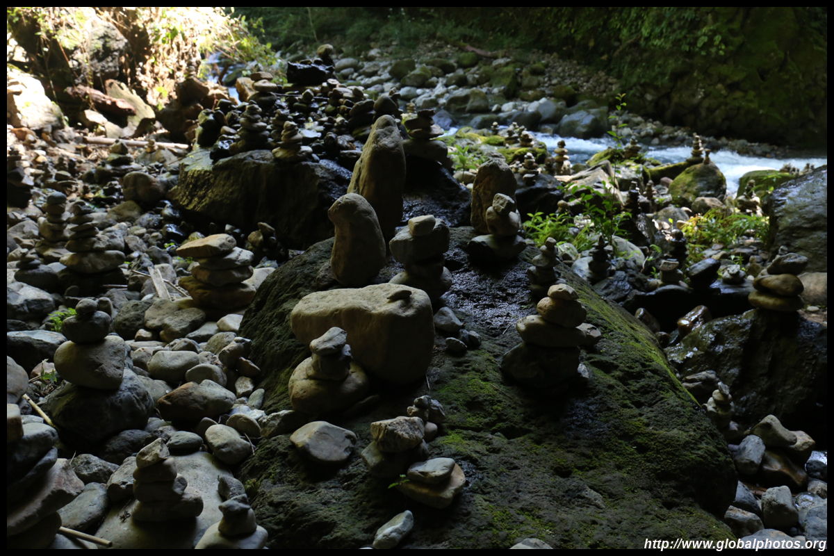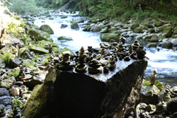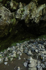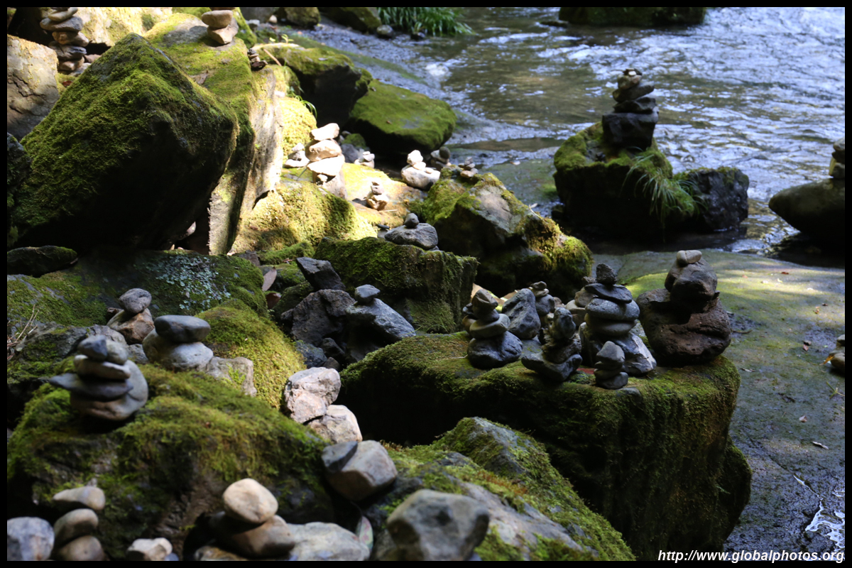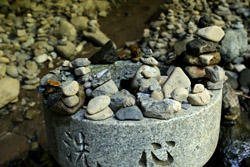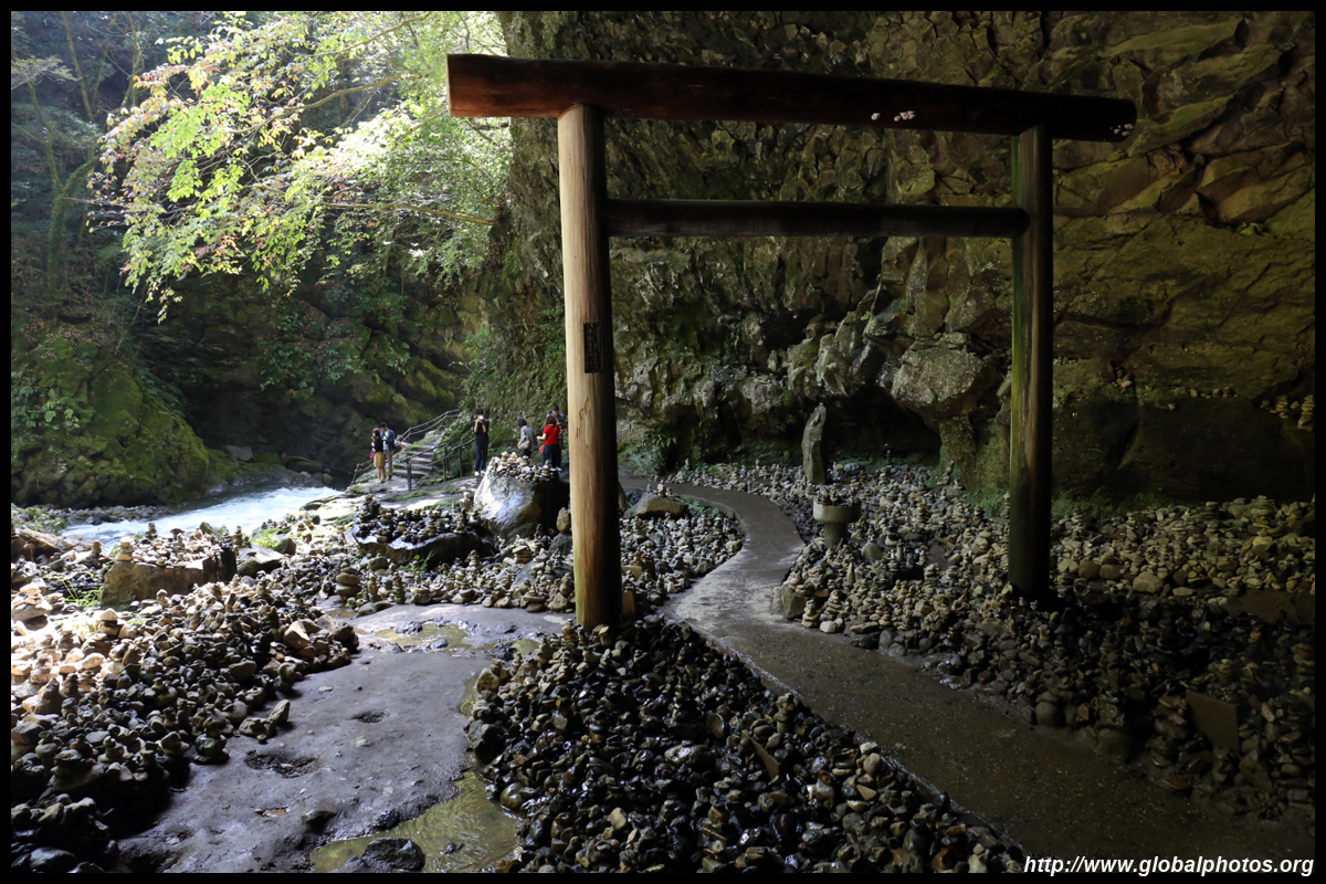 The star attraction is downhill towards the river. According to legend, Amano Yasugawara is the place where the gods and goddesses convened to discuss how to entice the sun goddess Amaterasu to come out of the rock cave and end the world's darkness. Pilgrims carried stones to this site over the years and arranged them into piles.