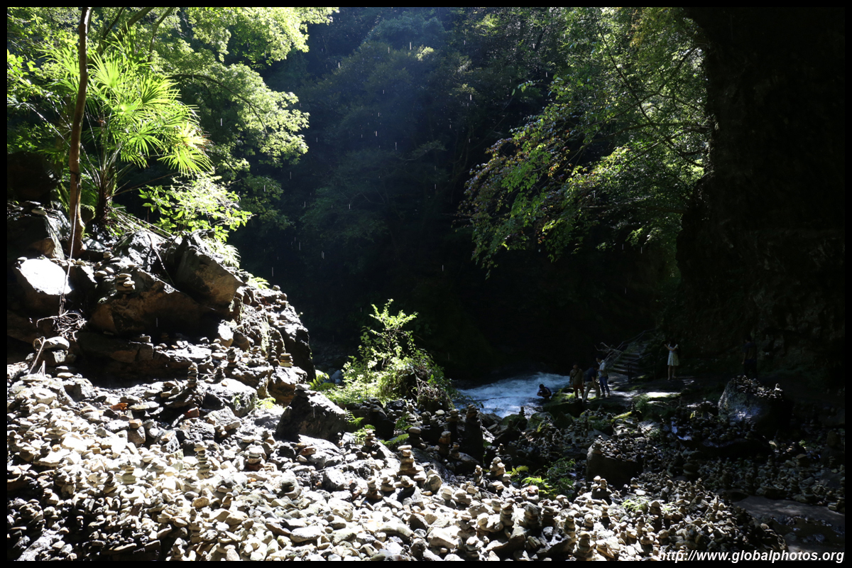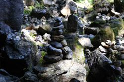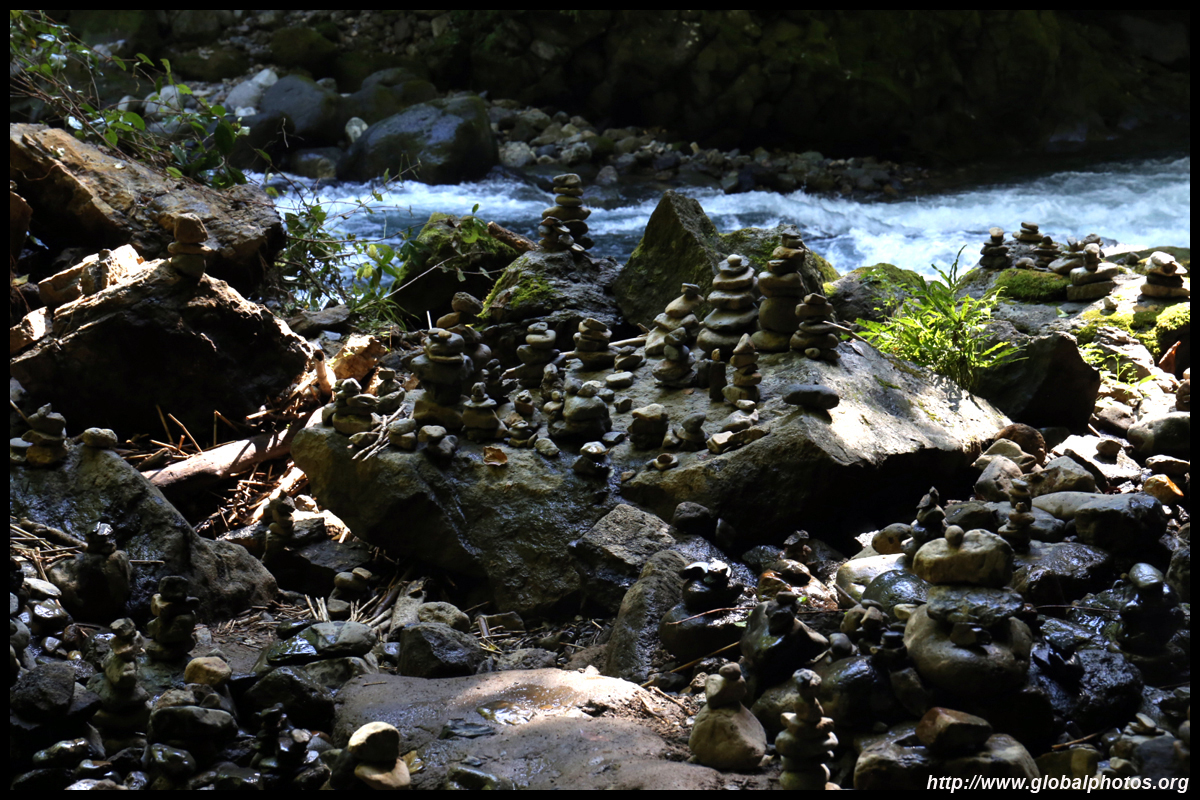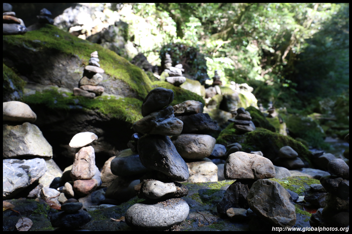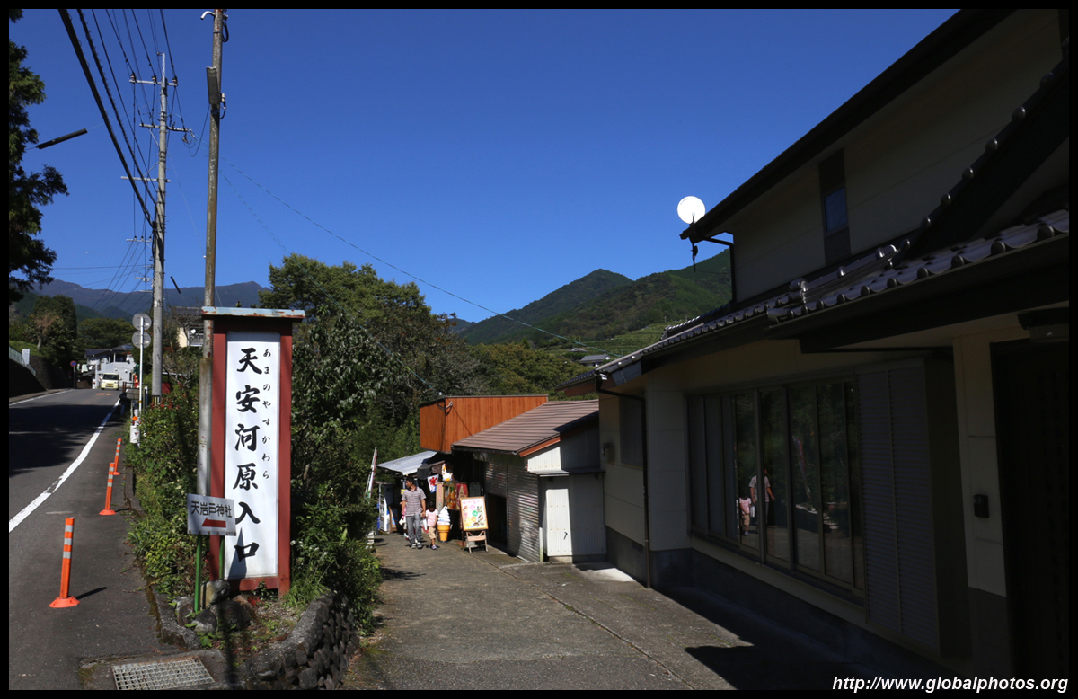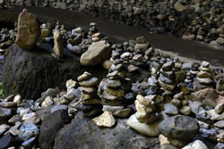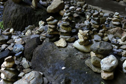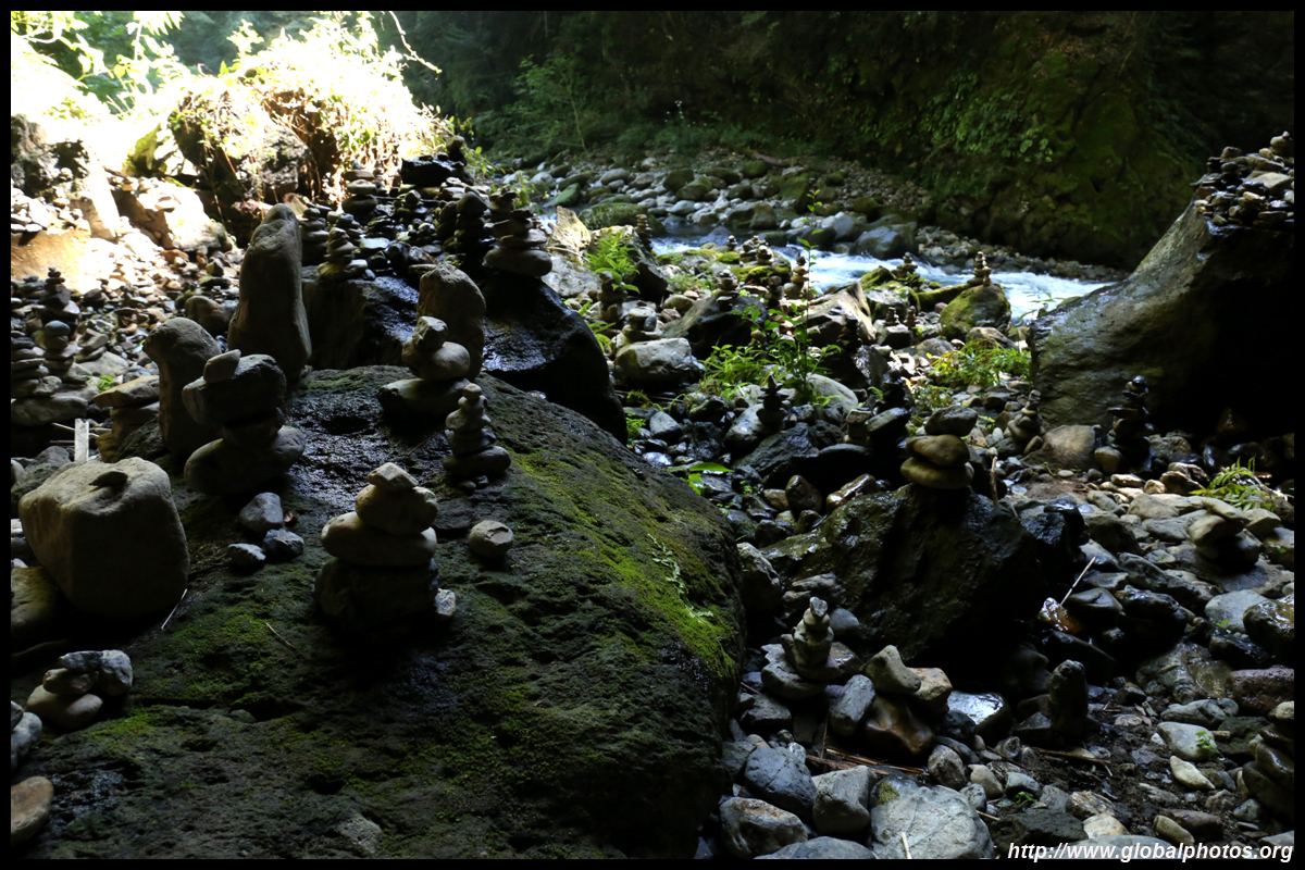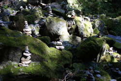 The star attraction is downhill towards the river. According to legend, Amano Yasugawara is the place where the gods and goddesses convened to discuss how to entice the sun goddess Amaterasu to come out of the rock cave and end the world's darkness. Pilgrims carried stones to this site over the years and arranged them into piles.