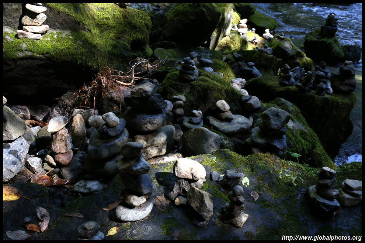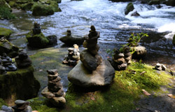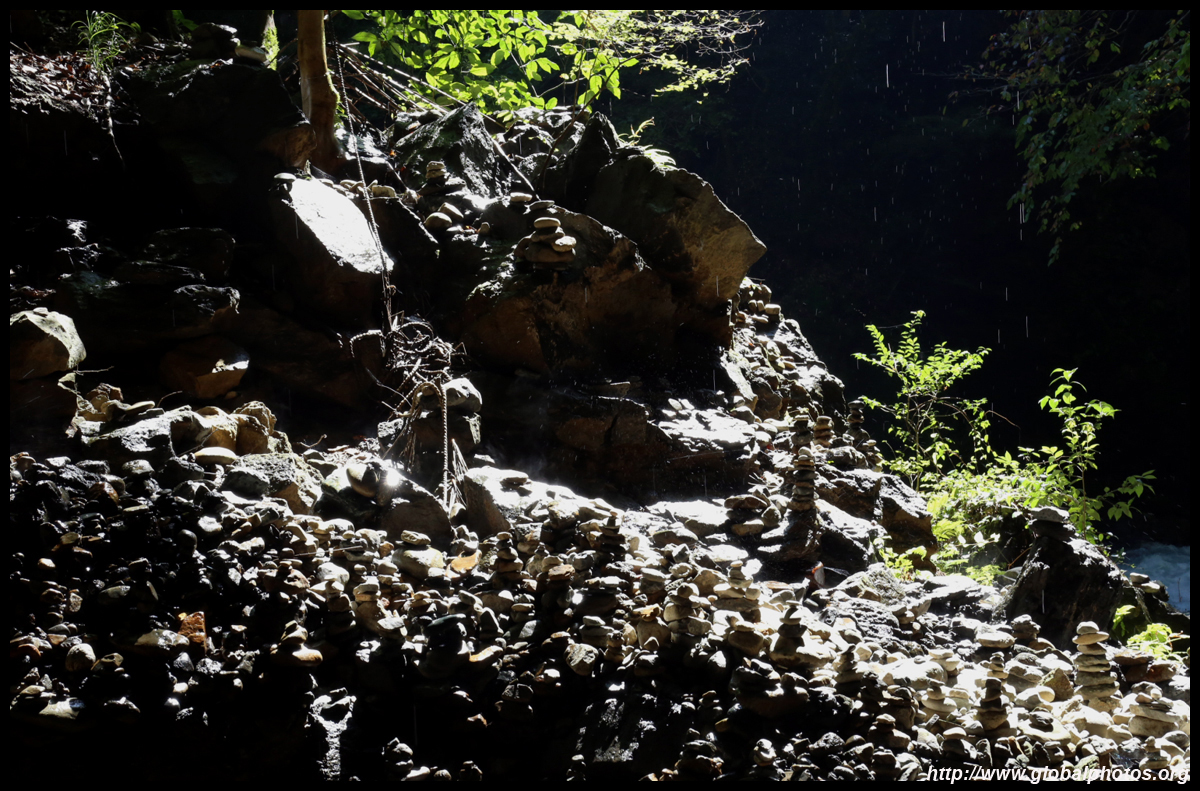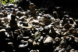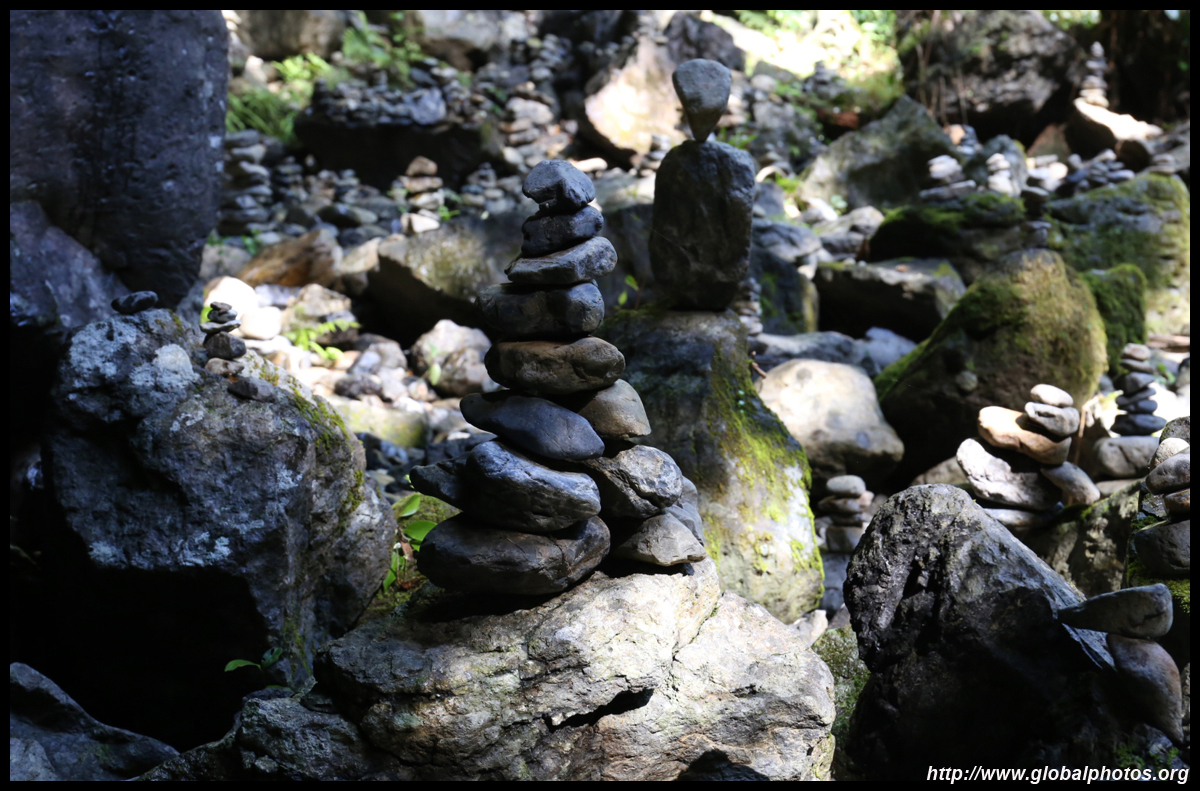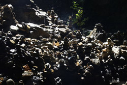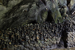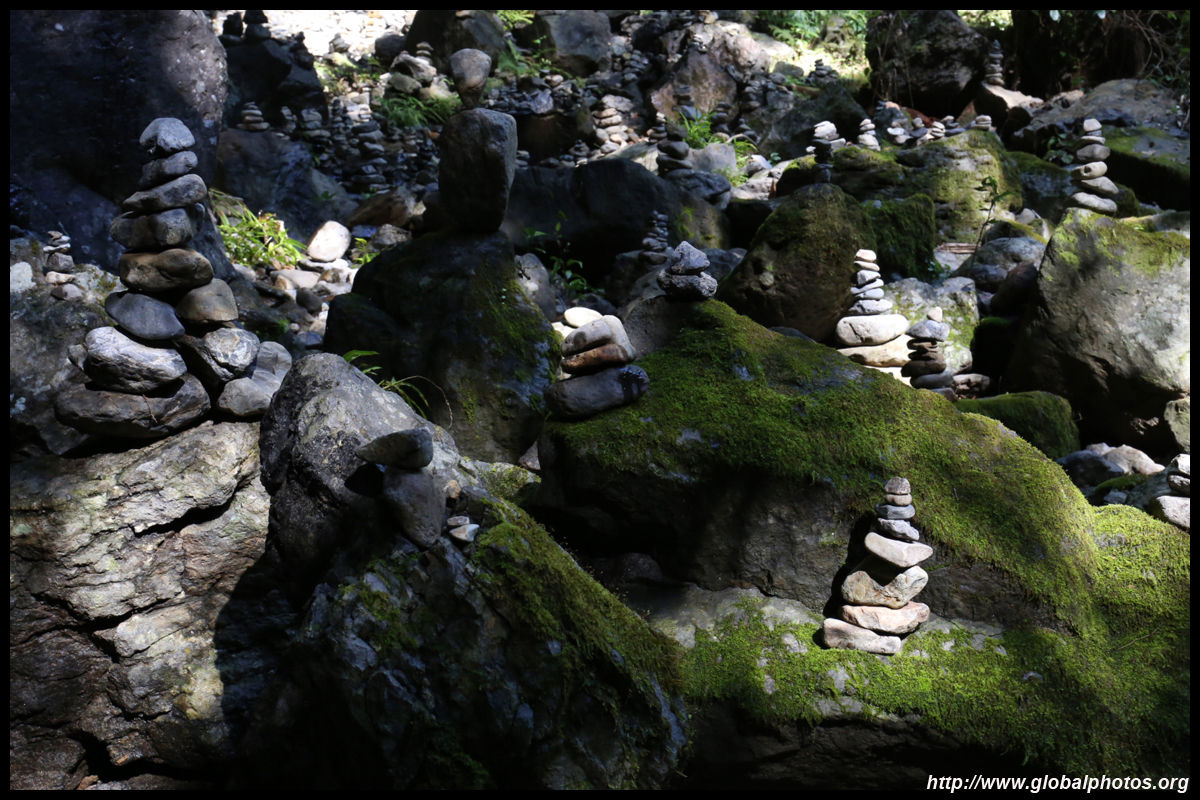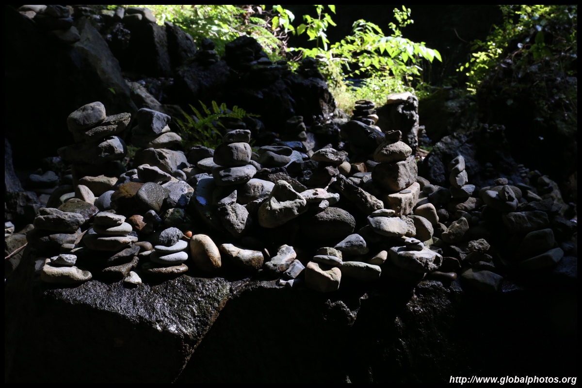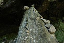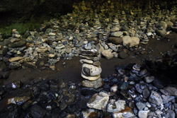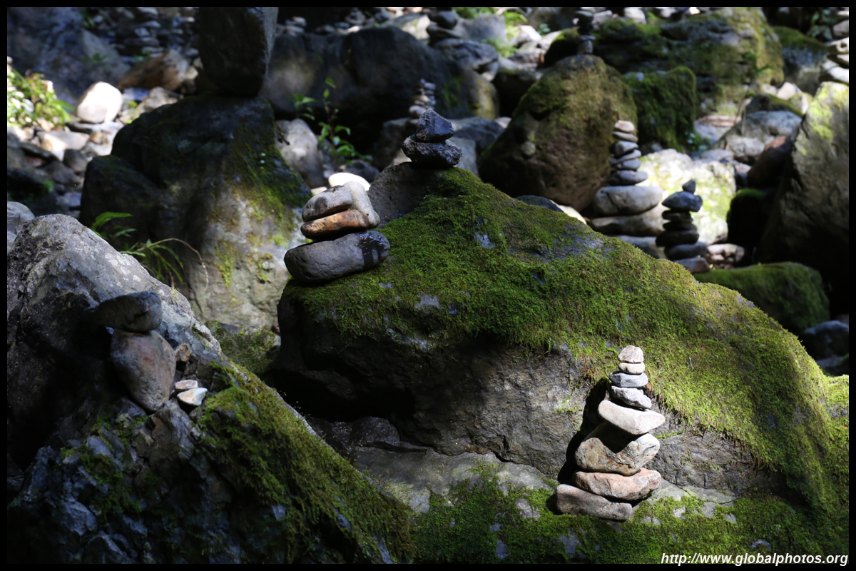 The star attraction is downhill towards the river. According to legend, Amano Yasugawara is the place where the gods and goddesses convened to discuss how to entice the sun goddess Amaterasu to come out of the rock cave and end the world's darkness. Pilgrims carried stones to this site over the years and arranged them into piles.