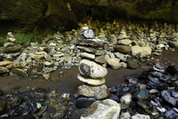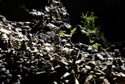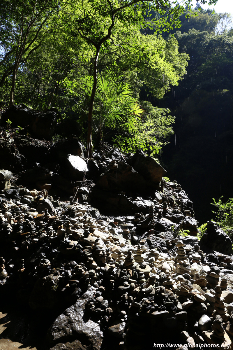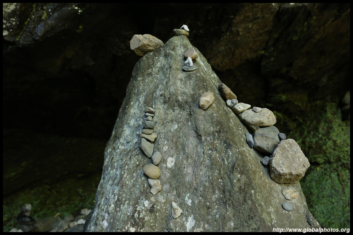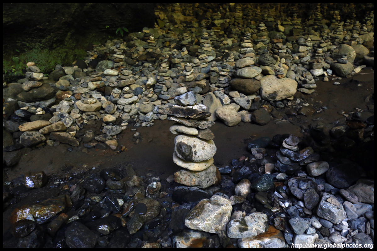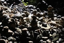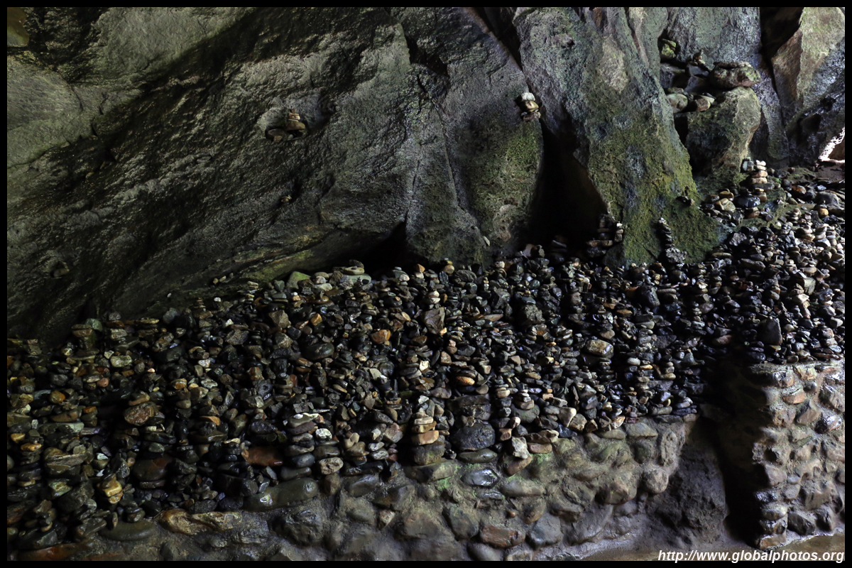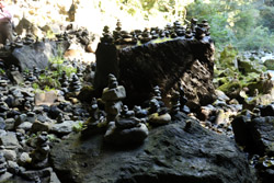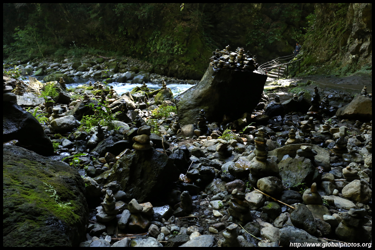 The star attraction is downhill towards the river. According to legend, Amano Yasugawara is the place where the gods and goddesses convened to discuss how to entice the sun goddess Amaterasu to come out of the rock cave and end the world's darkness. Pilgrims carried stones to this site over the years and arranged them into piles.