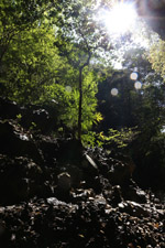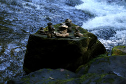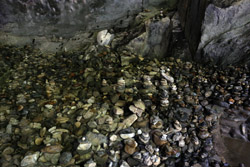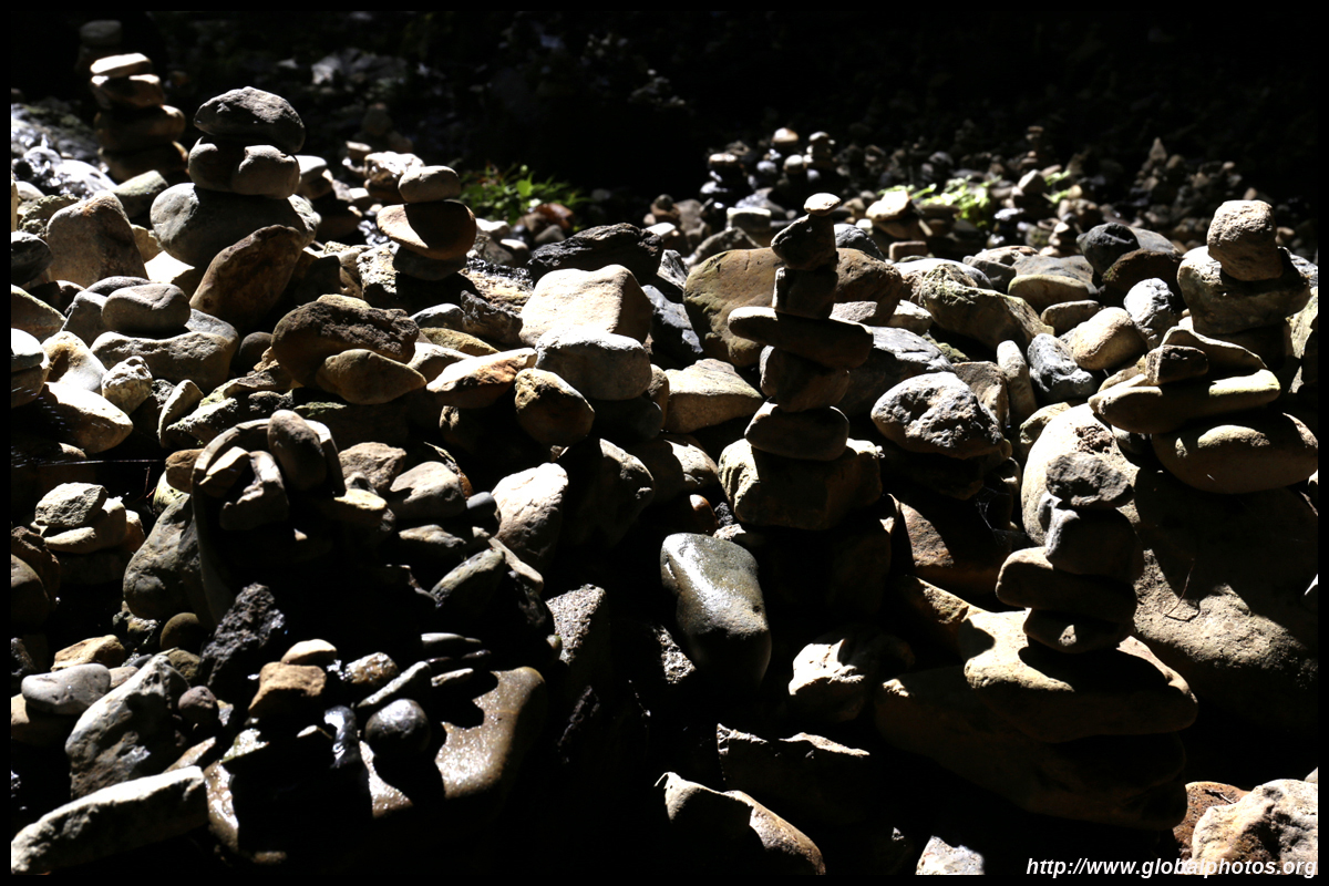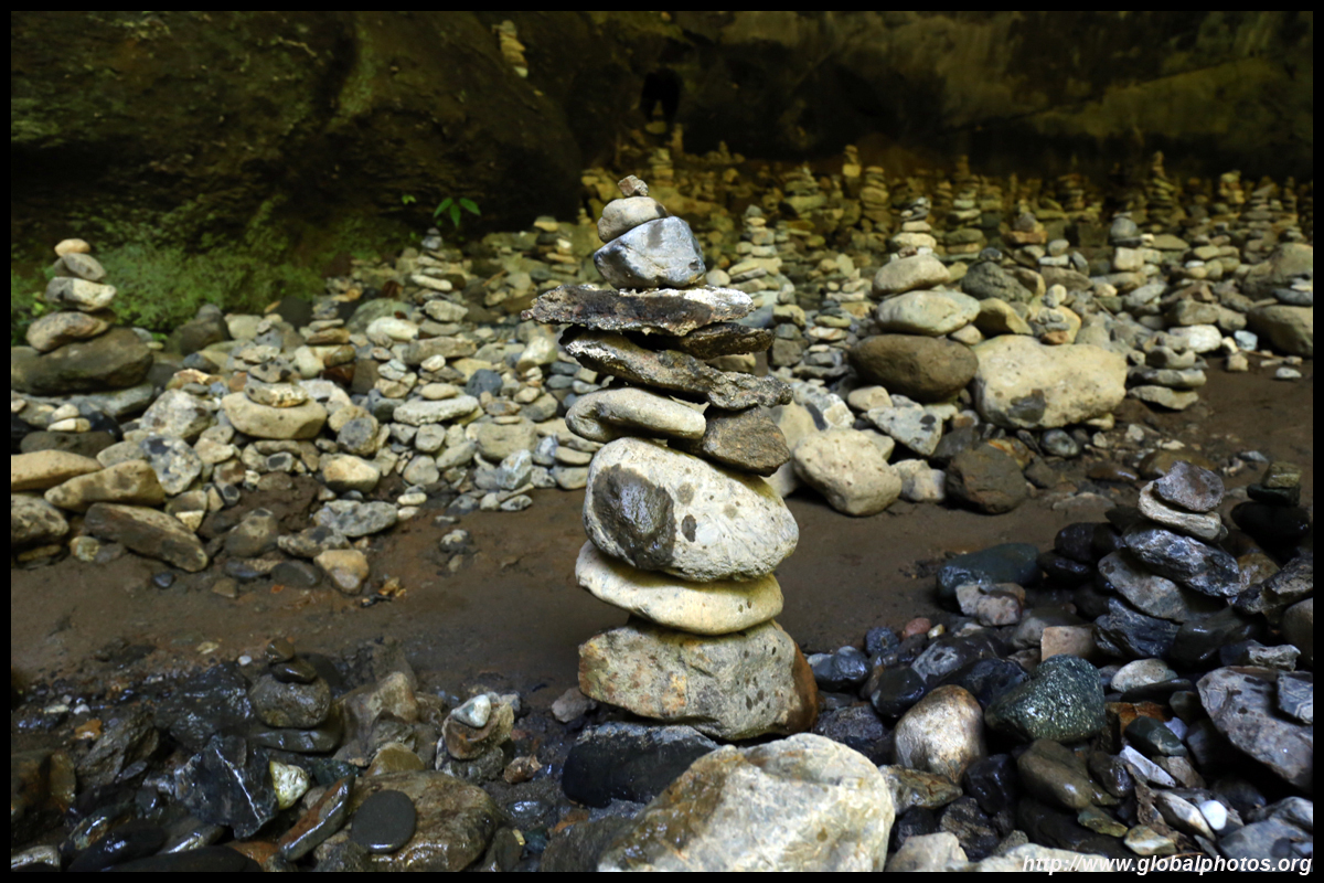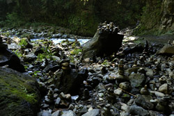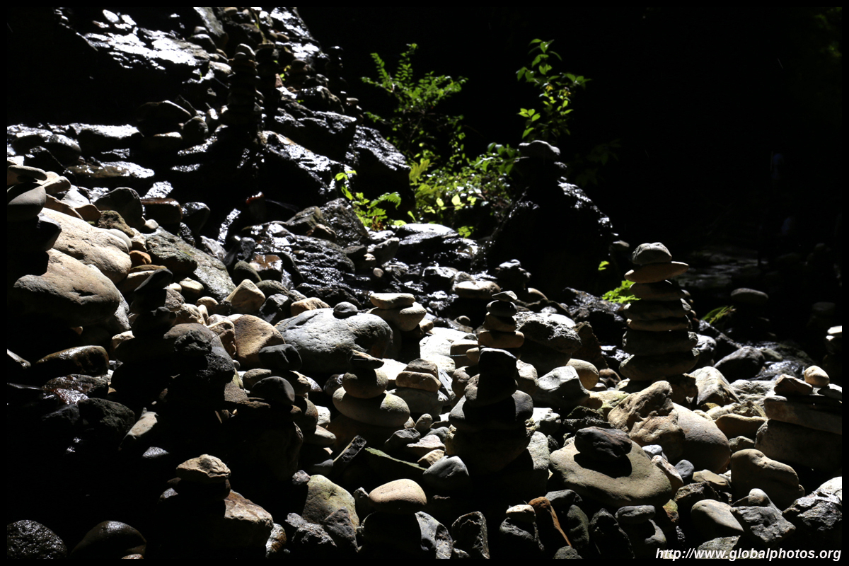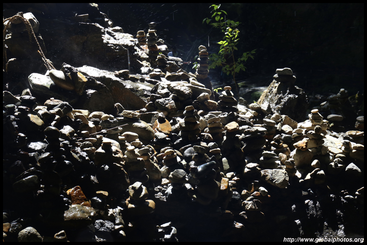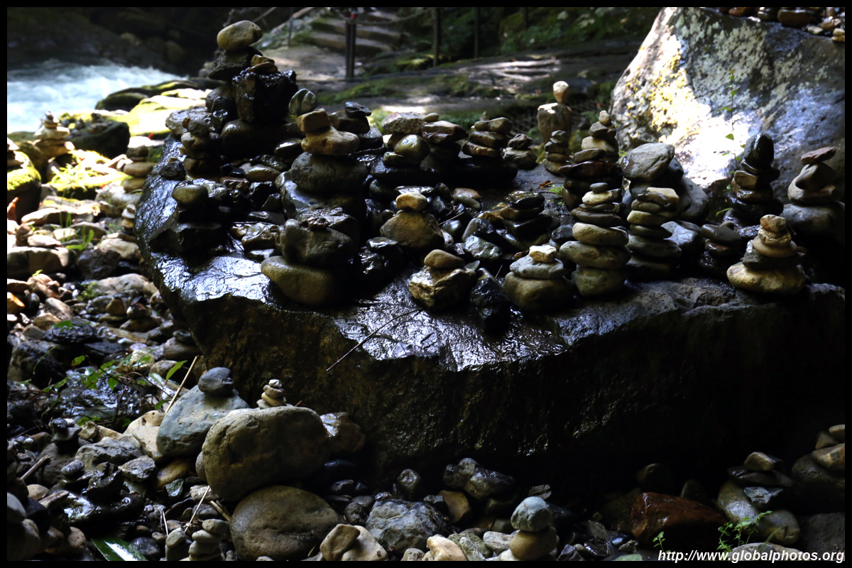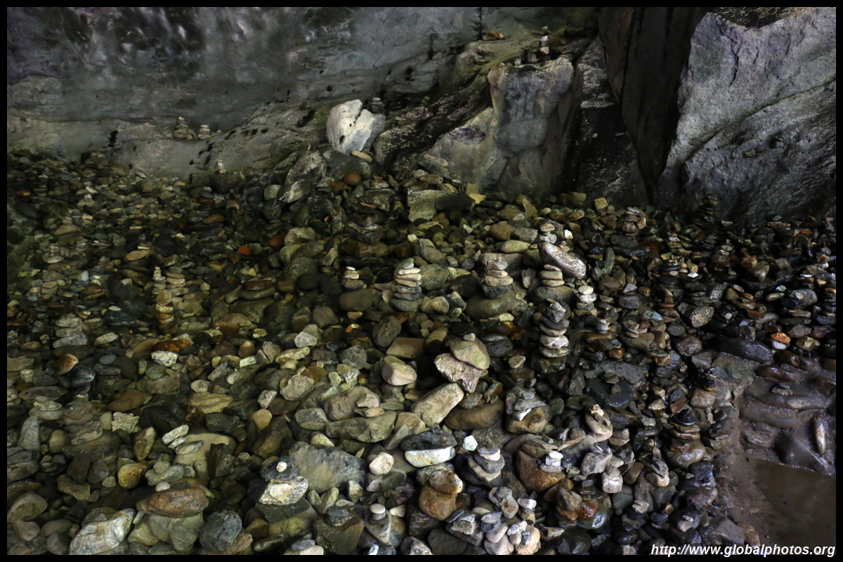The star attraction is downhill towards the river. According to legend, Amano Yasugawara is the place where the gods and goddesses convened to discuss how to entice the sun goddess Amaterasu to come out of the rock cave and end the world's darkness. Pilgrims carried stones to this site over the years and arranged them into piles.