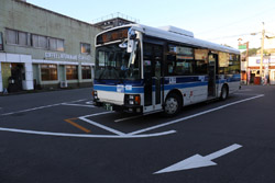 There is a lot of construction happening around the small Nobeoka railway station. The bus station is the next building across from the construction with the entrance on the back side.