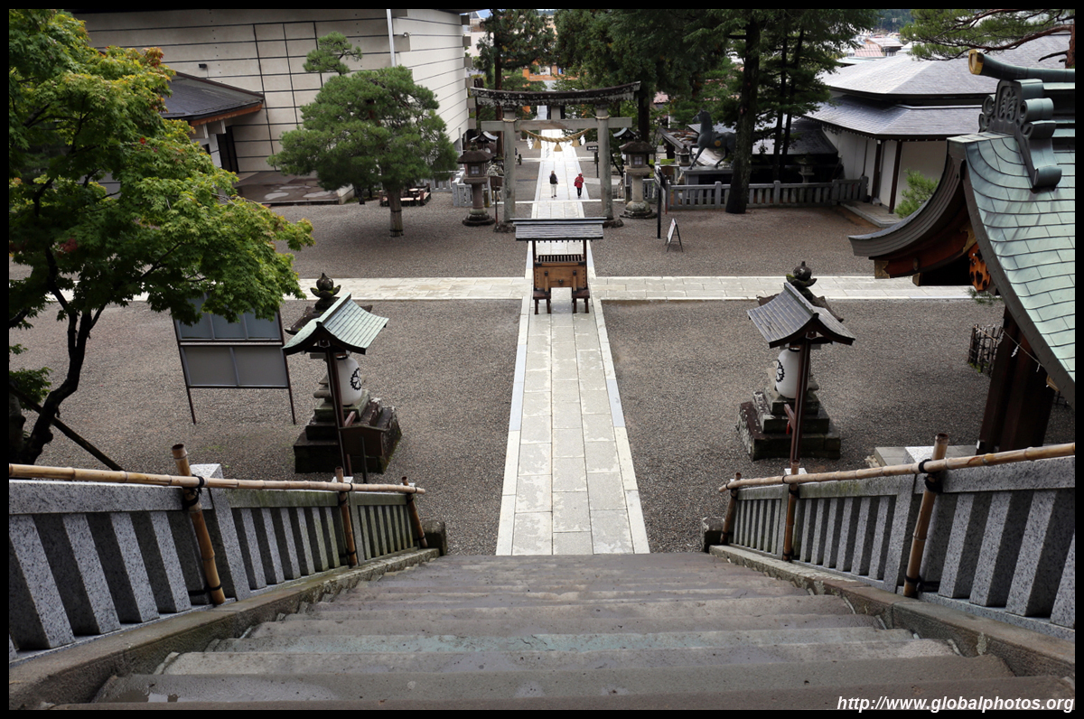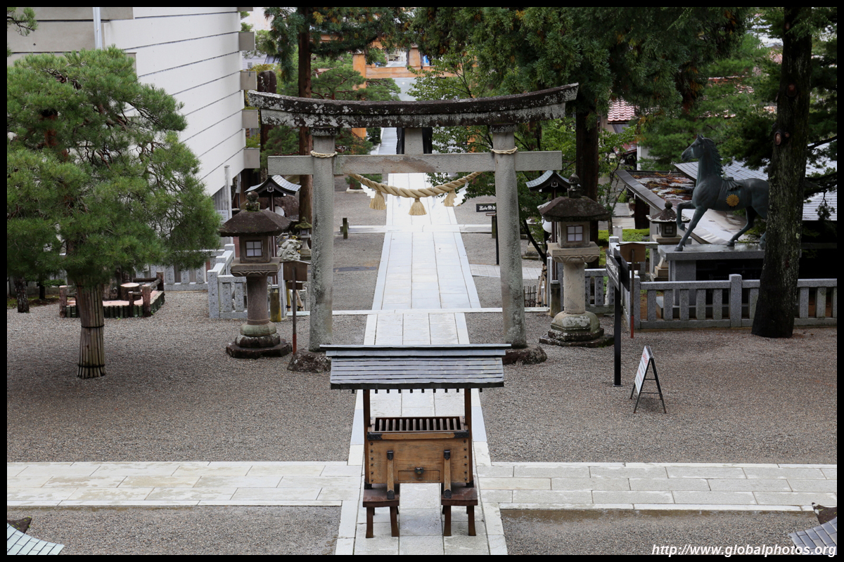 Behind the museum, go up the stairs to visit the Sakurayama Hachimangu Shrine.