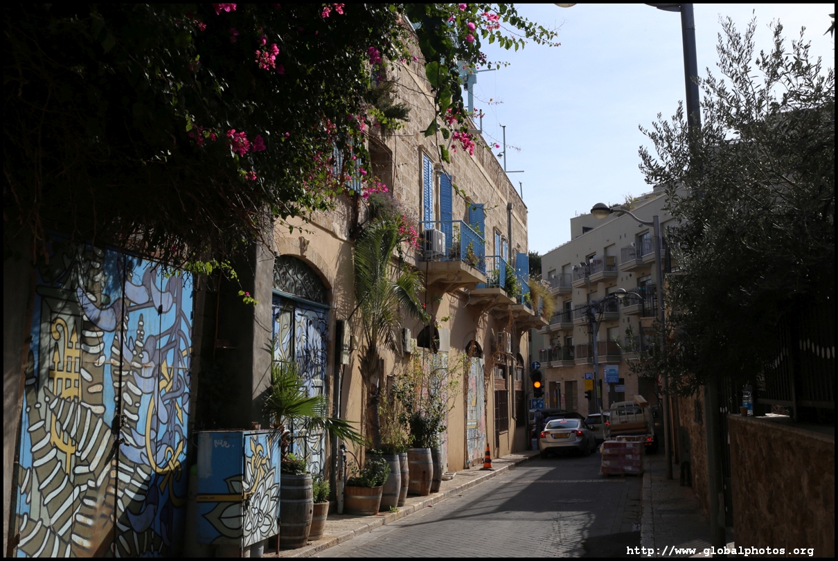 On the other side of Jaffa, some crumbling and restored buildings lined along Yefet Street.