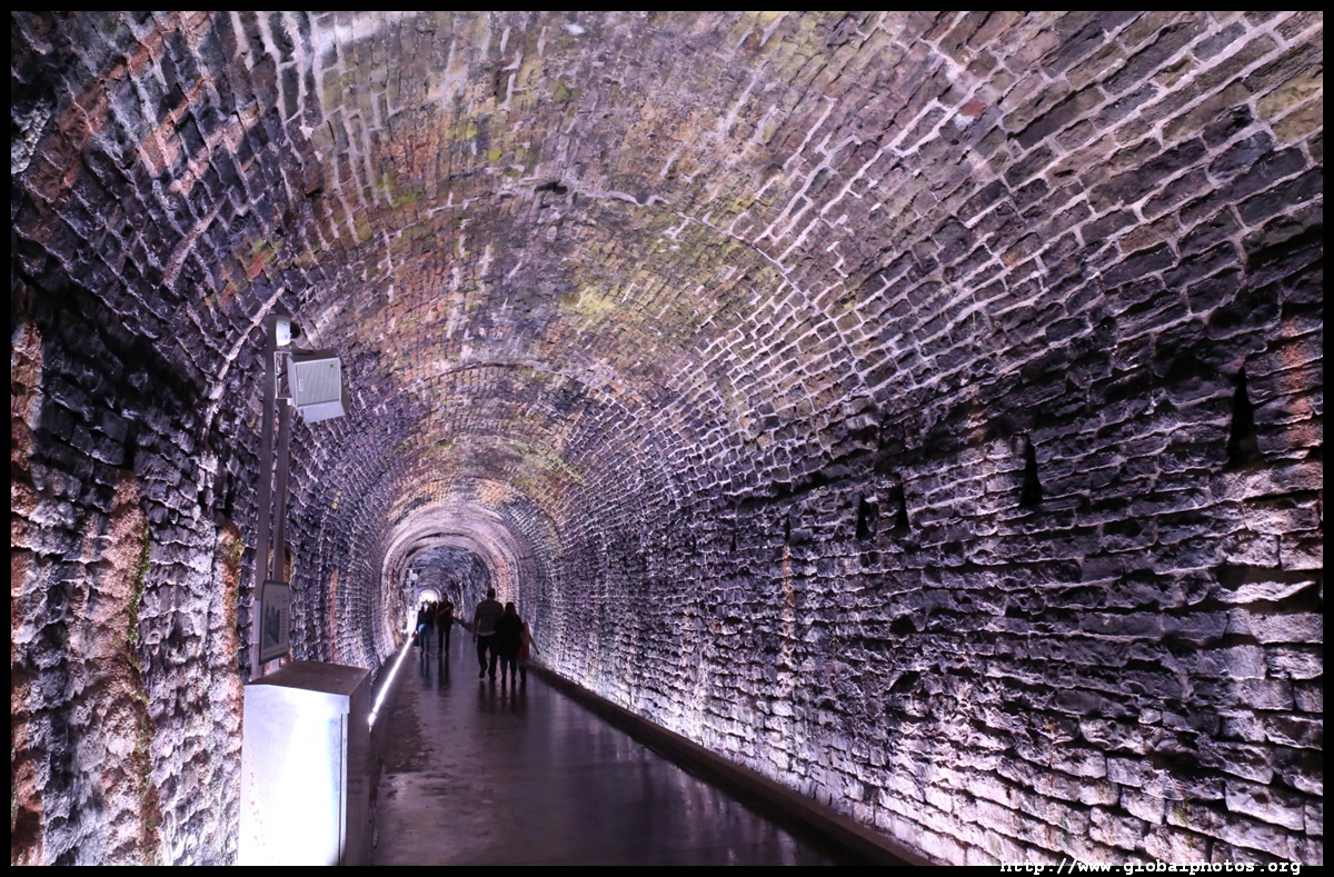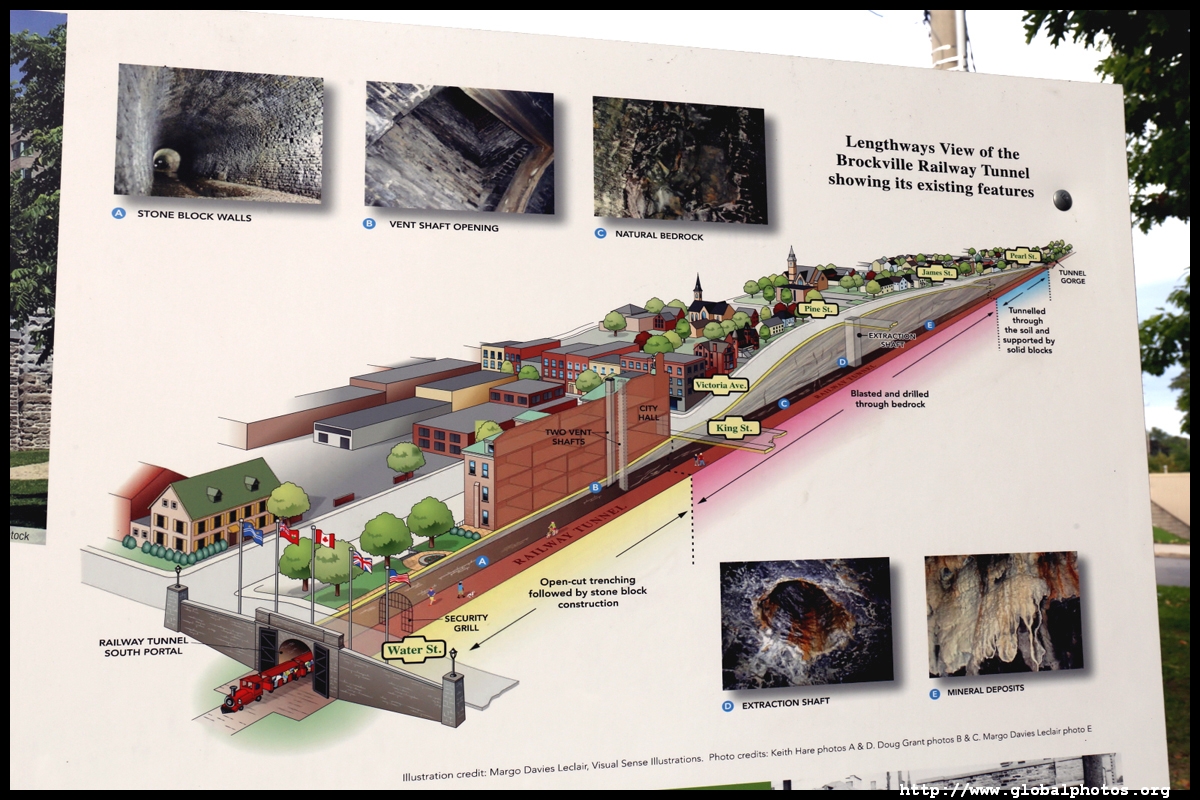 Canada's oldest railway tunnel was built in the 1850s for the Brockville and Ottawa Railway. Stretching just over half a kilometre, it even pre-dates the Canadian Pacific Railway. Trains stopped running in 1970 and the city bought it later, converting it into a tourist attraction in 2017 with colourful lighting. Pedestrians can walk from one end to the other.Notice as you walk further in that the tunnel structure changes. The section closest to the waterfront was made using open-cut trenching while the middle section was blasted through bedrock.