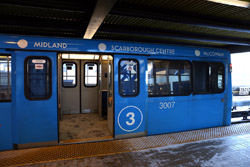 The Scarborough RT opened in 1985 and is used by about 35,000 commuters daily. With the end of its service life coming, the government is in heavy debate as to how to replace this line, either with LRT or a subway option. In 2013, a 3-stop subway extension was initially approved, but that was changed to a 1-stop line in 2016 as costs went up, and even a 7-stop light rail line was floated. the mayor admitted in December 2020 that the line will need to close before the replacement subway extension can be built. Meanwhile, the trains had to be wrapped in vinyl to reduce paint and body work.