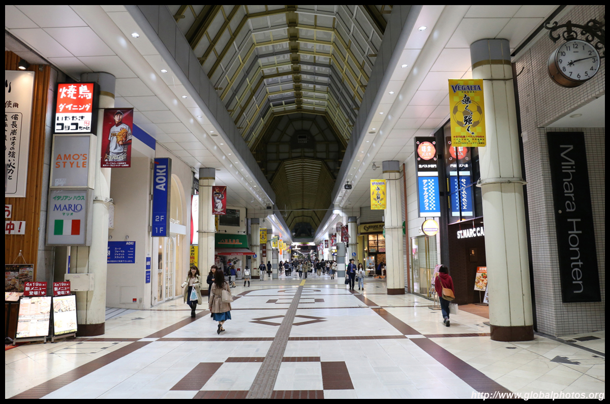 A pedestrian arcade extends along a stretch of road, which is a common feature in many Japanese cities. I paid particular attention to the discount shop as well as supermarket.