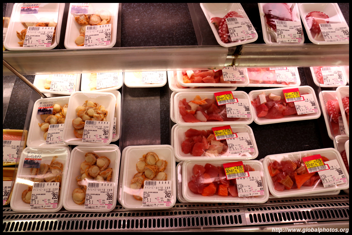 As closing time draws near, prices for fresh seafood, such as sashimi, are slashed. Bargain hunters take note!