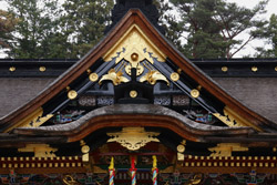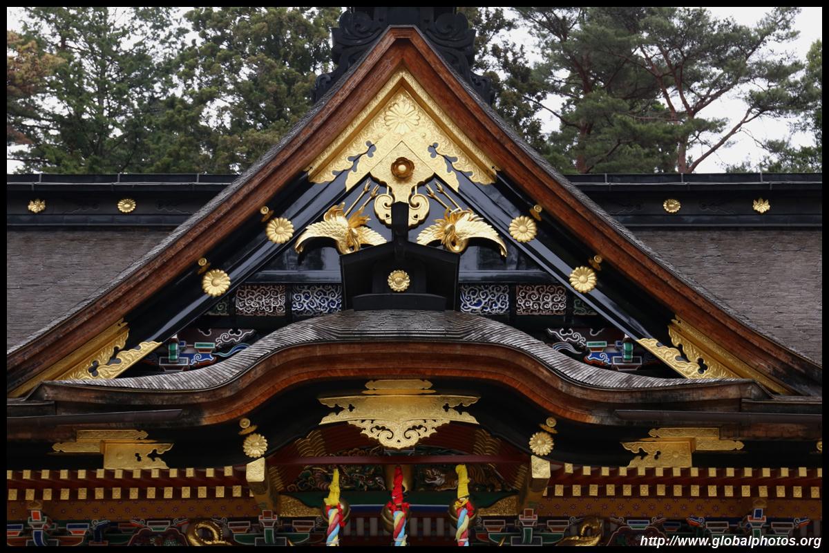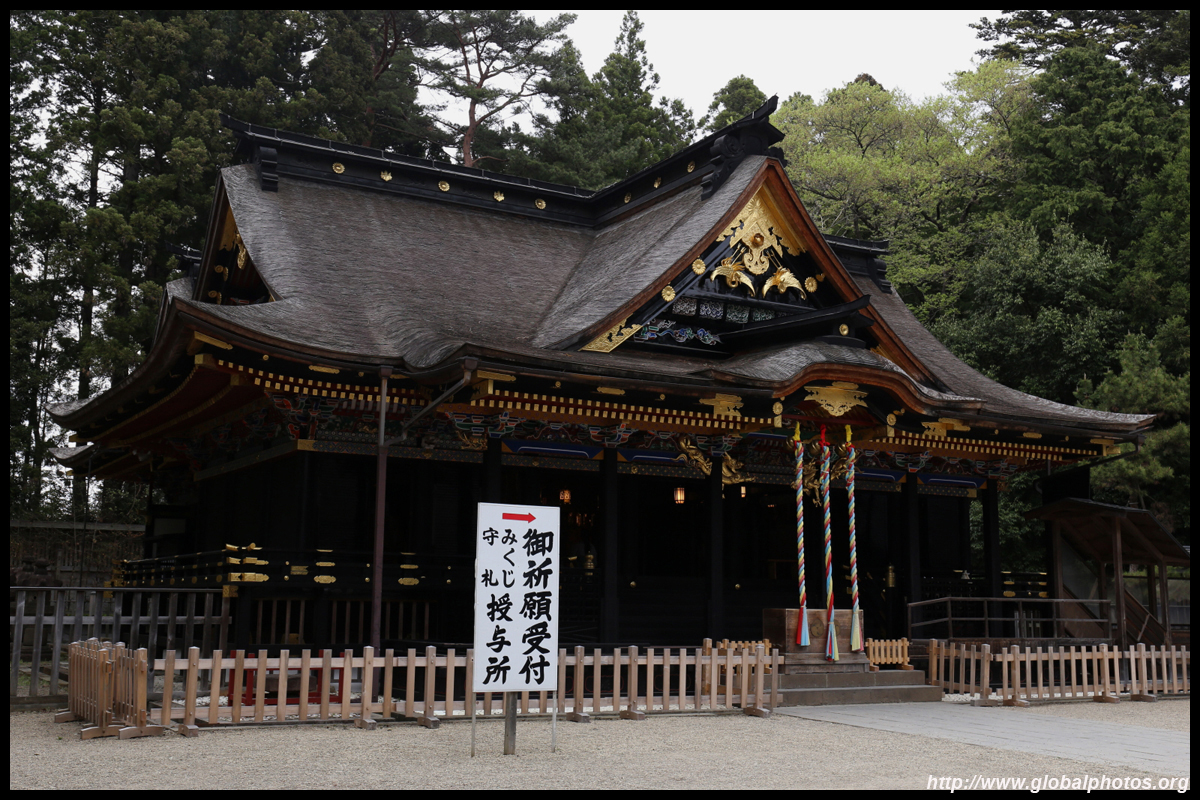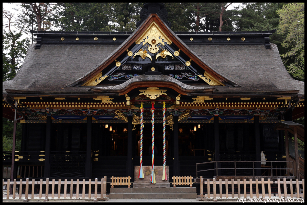 The Osaki Hachiman-gu Shrine was built in 1607 by a local ruler, Date Masamune. It is beautifully decorated in black lacquer with gold leaf, so it stands out quite nicely.