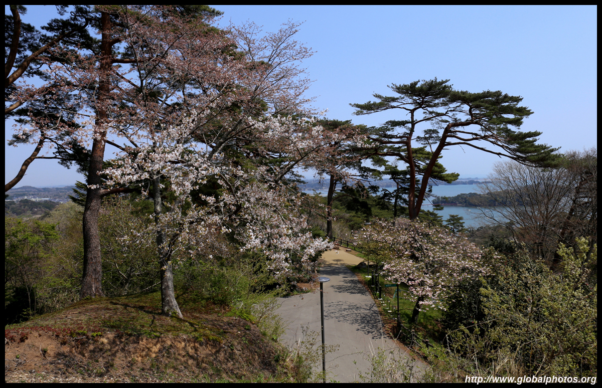 To be honest, the cherry blossoms seemed more interesting than the view. So I didn't stick around too long and rushed back downhill towards the coast.