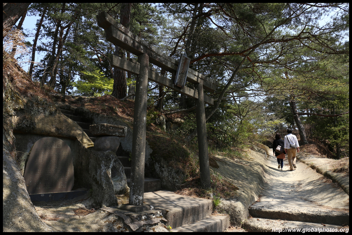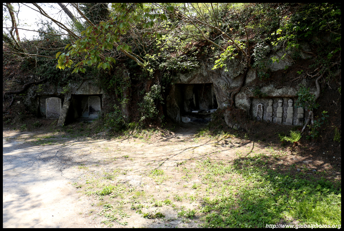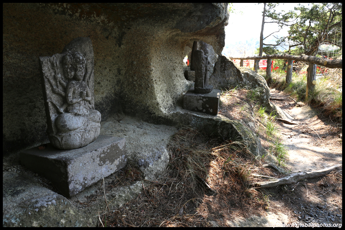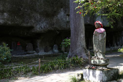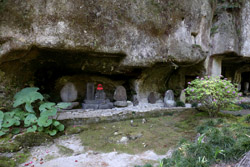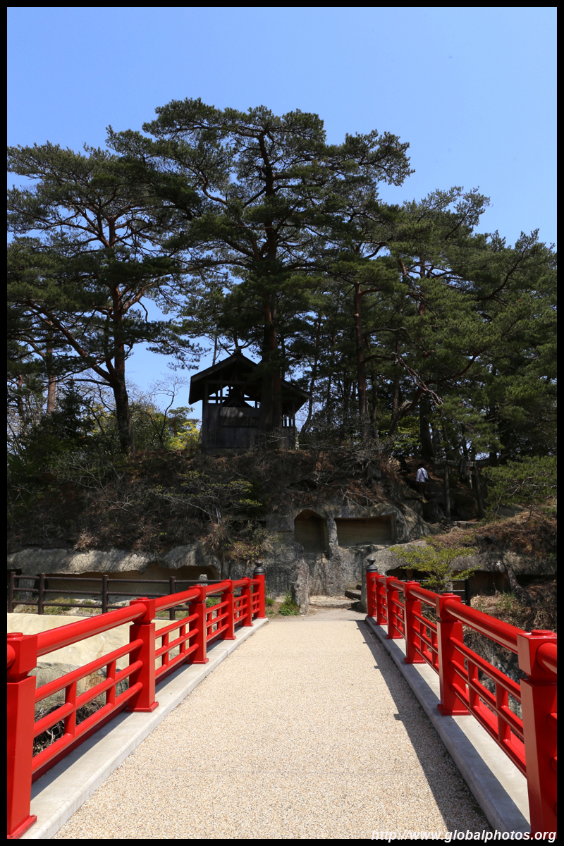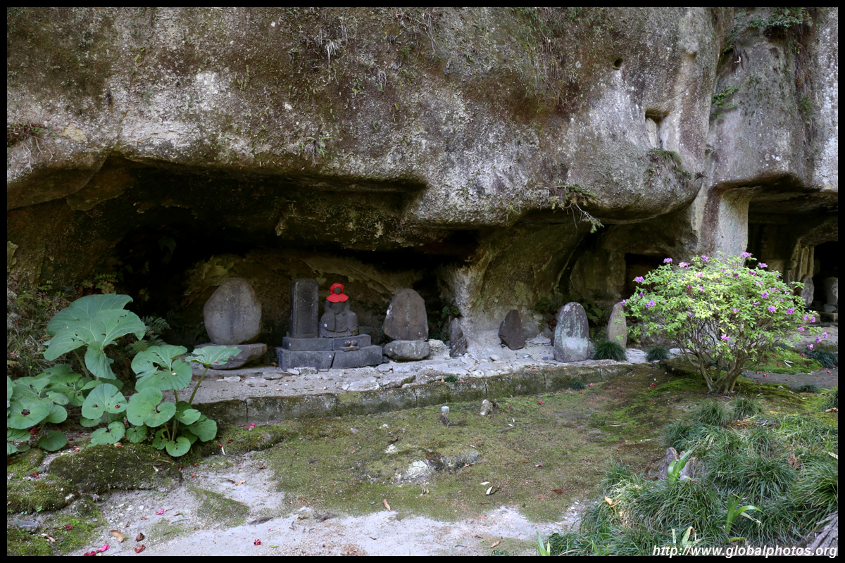 Oshima is just off the coast but connected via a bright red bridge. Stone tablets and caves dot the island, which is sacred for Buddhists.