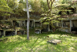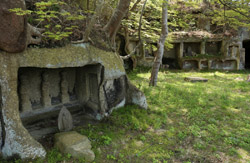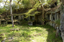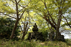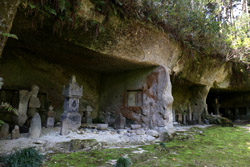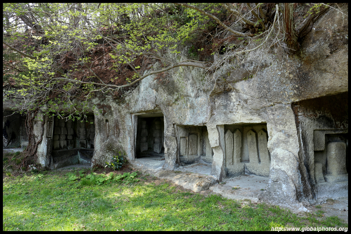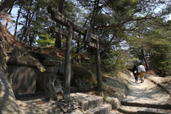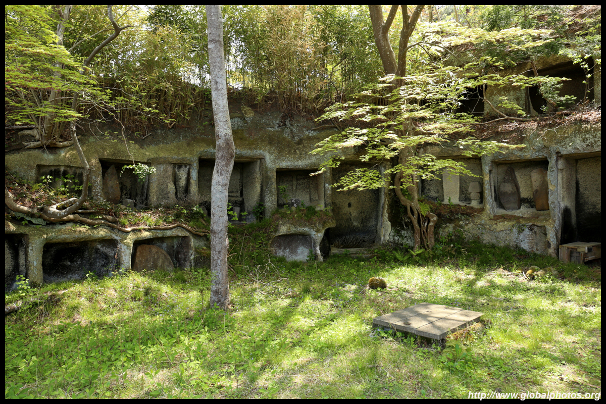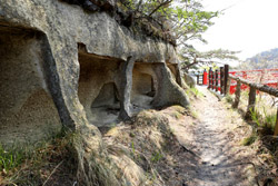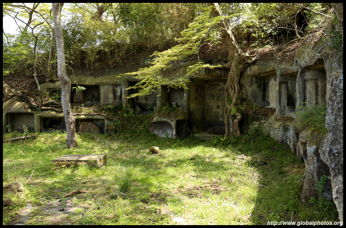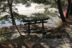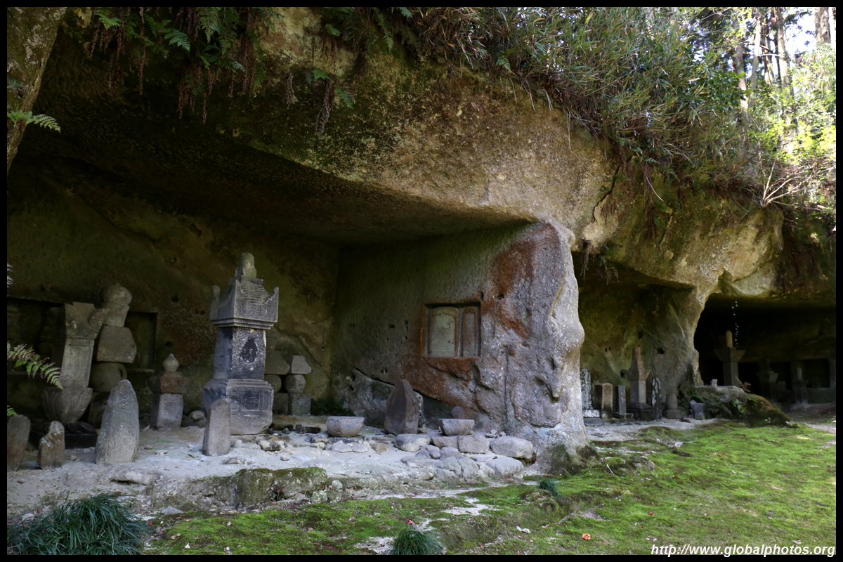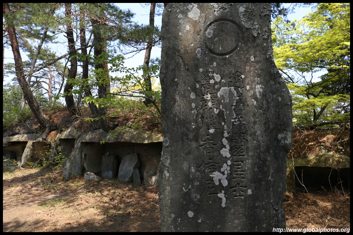 Oshima is just off the coast but connected via a bright red bridge. Stone tablets and caves dot the island, which is sacred for Buddhists.