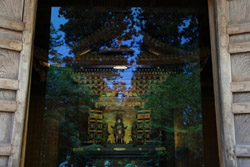Godaido was built in the early 17th century on top of an island that is accessible by a short staircase and across 2 harrowing red bridges. It seems more exciting to get there than to admire the architecture itself.