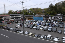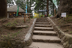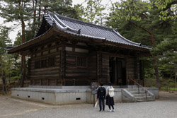 At the far end of the complex, Kanzantei offers a lovely view of the mountains further away. Although the weather forecast called for a cloudy day, it would be much more pleasant further north. Blue skies were within reach in the distance.