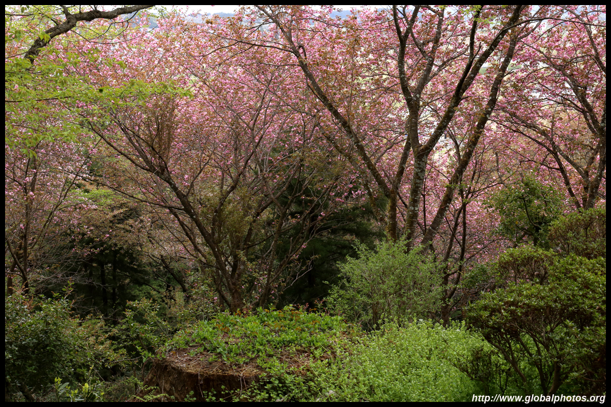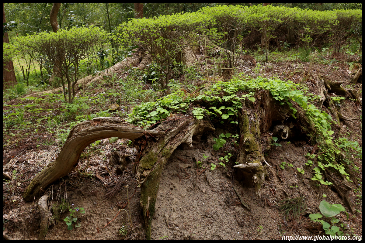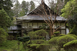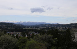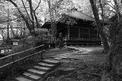 Chuson-ji is on top of Kanzan hill. After a long climb uphill under dense vegetation, a spot opened up over the countryside below.