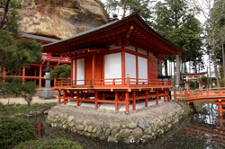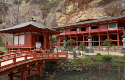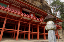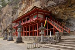 Takkoku no Iwaya was believed to have been founded in the 9th century to thank the buddhas in helping the army quell local resistance. The location is quite unique, being carved into the cliff. Today's structure is a reconstruction as fires have ravaged many times over time.To get here, ask for a bus schedule at the tourist information centre next to the train station. Board at the parking lot next to Motsu-ji.