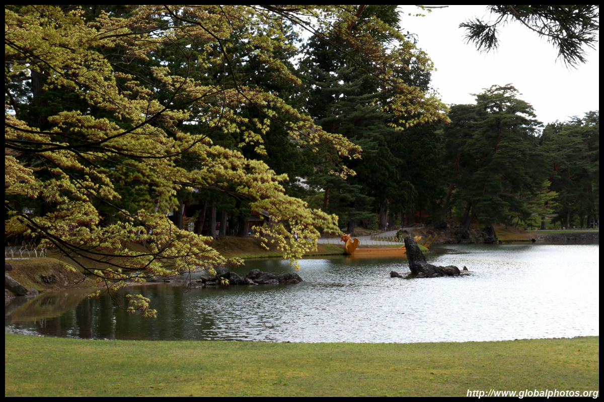 Unfortunately, the most beautiful part of the temple, Konjikido (Golden Hall), is under a protective building cover with no photography allowed, so the exquisite golden work could only live in my memory. I proceeded back to town to the next stop, the cherry blossoms at Maizurugaike Pond.