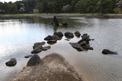 The garden was designed in an aristocratic residential style but the buildings are long gone so you need some imagination. The Yarimizu Stream slowly flowed into the pond, completely clueless the world has changed around it.