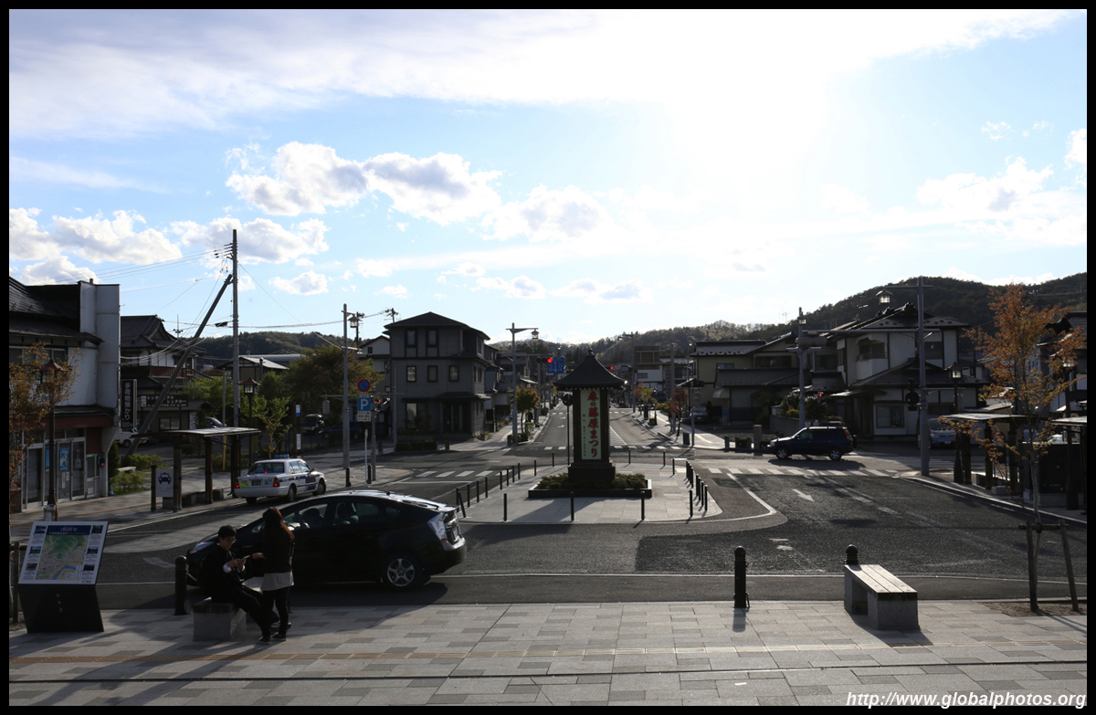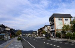 From Motsu-ji, it is about a 1km walk back to the train station along a sleepy main road bounded by lowrises.