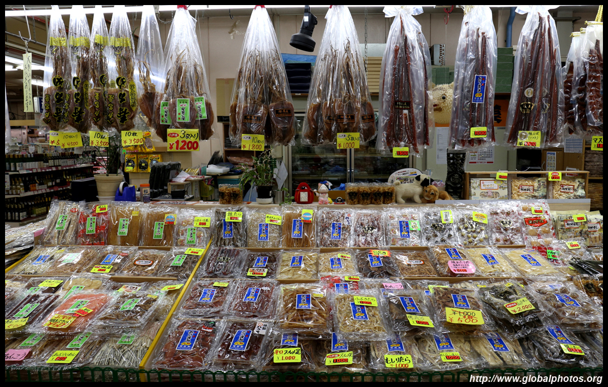 One section is for dried items, including many souvenirs that don't come from the sea.