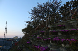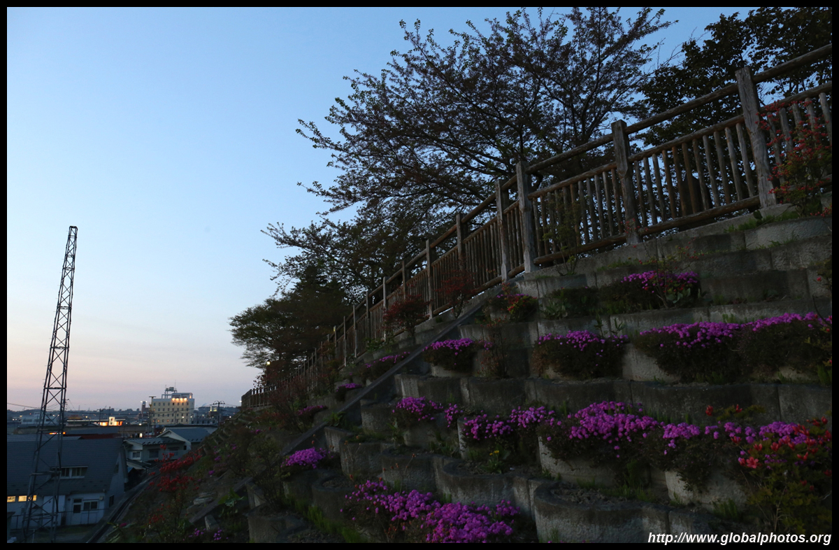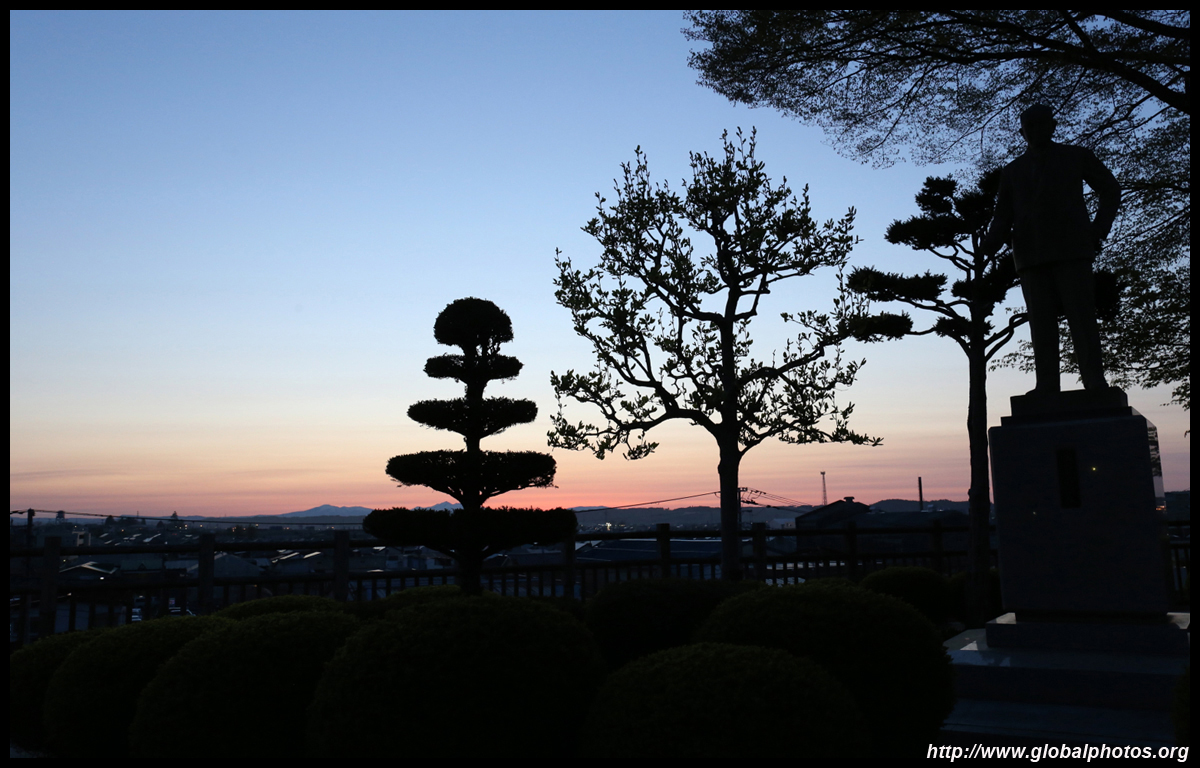 Miyagi Park stands above and next to the train station. It is not a tough staircase climb up and some kids were making the best of the sunset already when I arrived.
