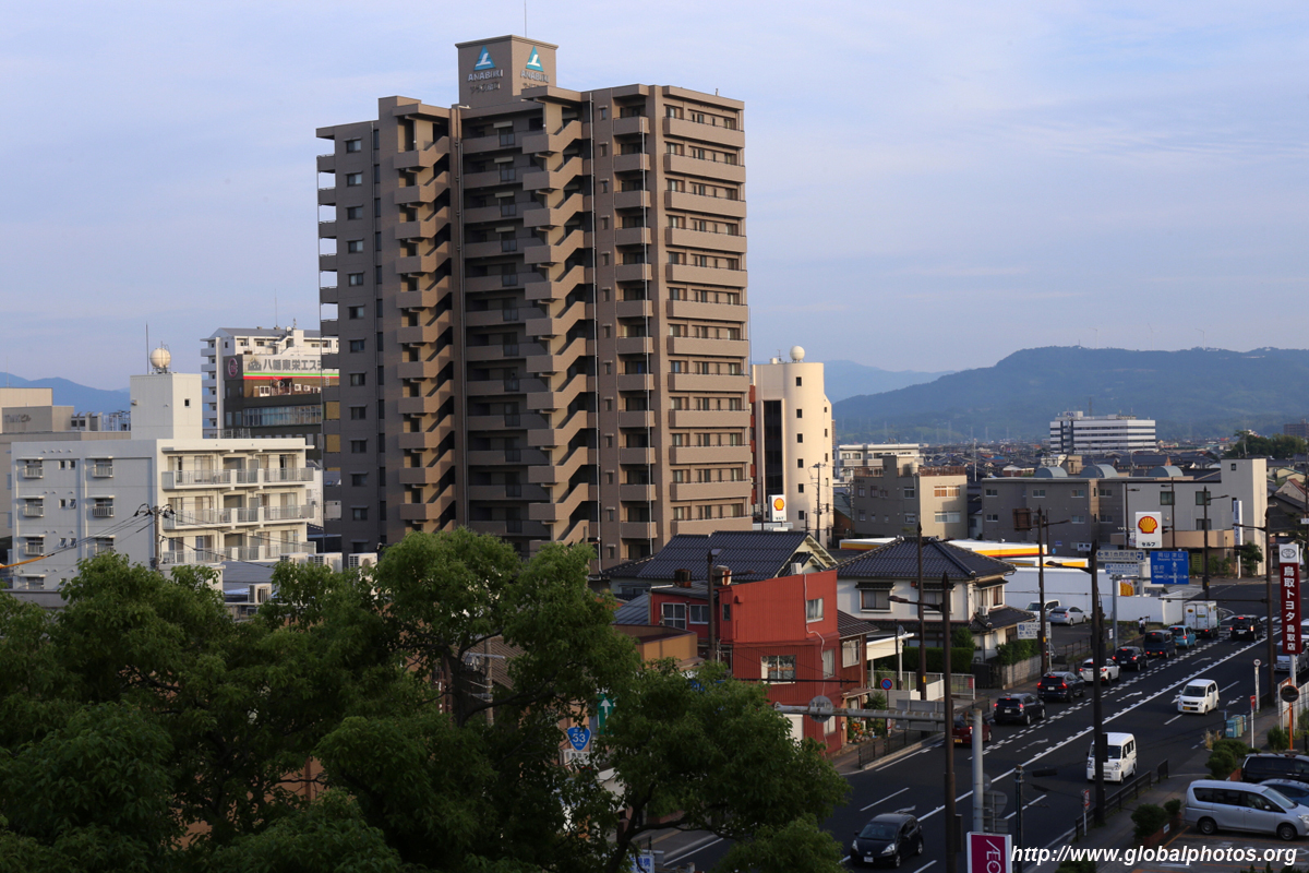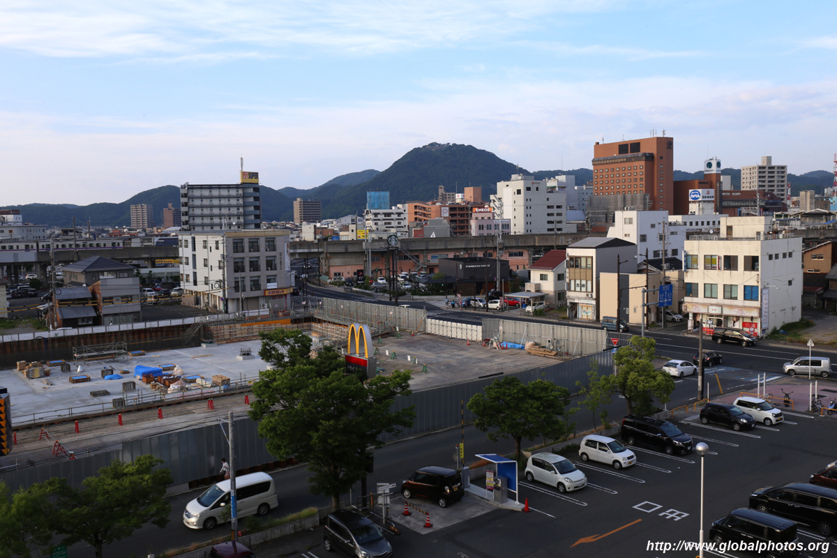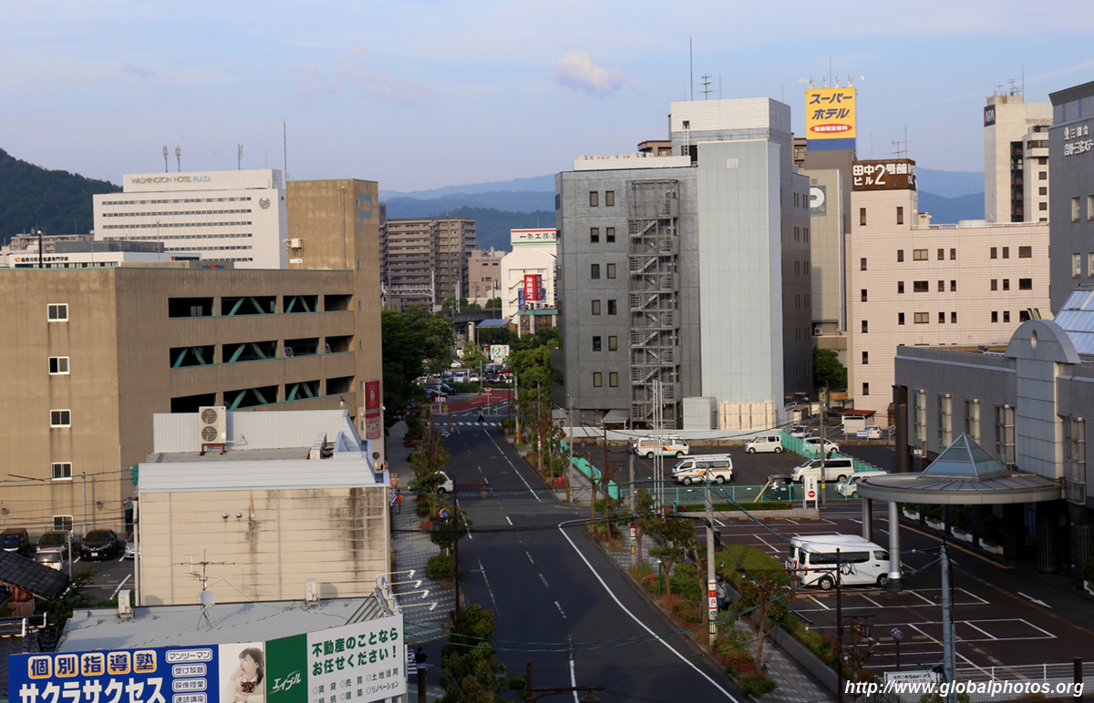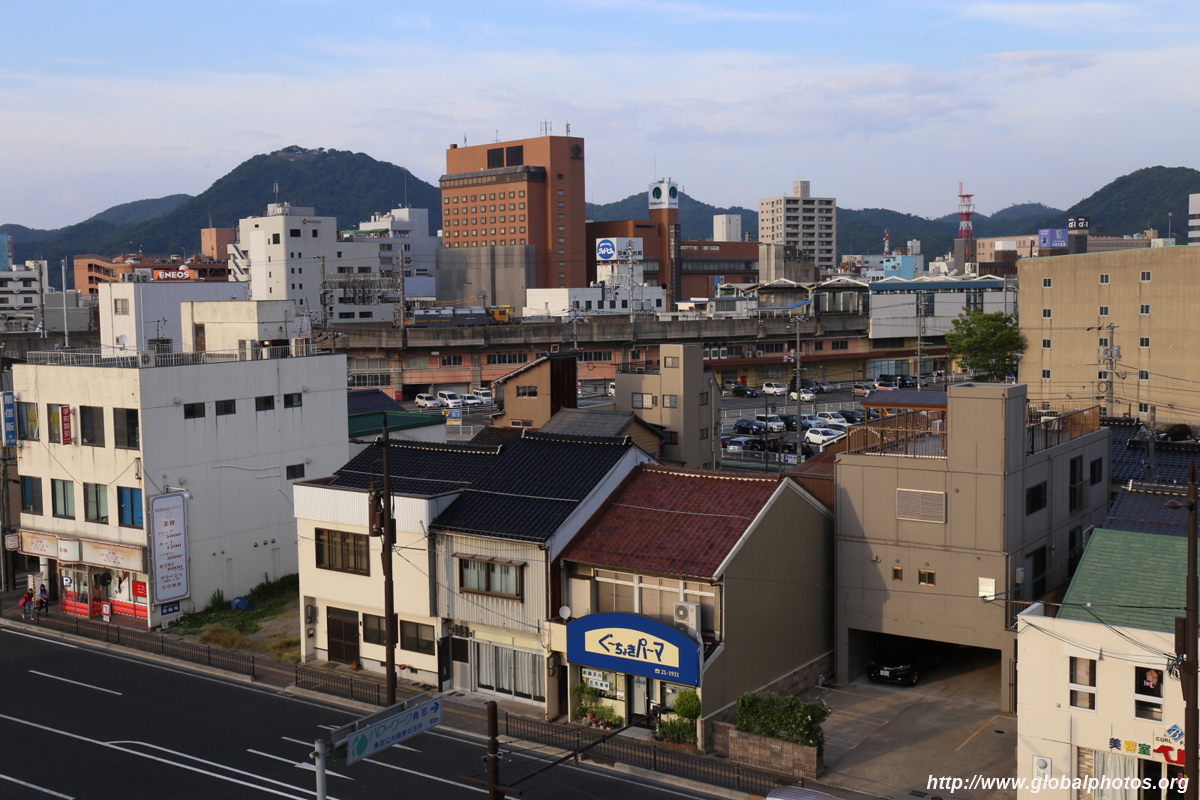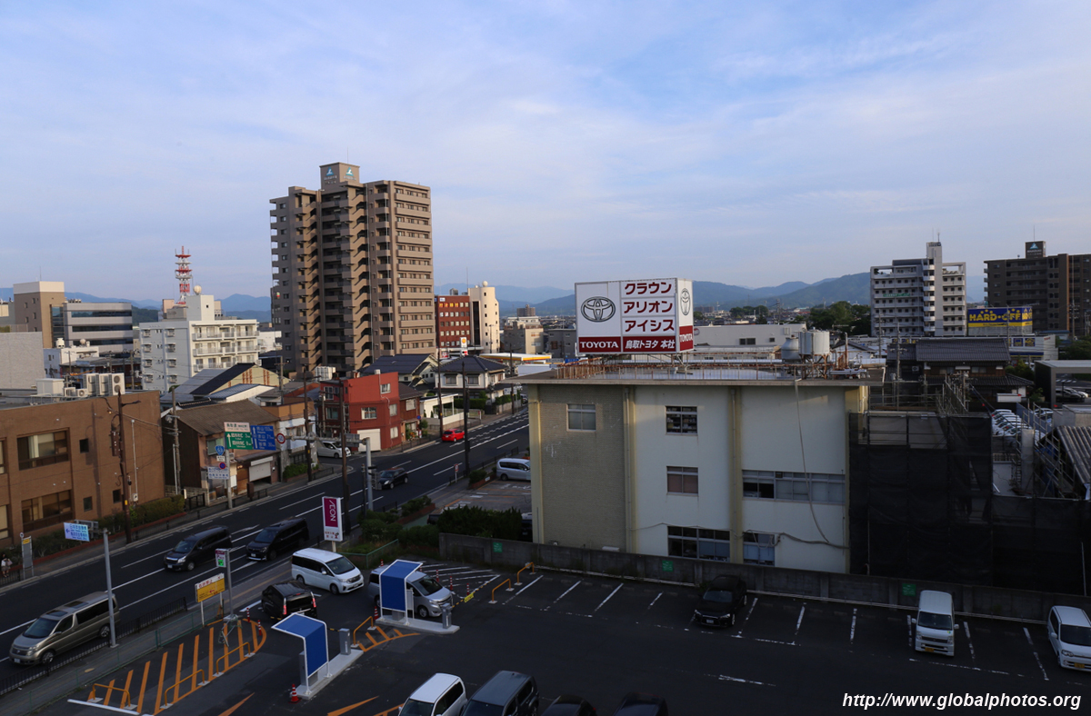 With little enticing retail shops north of the train station and many empty storefronts, I headed south to look for a large department store. Typically, I would expect many choices clustered around the city's main station, but that was not the case. The Aeon, with a large supermarket, is about a 10 minute walk southwest of the station. Views from the parking lot are decent.