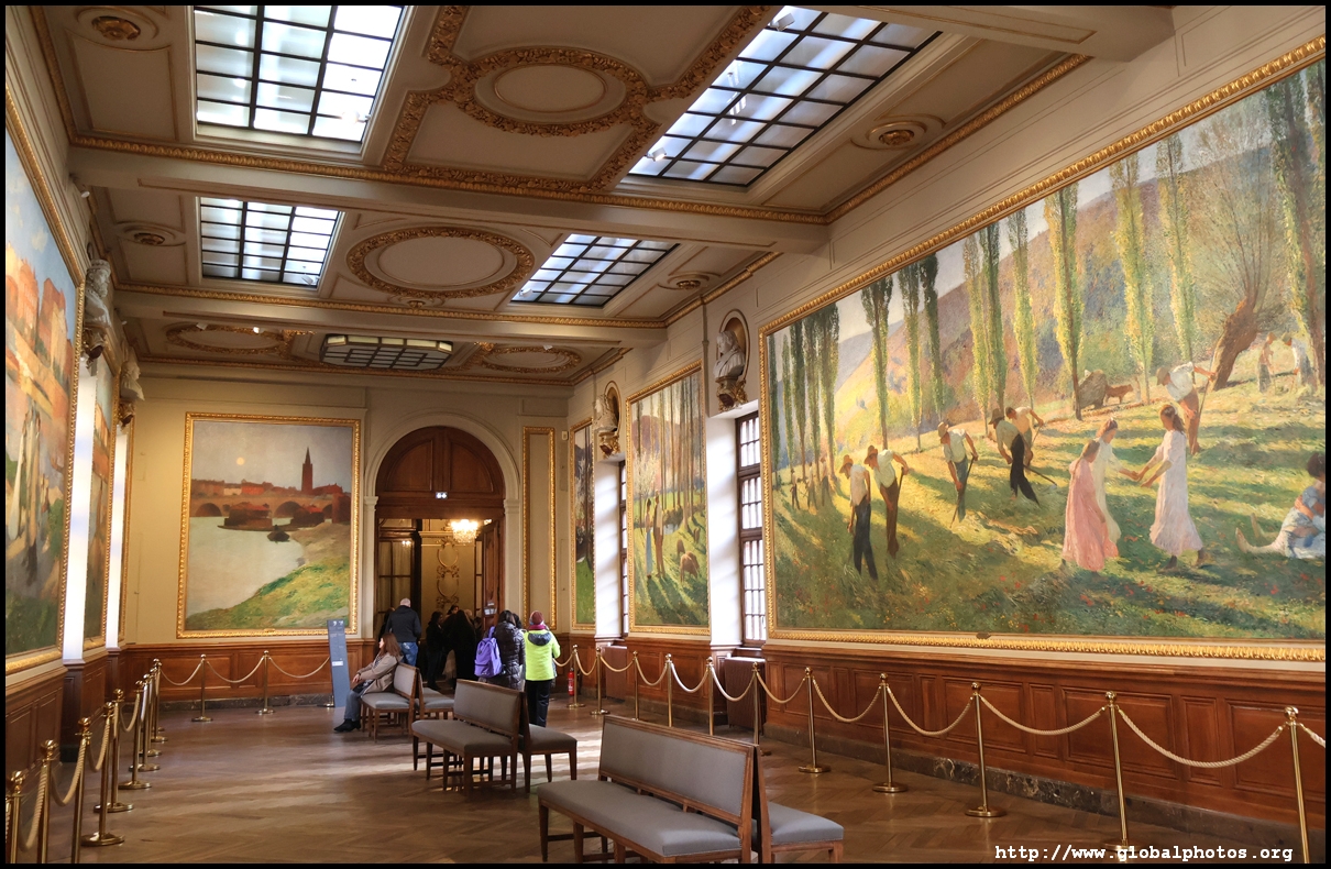 The Henri-Martin Room was built in 1605 and housed portraits of the Capitouls until the revolution. In 1900, local painter Henri Martin was appointed to decorate the restored room.