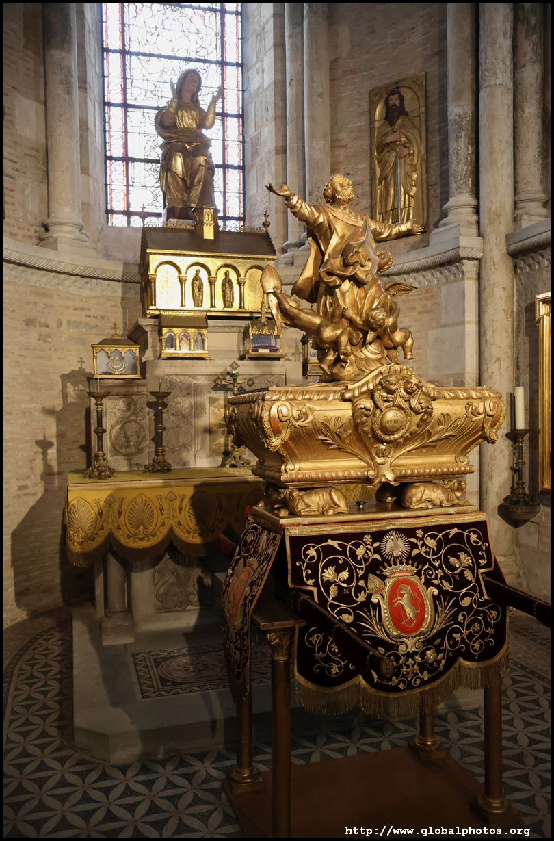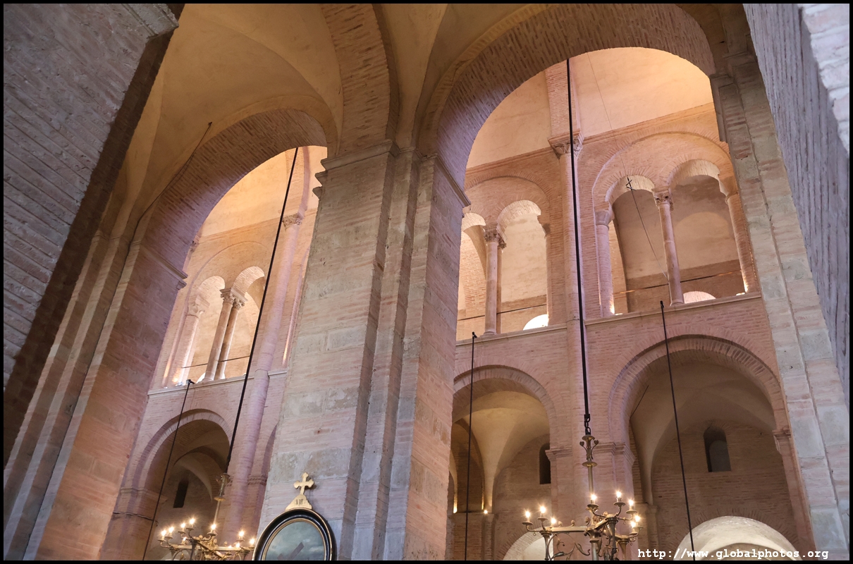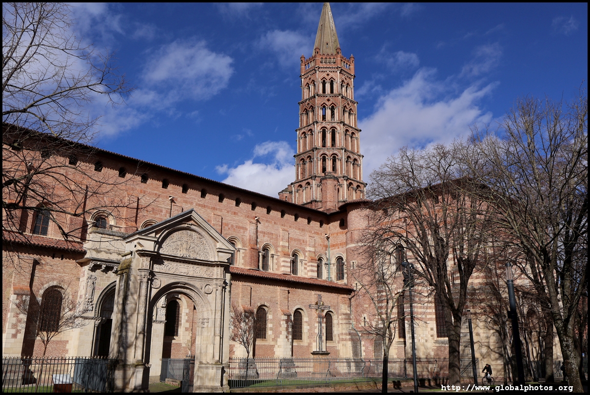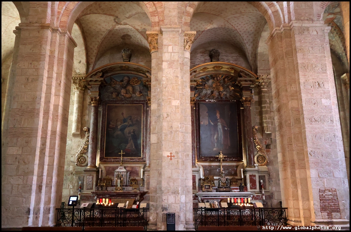 Around the corner is the Saint-Sernin Basilica, the largest Romanesque church in the country. Dedicated to St. Saturninus, Toulouse's first bishop, the church was consecrated in 1096 with construction continuing until the 14th century. The huge interior space was designed to handle pilgrimmage crowds bound for Santiago de Compostela.