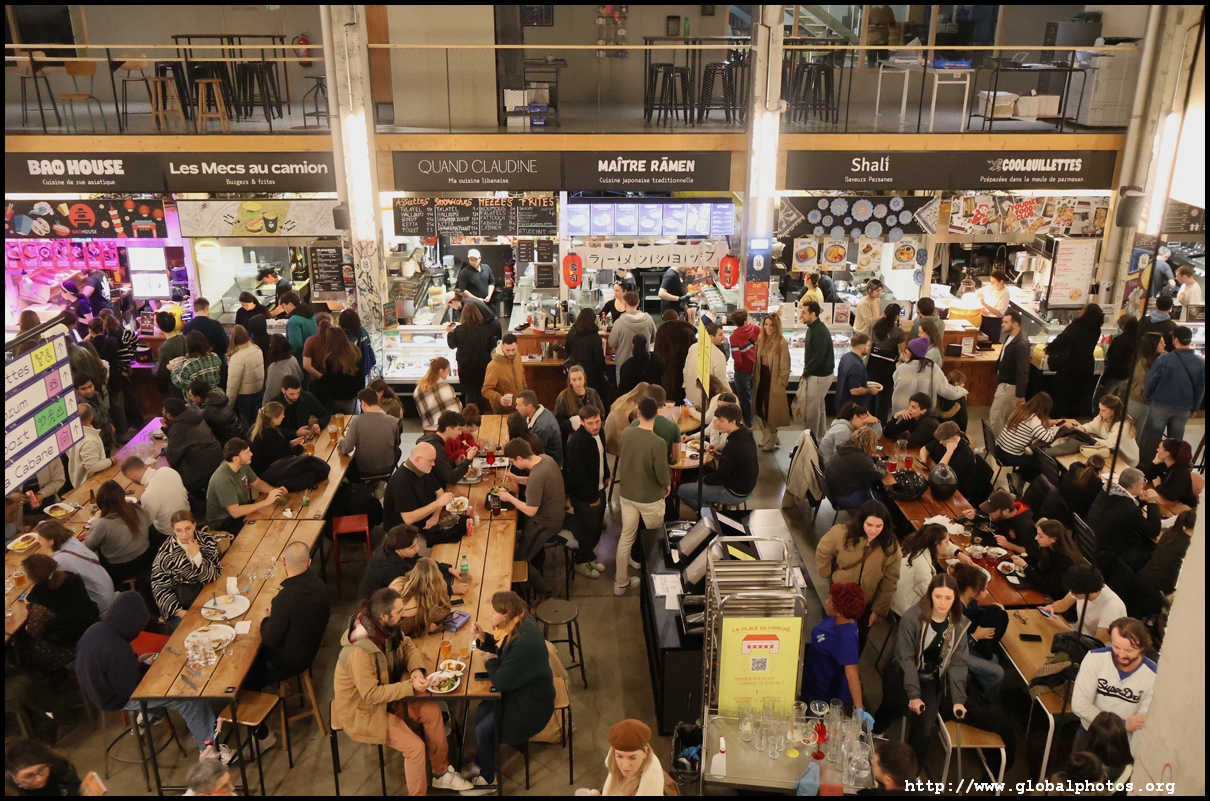 On the tram coming back from the Airbus factory to the historic centre, I passed by a busy and historic-looking structure with a lot of modern buildings around it.Curious, I got off the tram and took a closer look. The Halles de la Cartoucherie building is a restored historic relic from a weapons factory. During World War I, over 14,000 people worked here. By the 1970s, there were 295 buildings and workshops on the 82 hectare site. Weapons manufacturing came to an end in the 1990s. Redevelopment has created new uses, including housing, office, hotel, and retail. The restored Halles de la Cartoucherie building opened in 2023 with many food stalls and public spaces.