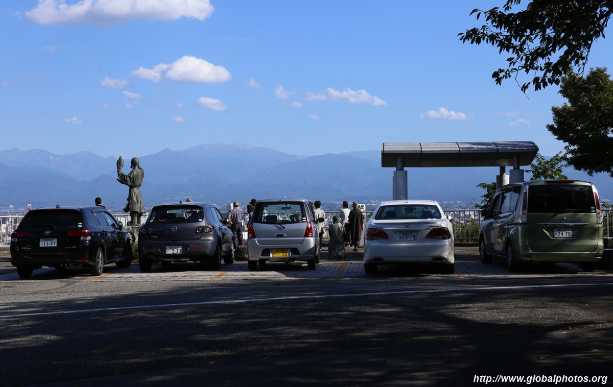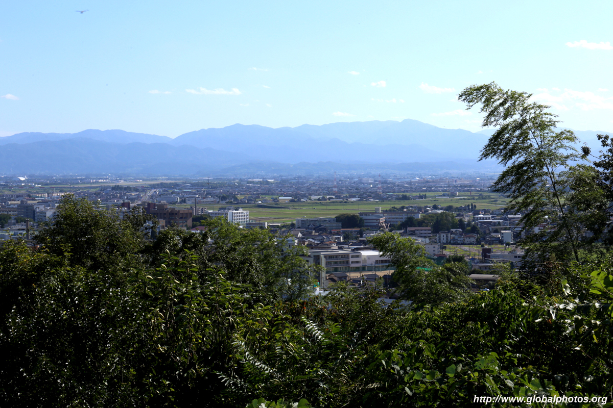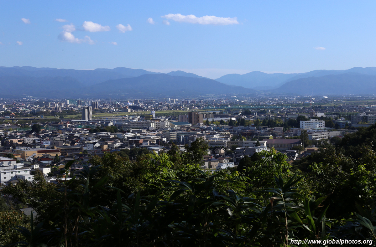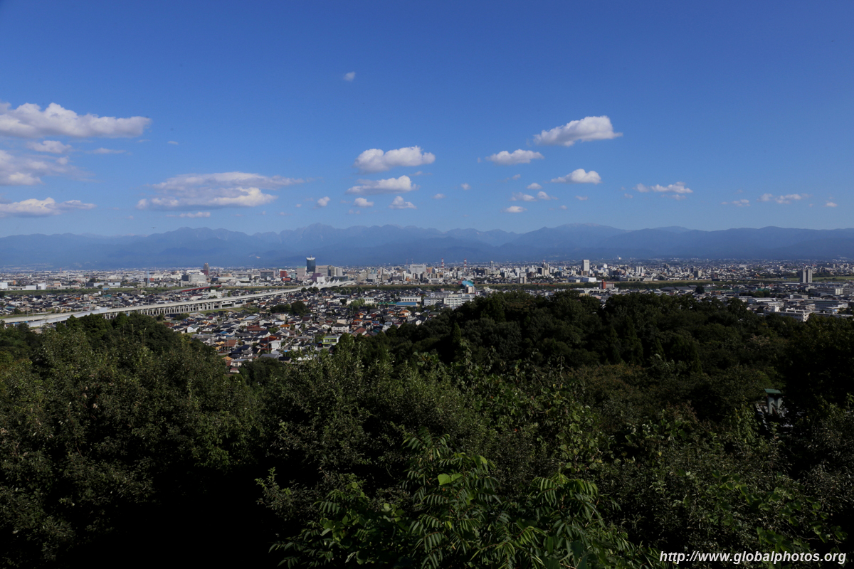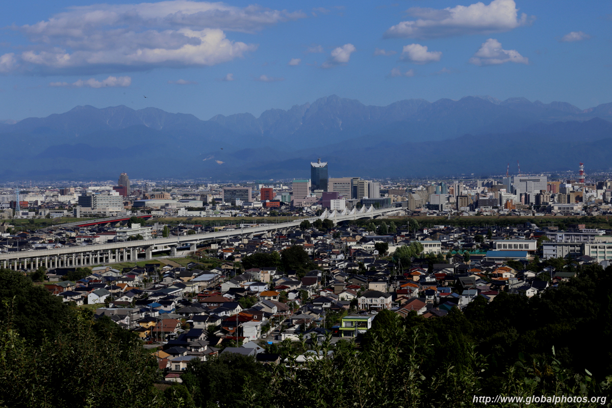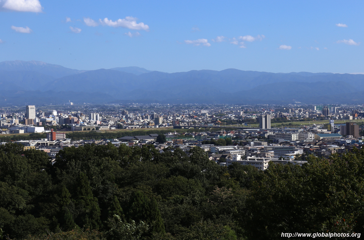 The route up is not too long or difficult and the views are worth it. Ahead of you is the entire city centre with the Japanese Alps behind it.