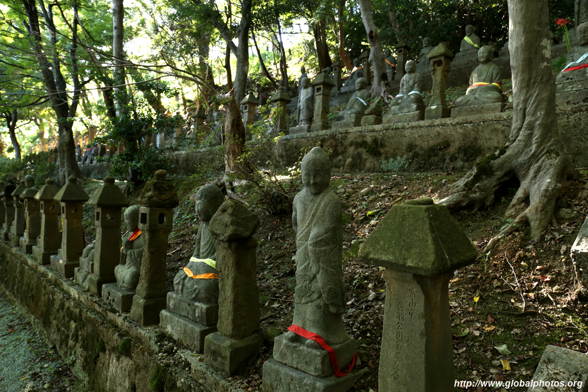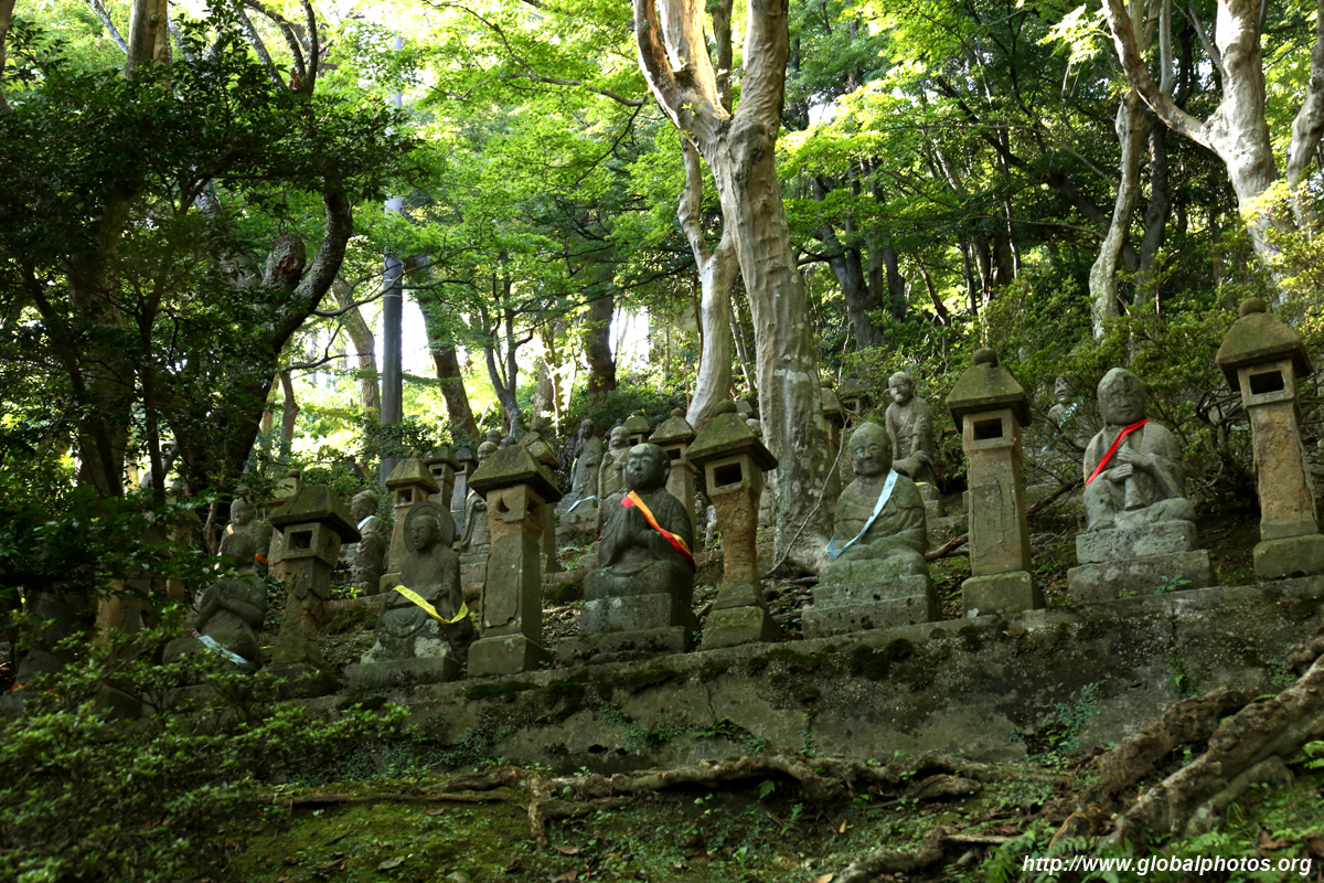 Nearby, the Chokeiji Zen Temple is home to 500 stone Buddhist arhat statues lined up along the hillside.