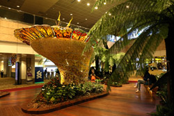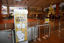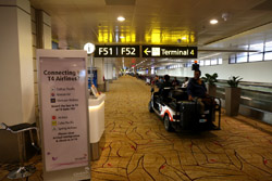The new Terminal 4 opened recently and so far is not connected to the metro network, people mover, and seems a forgotten neighbour within Changi. To connect to a flight over there, there is a gate with shuttle bus service.