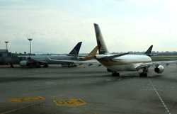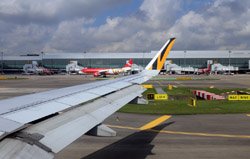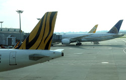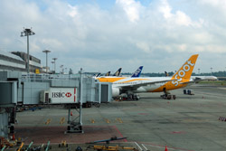 Getting air-side was far quicker this time than my arrival in Singapore several days ago. I went straight to the windows for some plane spotting. Scoot with a Tiger tail might be a disappearing combination in the months ahead.