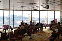 Security check takes place at each gate, so the seating area for the flight is secured. This makes plane spotting very difficult as the gate's windows are not publicly accessible anymore. No toilets are shops inside either so don't budget a ton of time sitting here.