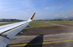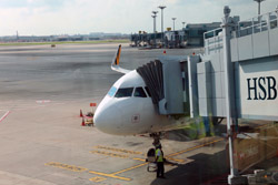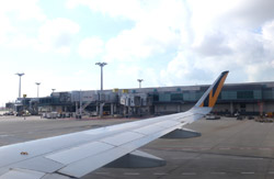 Ipoh airport looked quiet and deserted. We parked on the tarmac and stairs were attached to let us disembark. After a short walk, we entered the terminal where we bunched up in the small immigration area. The cheerful agents didn't work too quickly but everyone was more laid back and had a smile. No need to rush through here today.