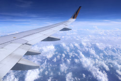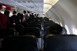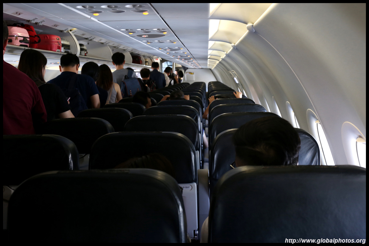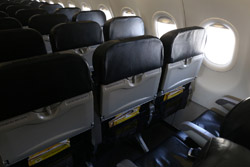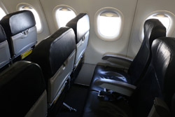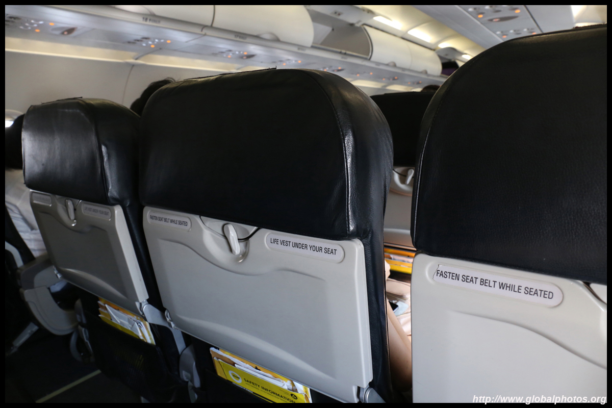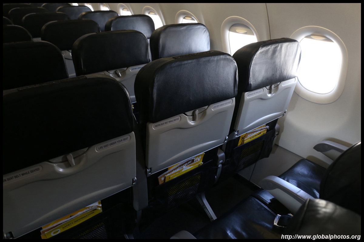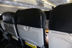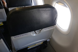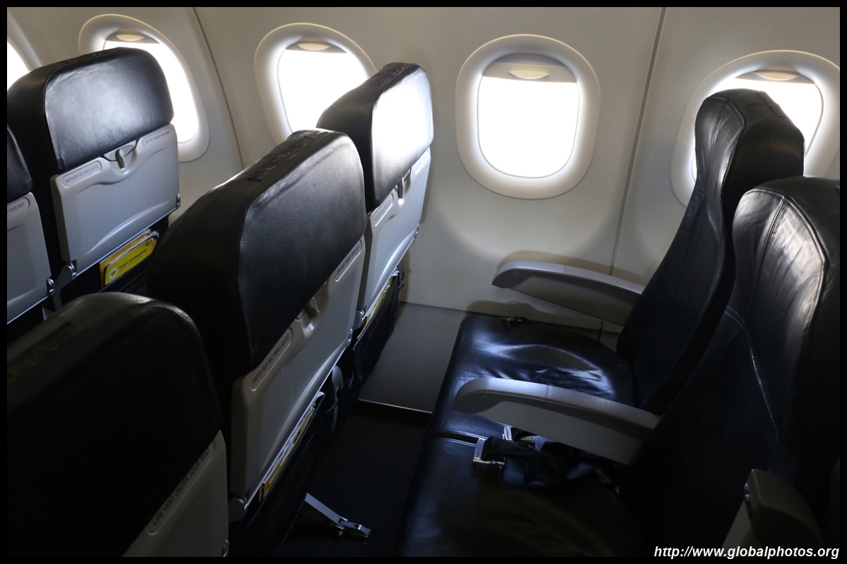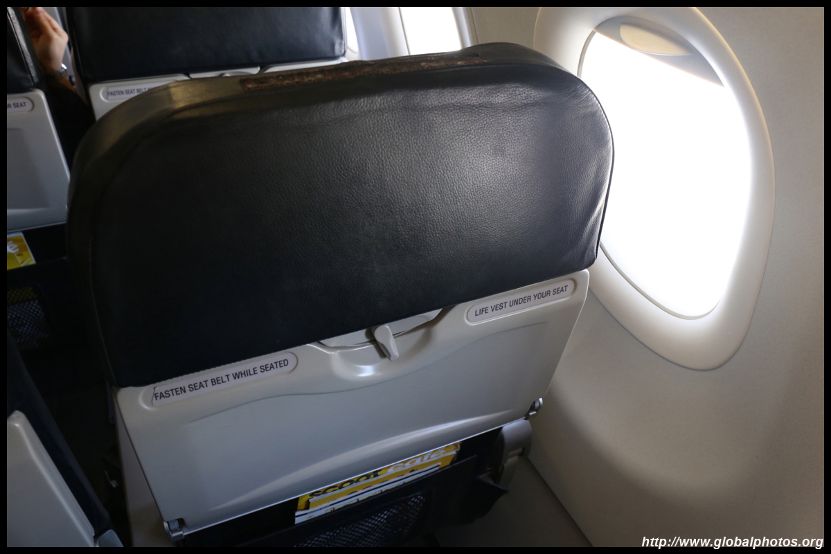 Today's flight is operated by a Tiger tail aircraft. The leather seats looked a bit tired and legroom was tight, but it was endurable for a short flight and I got what I paid for. Note the leftover crumbs on the seats.